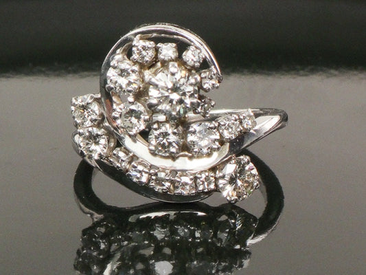 Vintage 14k White Gold Natural Diamond Swirl Ring, Cocktail Approximately 1.3 CT TDW