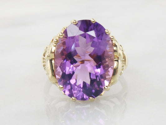 Vintage 10k Gold Amethyst Elephant Ring: February Birthstone, Size 9