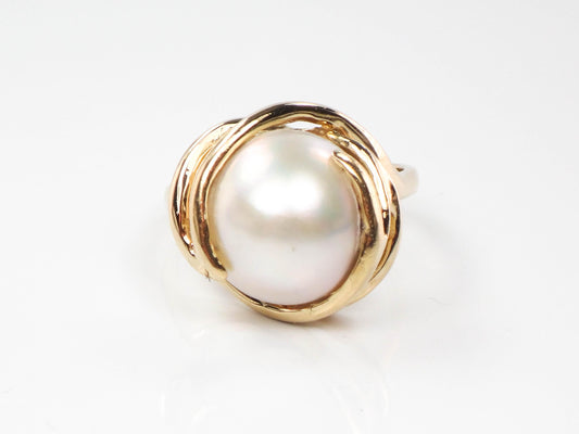 Vintage Clyde Duneier 14k Yellow Gold Mabe Pearl Ring - Size 9.5
