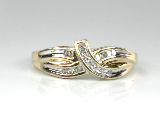 Vintage 10k Gold Diamond Ring - Round and Baguette Cut Natural Diamonds - Size 6.5