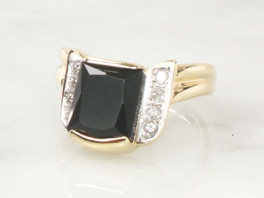 Vintage 10k Two Tone Gold Black Onyx Diamond Ring, Retro Style Ring, Size 6.75