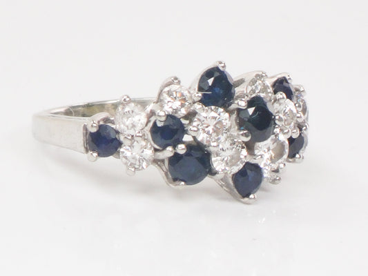 Vintage Platinum Natural Sapphire and Diamond Cluster Ring Pinky Ring - Size 3