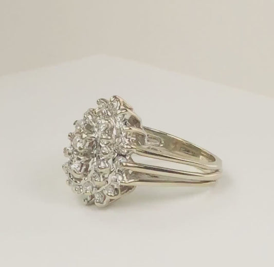 Vintage Pear Shaped Diamond Cluster Ring: 14k White Gold Statement Ring, 1 CT TDW