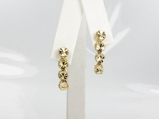 Vintage Solid 14k Yellow Gold Diamond Cut Pierced Design Dangle Earrings