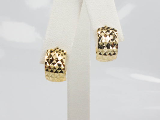 Vintage Solid 14k Yellow Gold Huggie Hoop Earrings with Diamond Cut Design