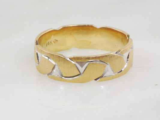 Vintage 14k Two Tone Gold Link Design Wedding Band - Size 9.25
