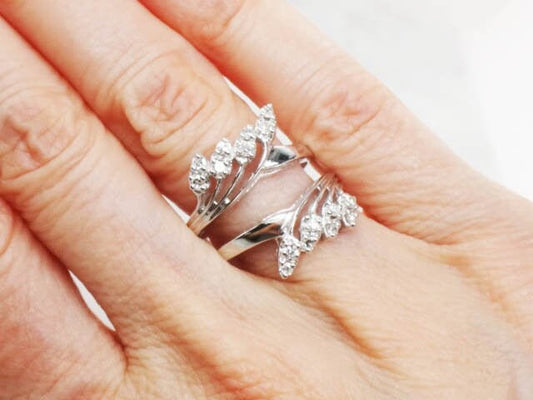 Vintage 14k White Gold Diamond Enhancer Ring: Wedding Band Insert, Size 6.25