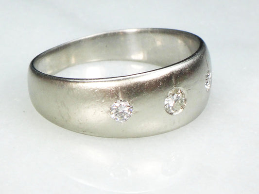 Vintage 14k Natural Diamond Wedding Band Gypsy Set Three Stone Diamond Ring White Gold Wedding Ring Size 9 1/2