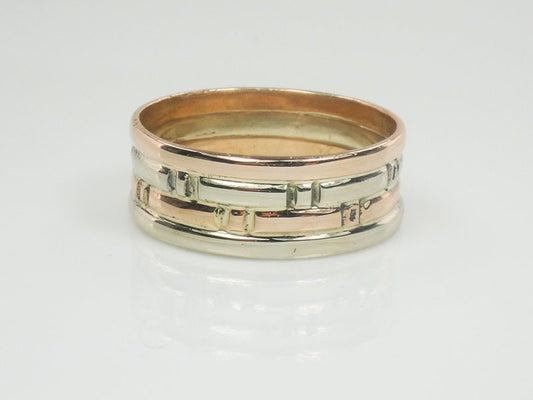 Vintage 14k Tri-Color Gold Wedding Band, 8.75 mm, Size 11.25, Unisex Ring