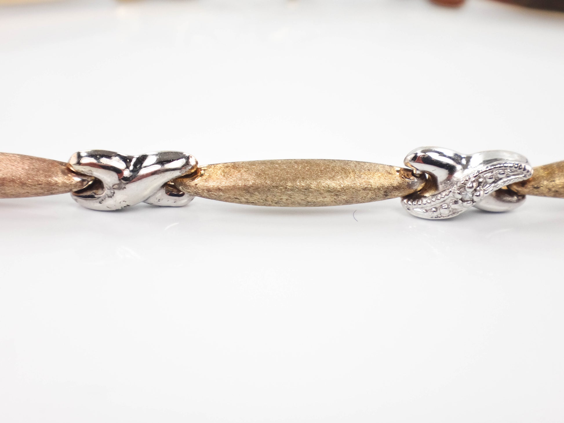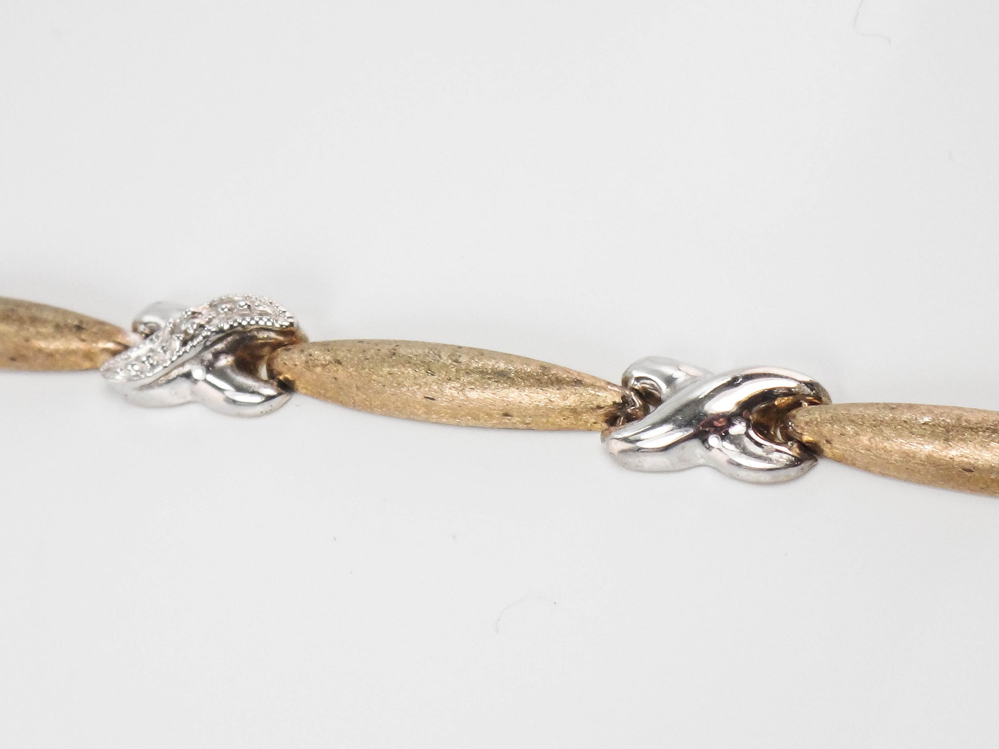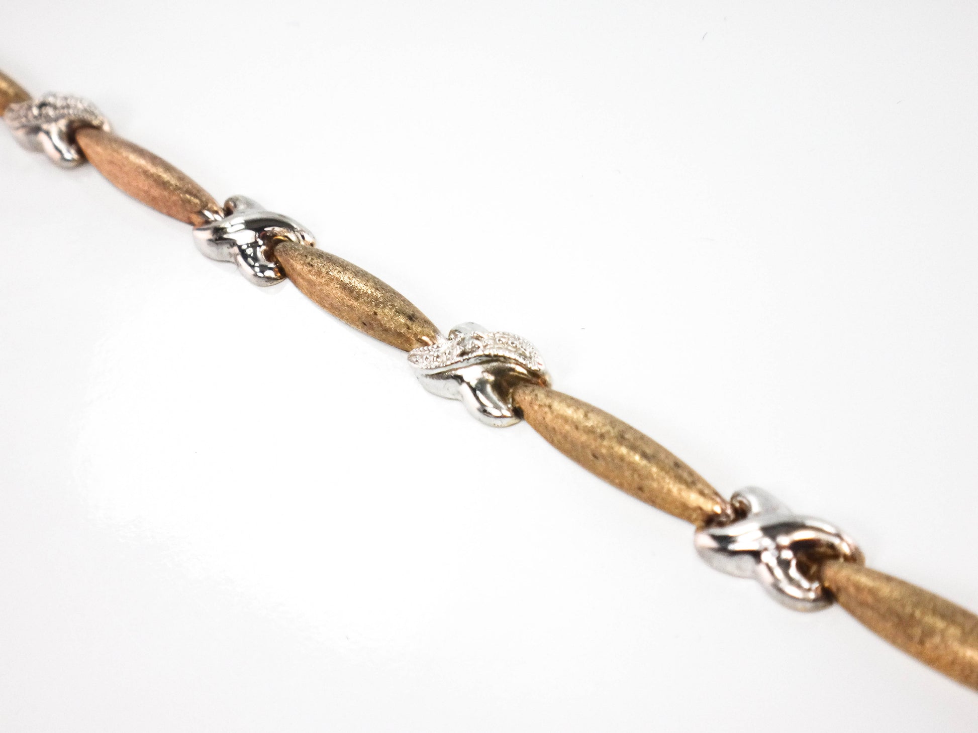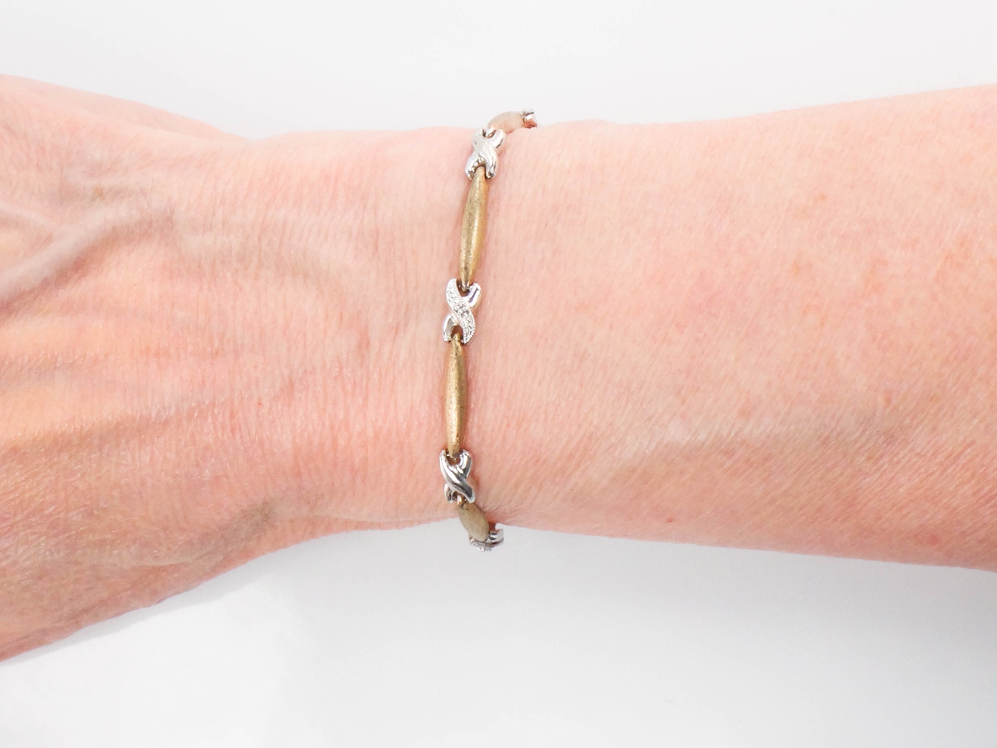 10k Two Tone Gold and Diamond X Bracelet, 6 7/8", Vintage Jewelry