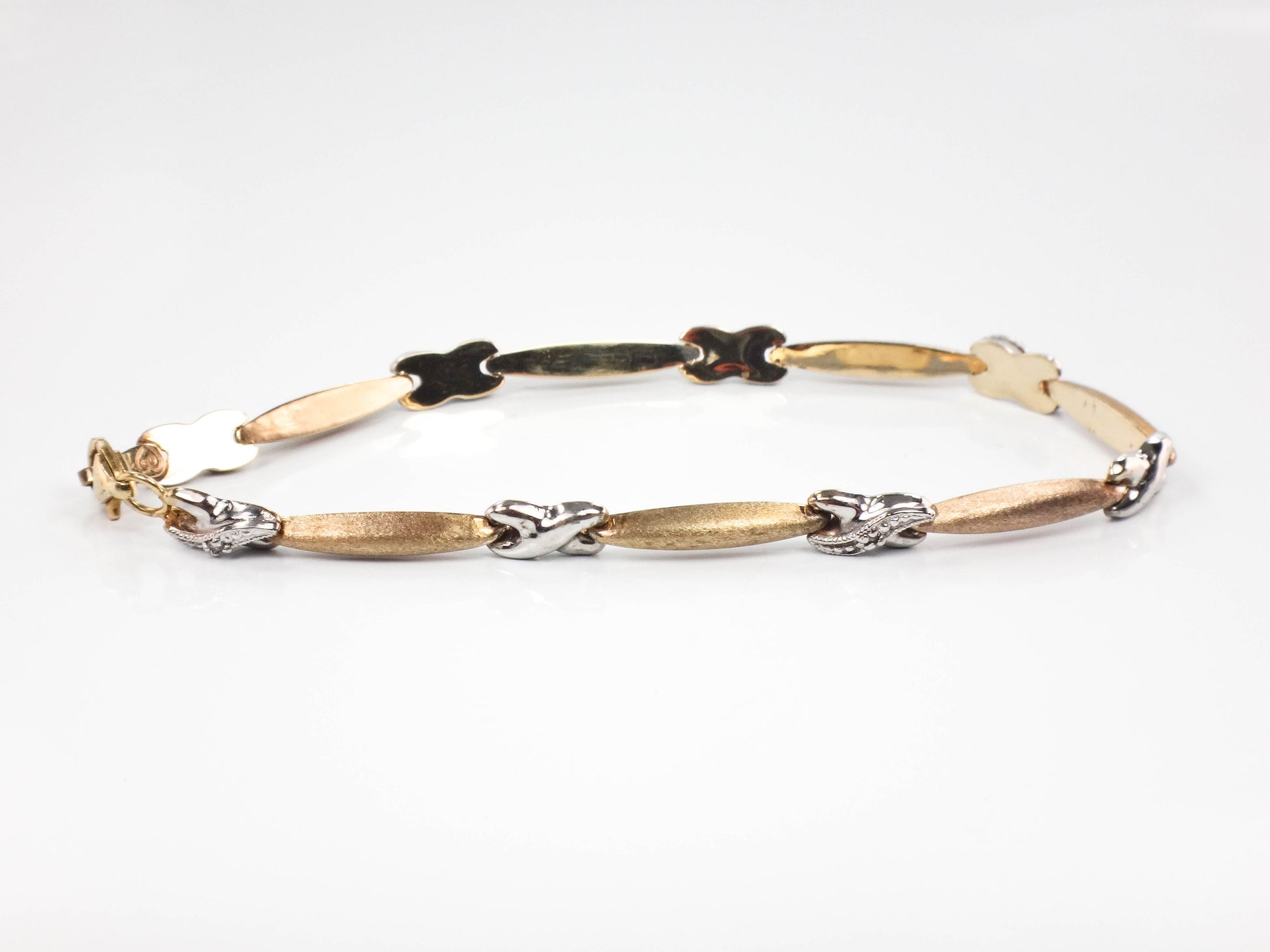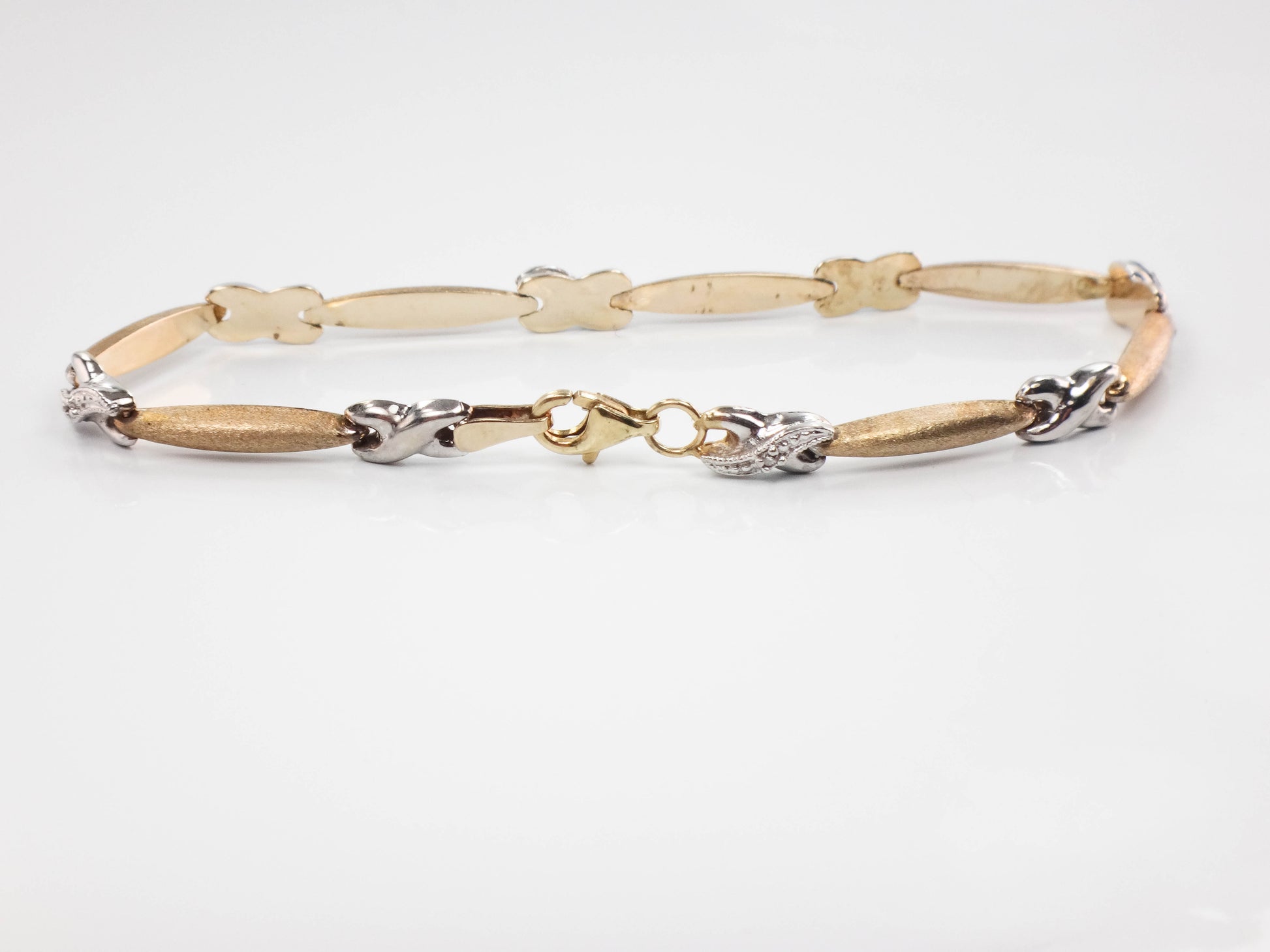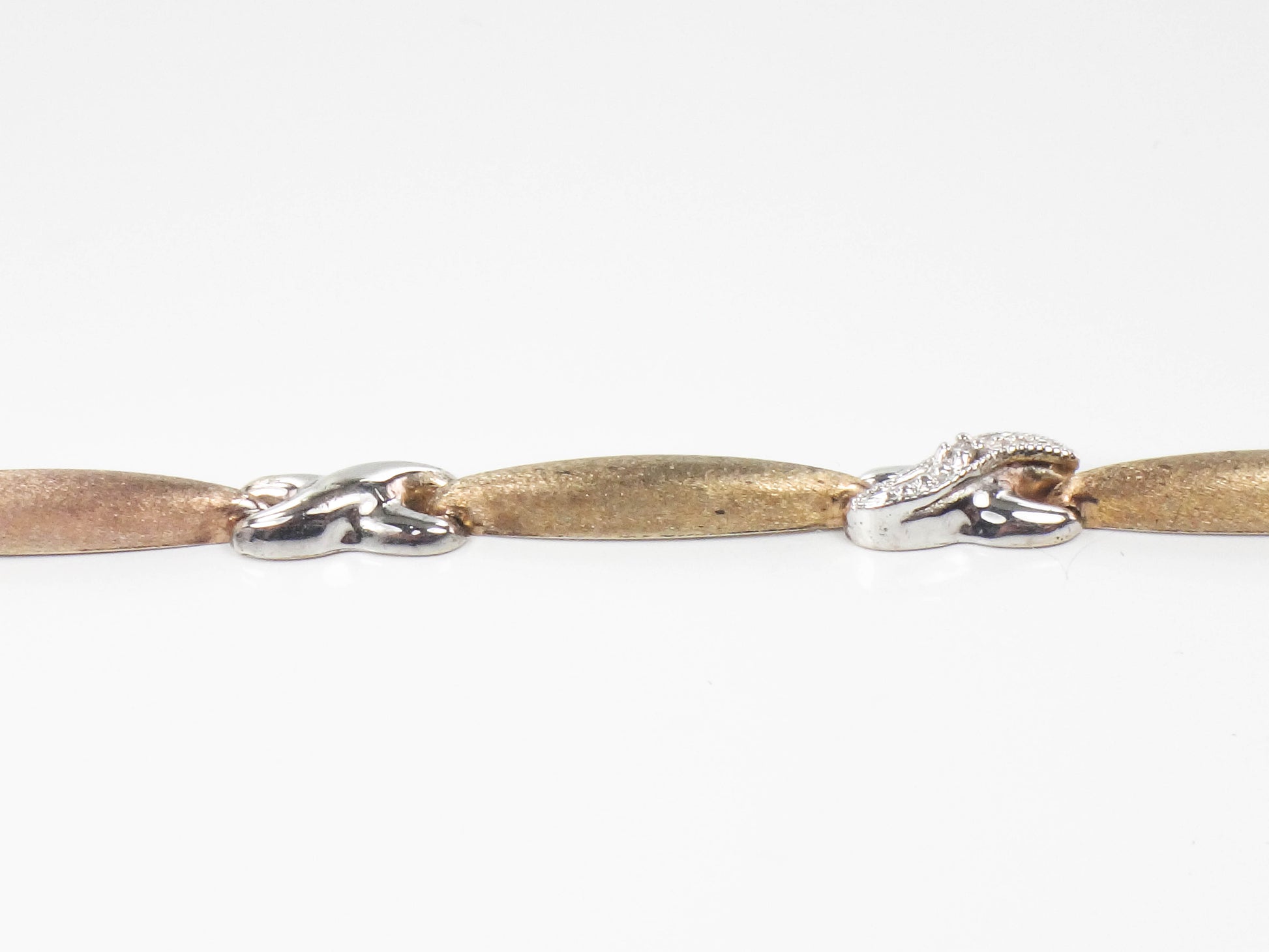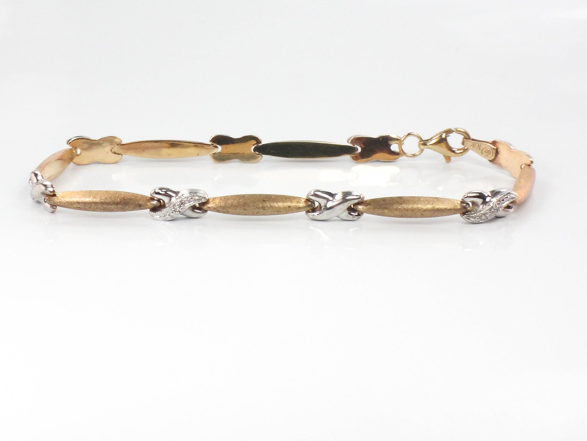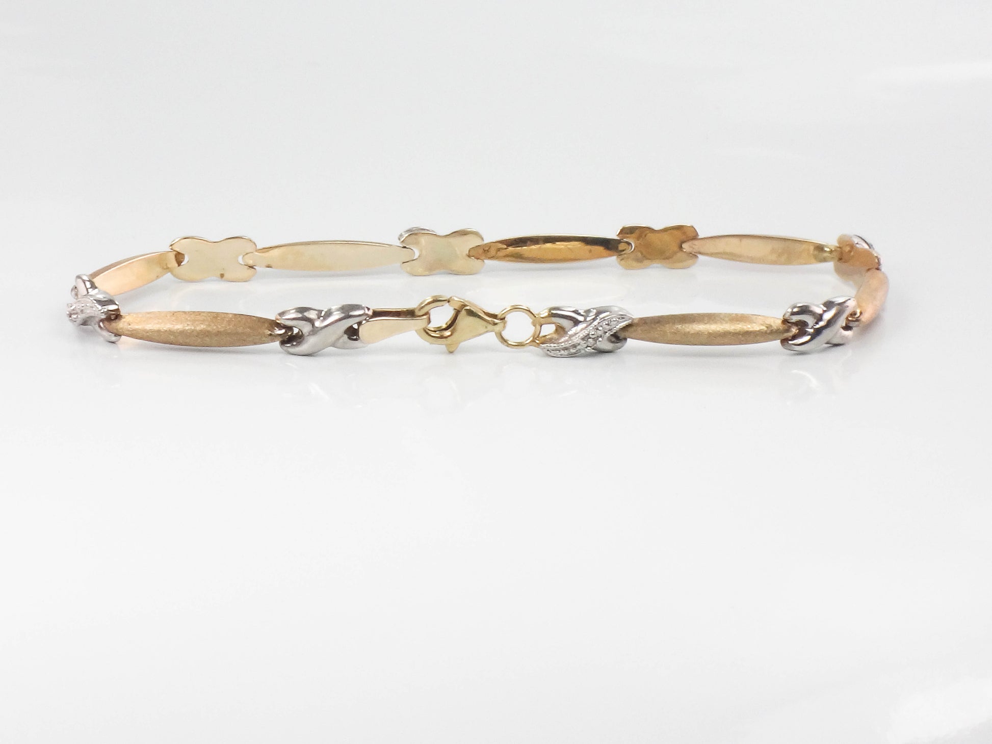 10k Two Tone Gold and Diamond X Bracelet, 6 7/8", Vintage Jewelry