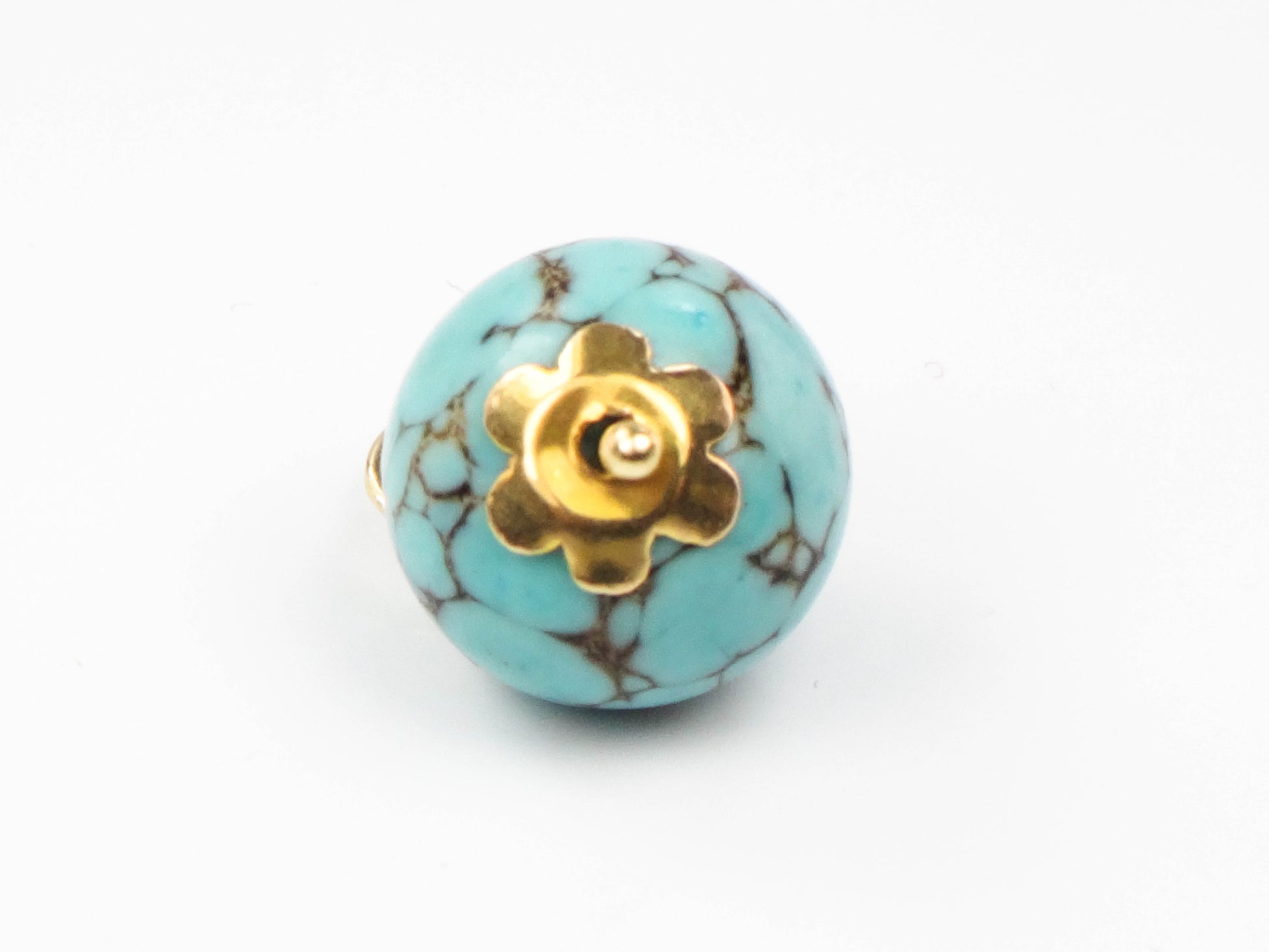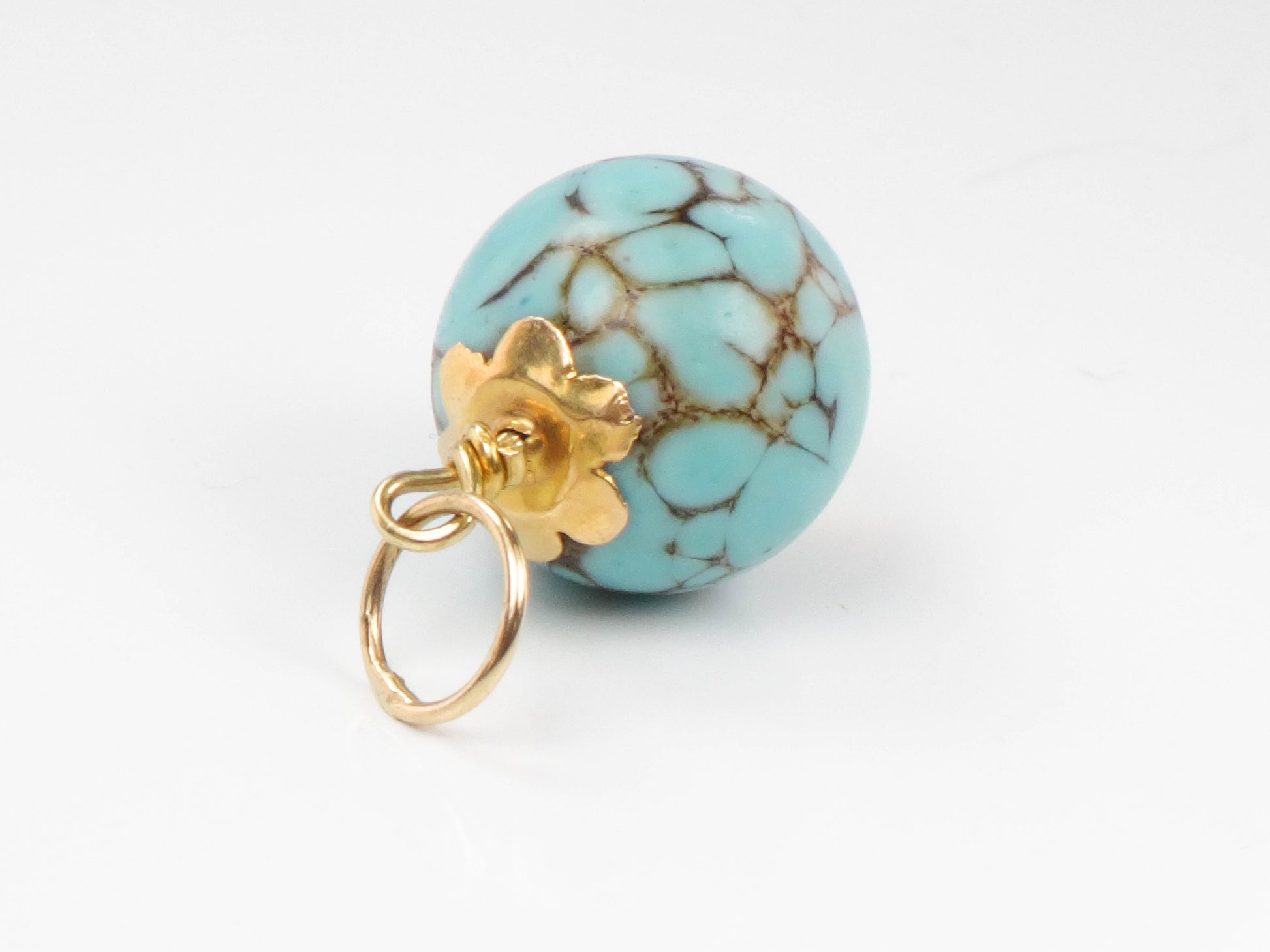 Estate 14k Gold Spiderweb Turquoise Ball Pendant Charm, Round Blue Turquoise Pendant