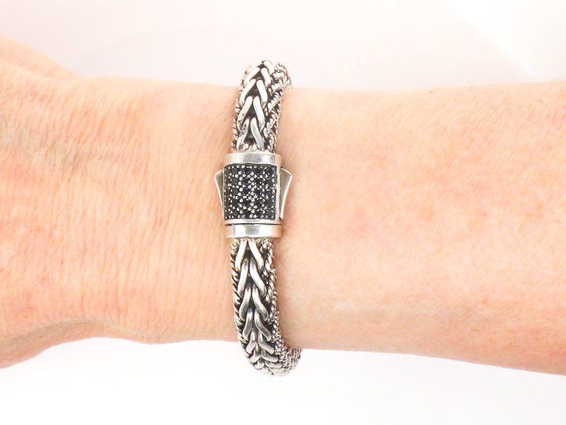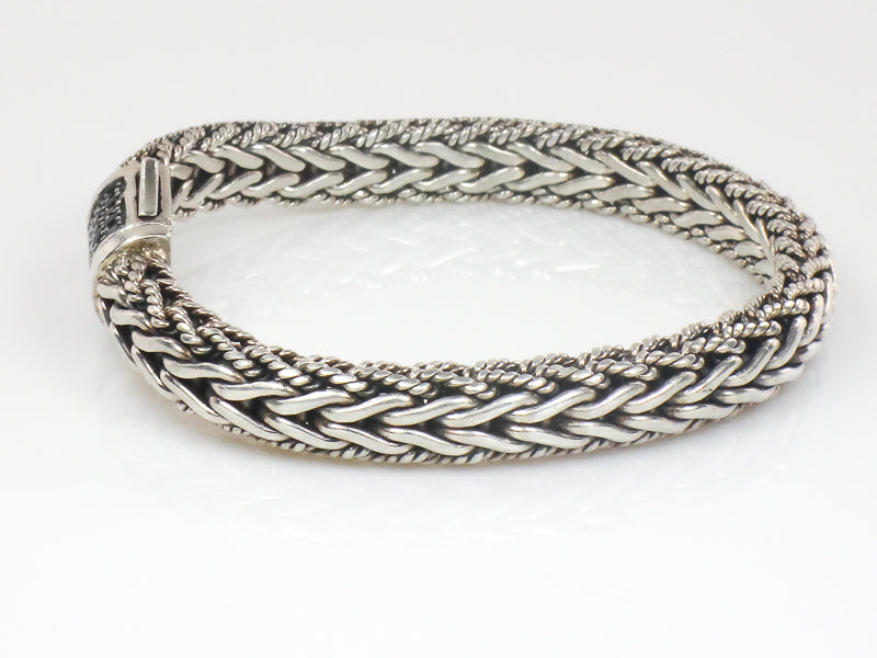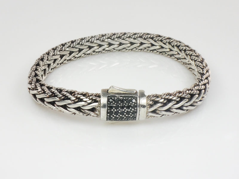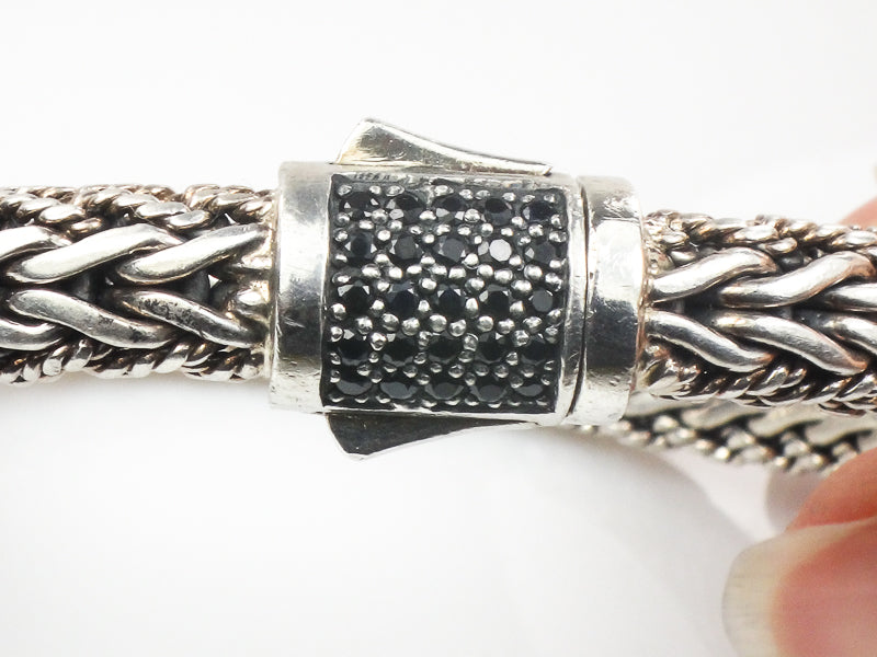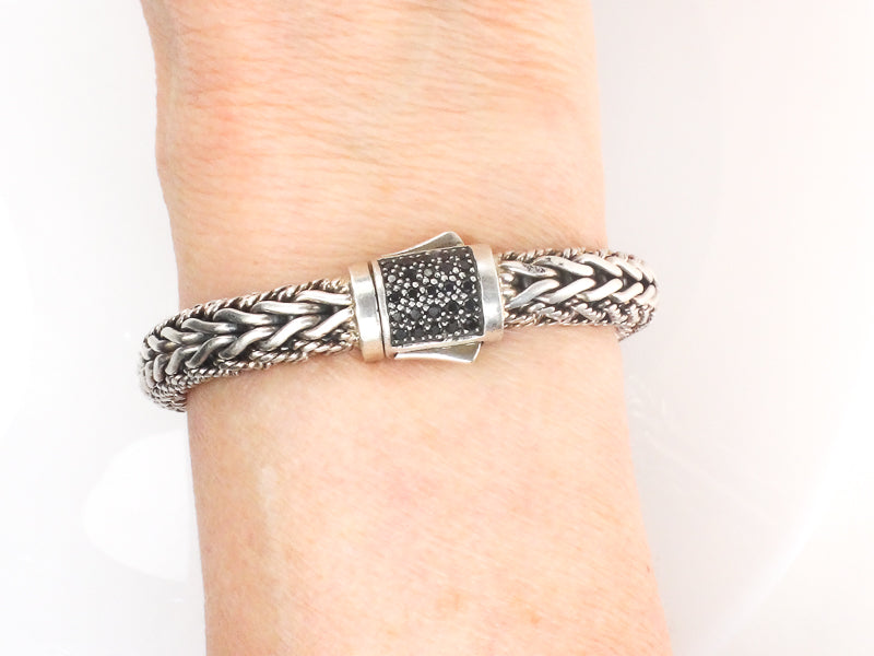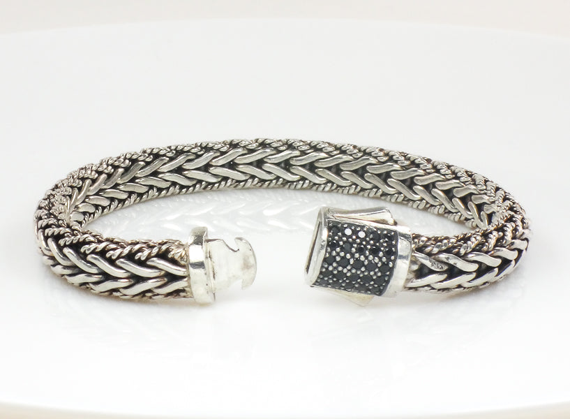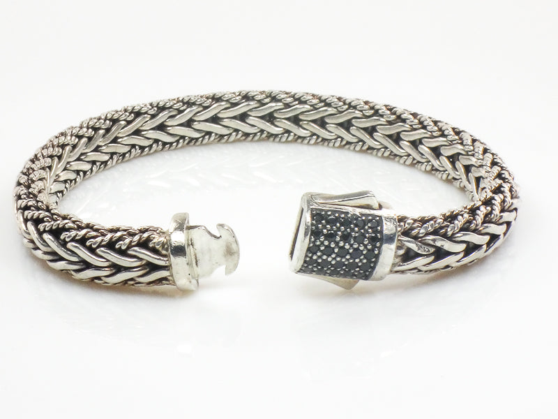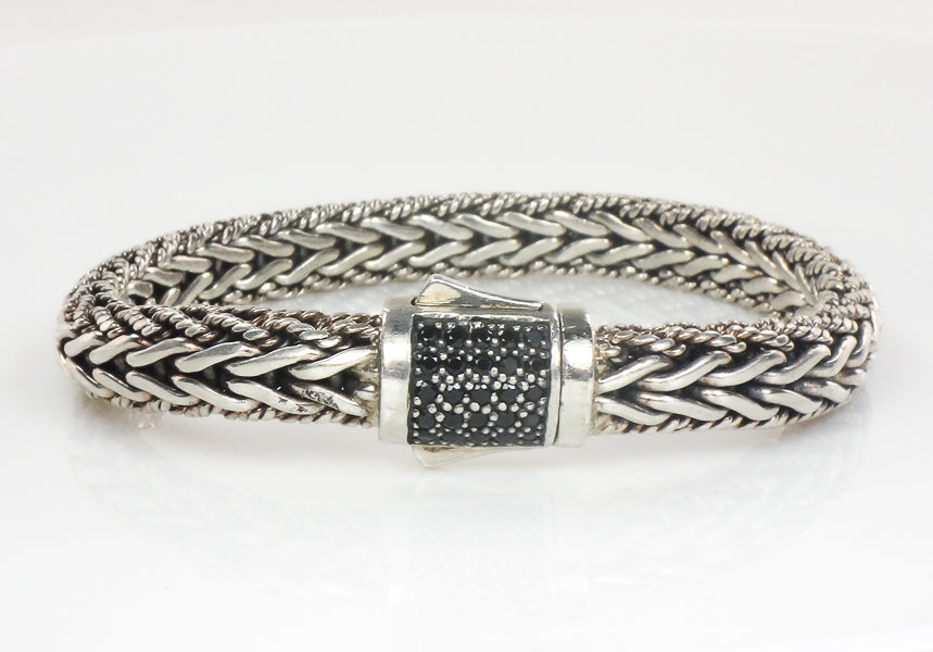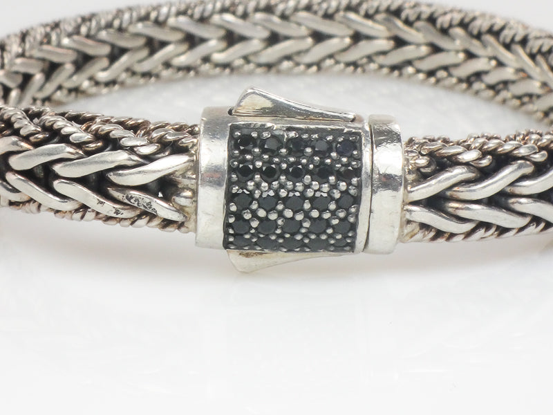 Phillip Gavriel Sterling Silver Half Round Woven Chain Black Sapphire Bracelet 7.5" (Pre-Owned)