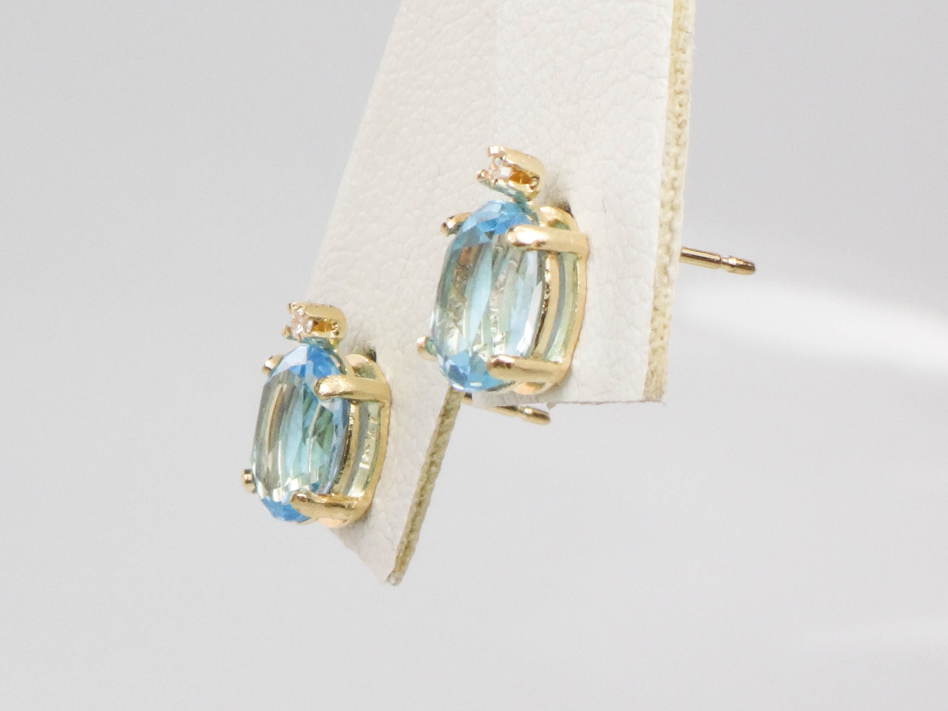 Pre-Owned 14k Yellow Gold Blue Topaz Stud Earrings with White Sapphire Accents, Oval December Birthstone Studs