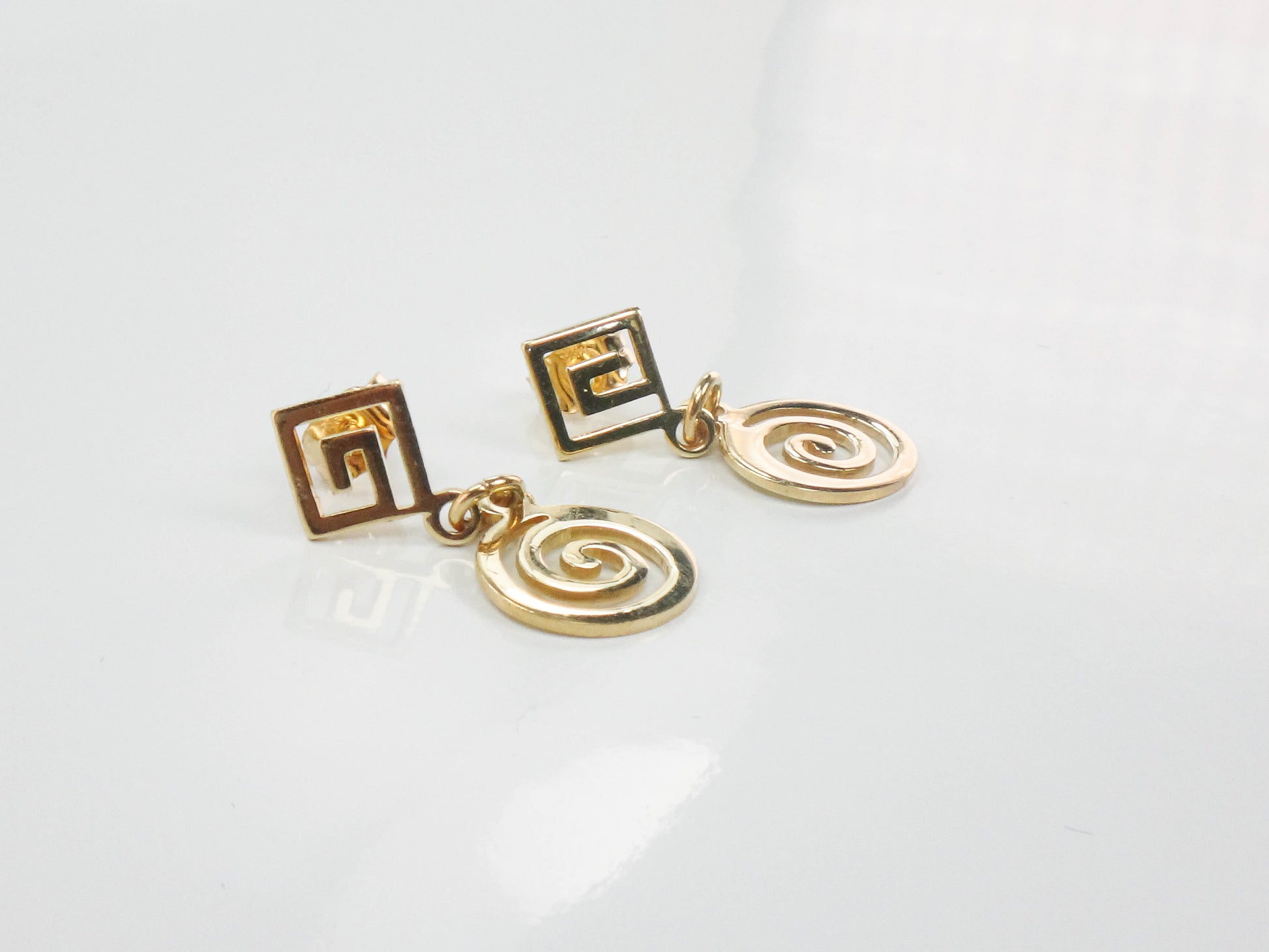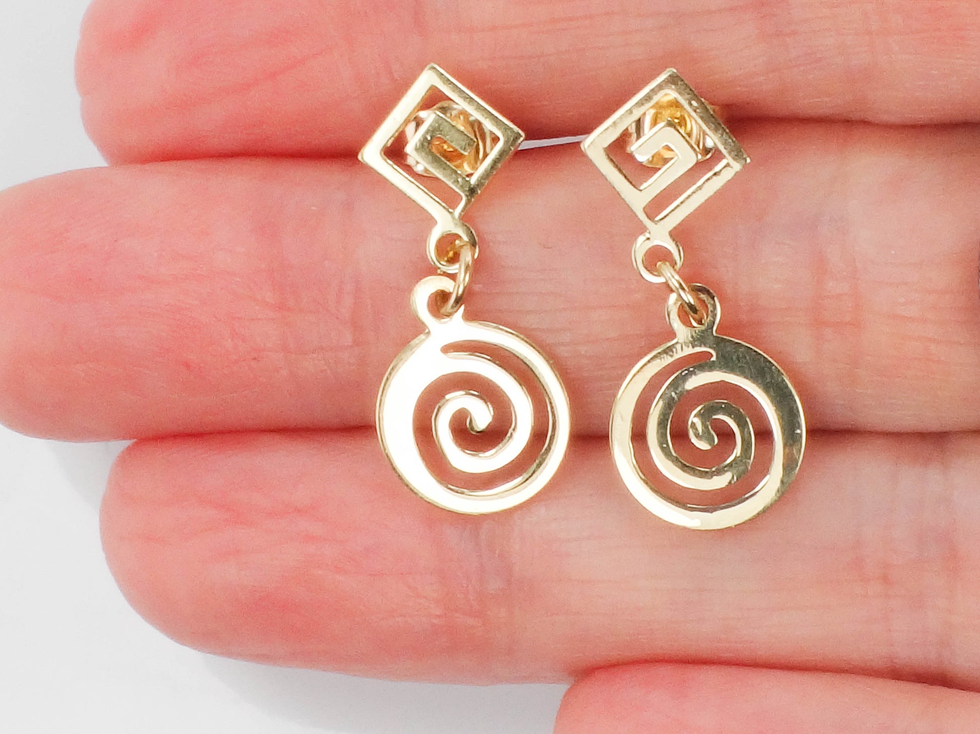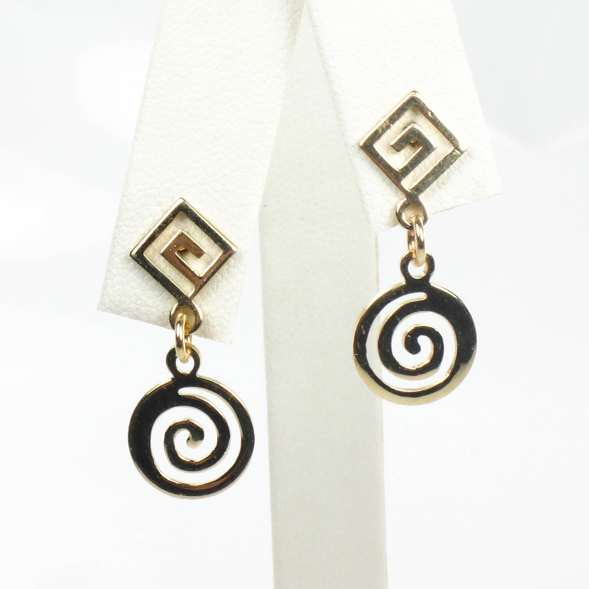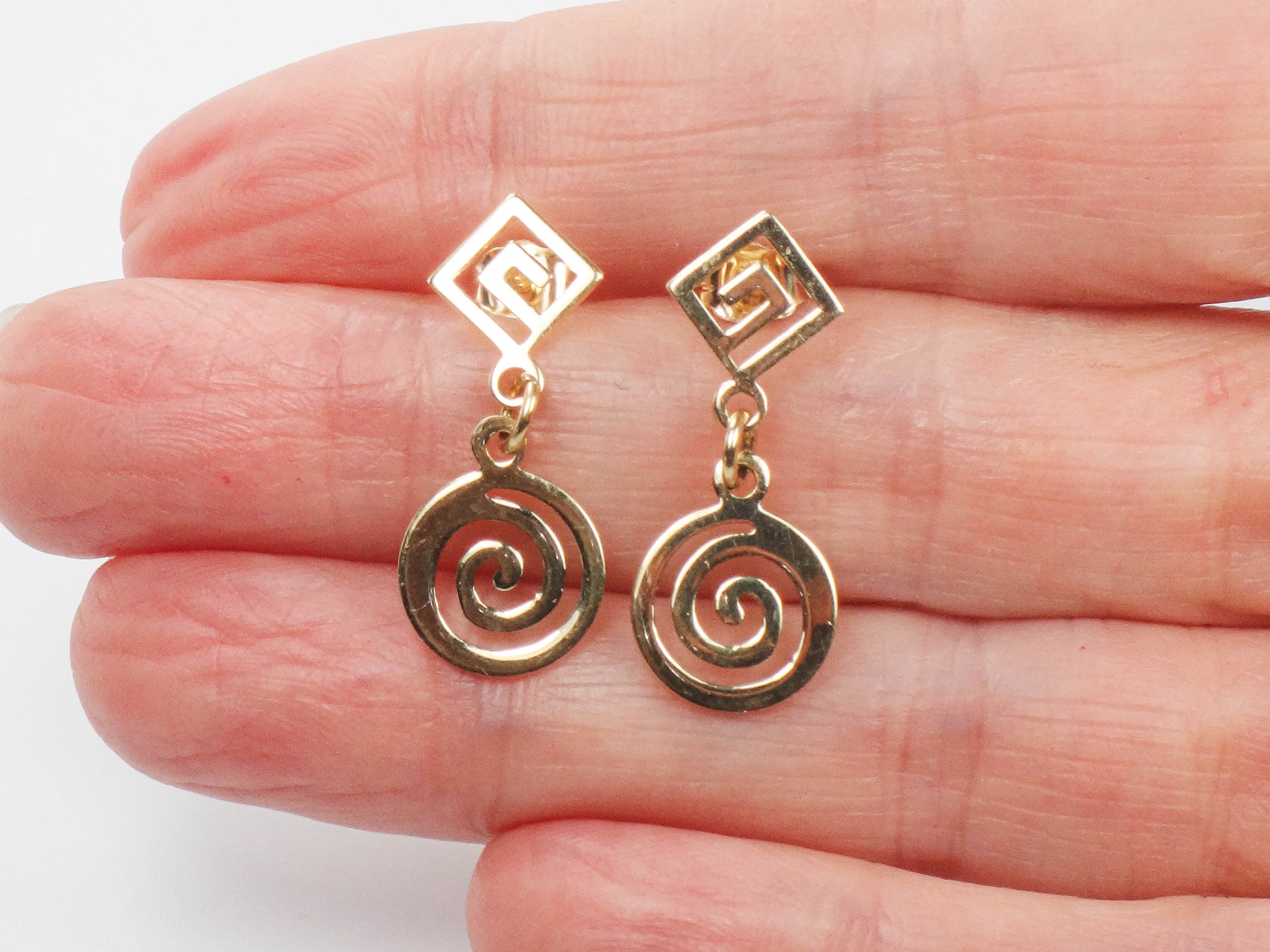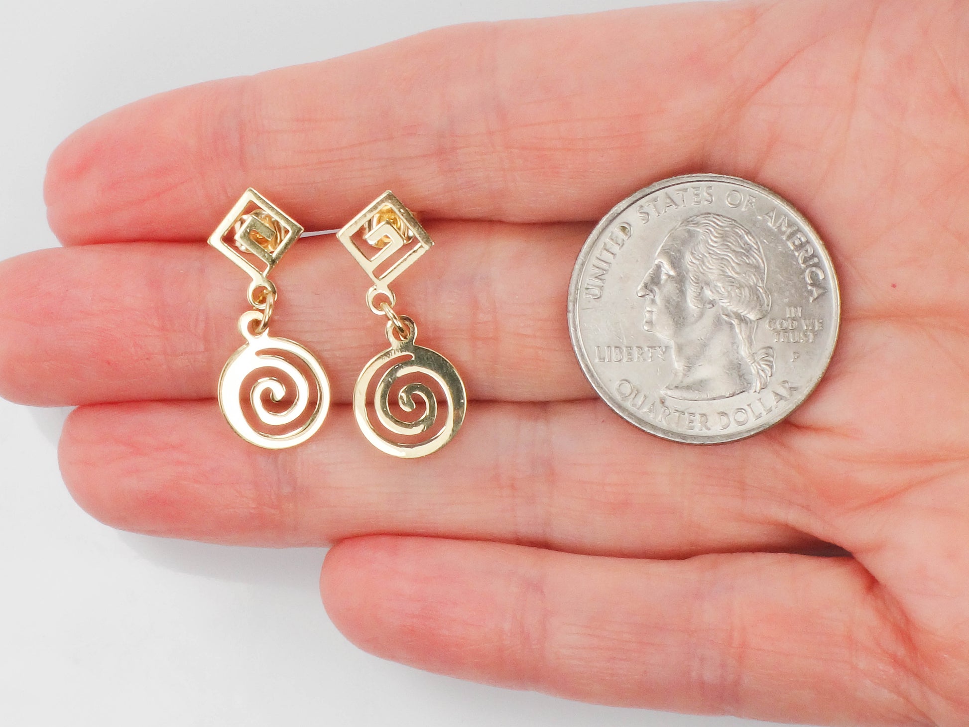 Vintage Solid 14k Yellow Gold Swirl Dangle Earrings