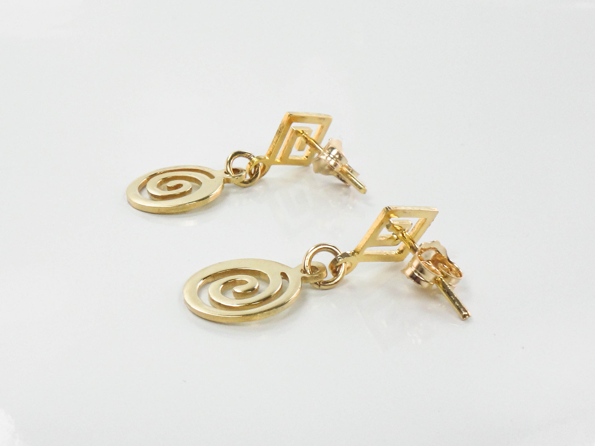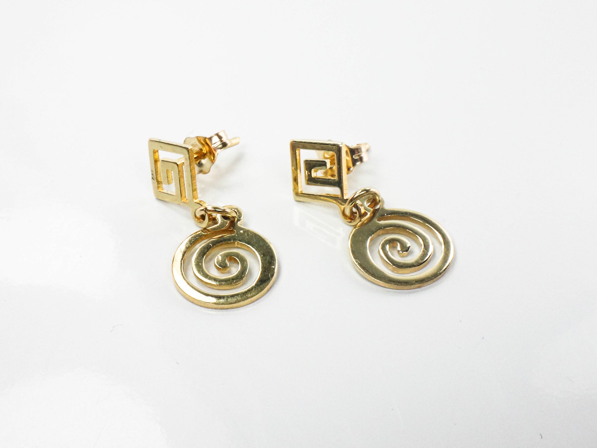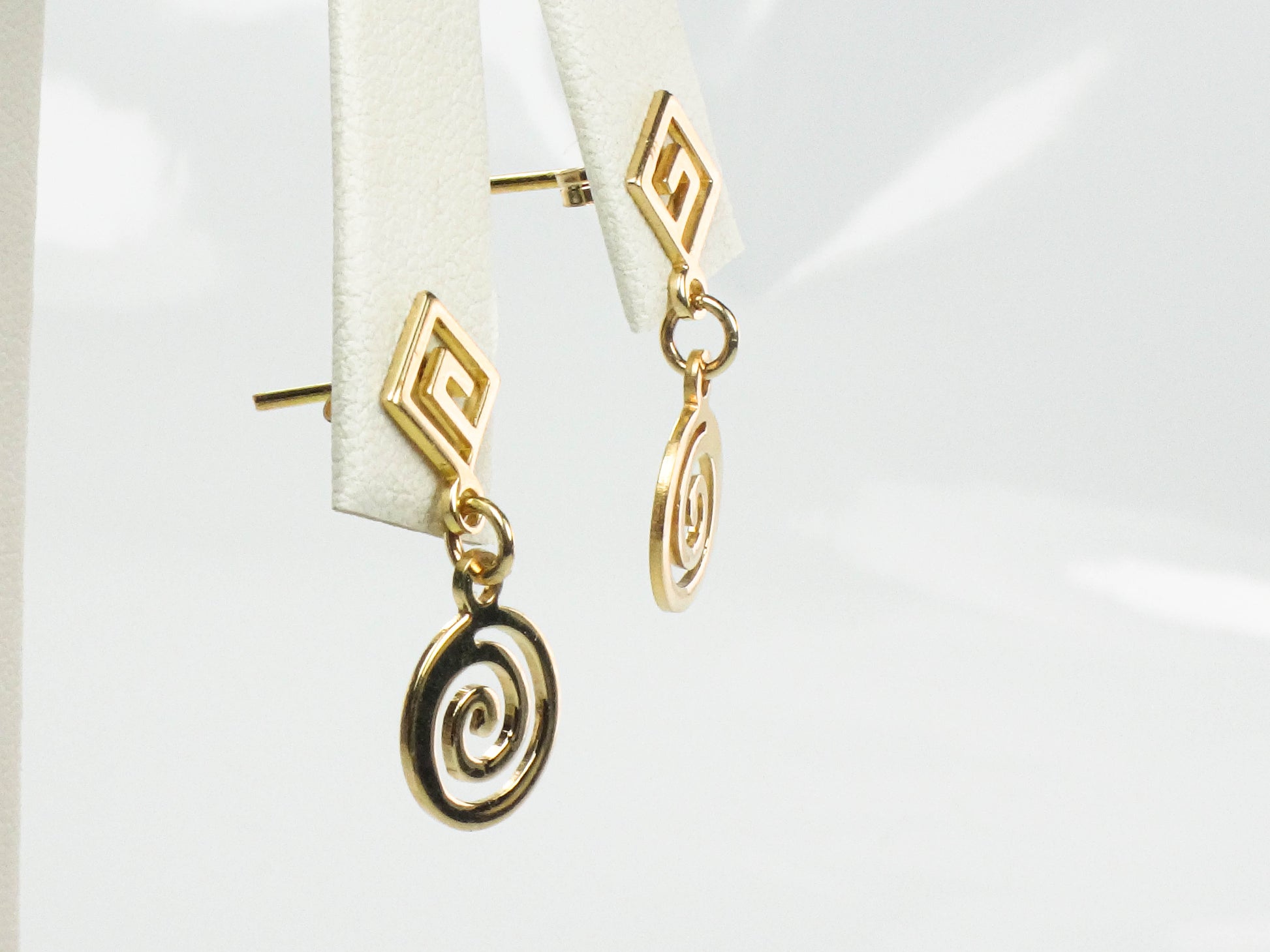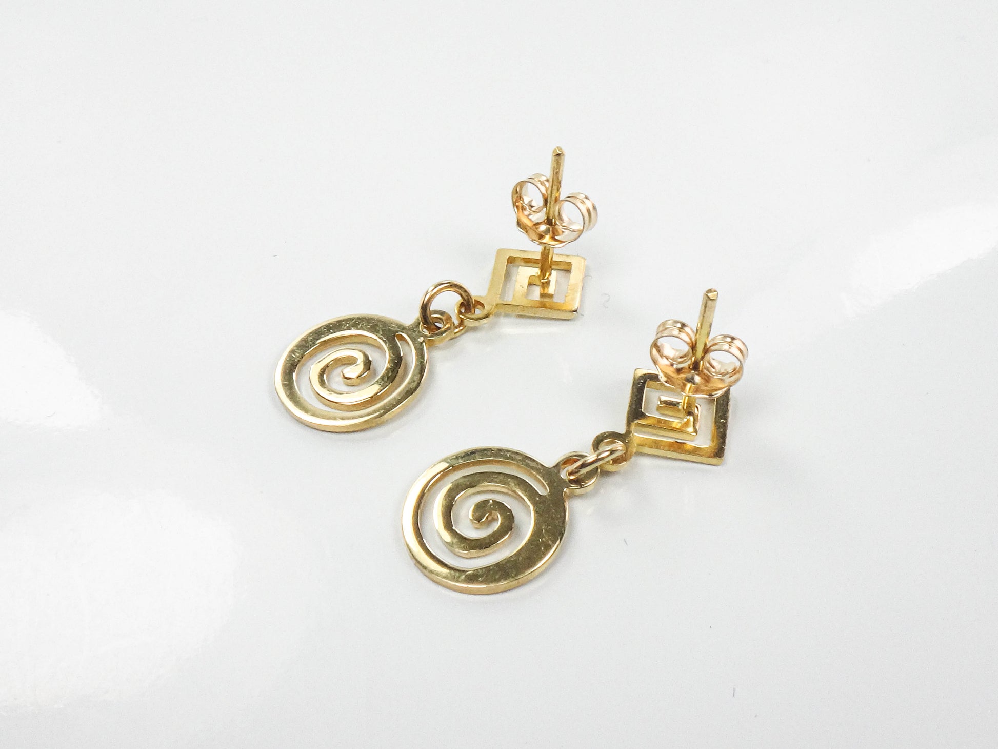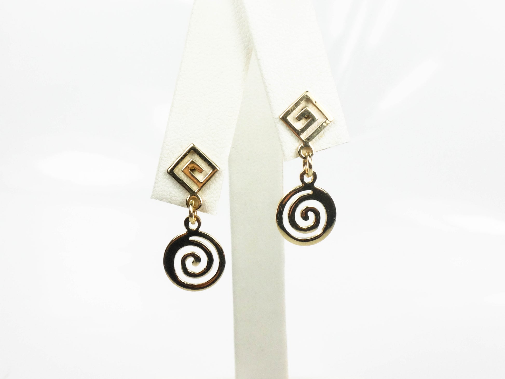 Vintage Solid 14k Yellow Gold Swirl Dangle Earrings