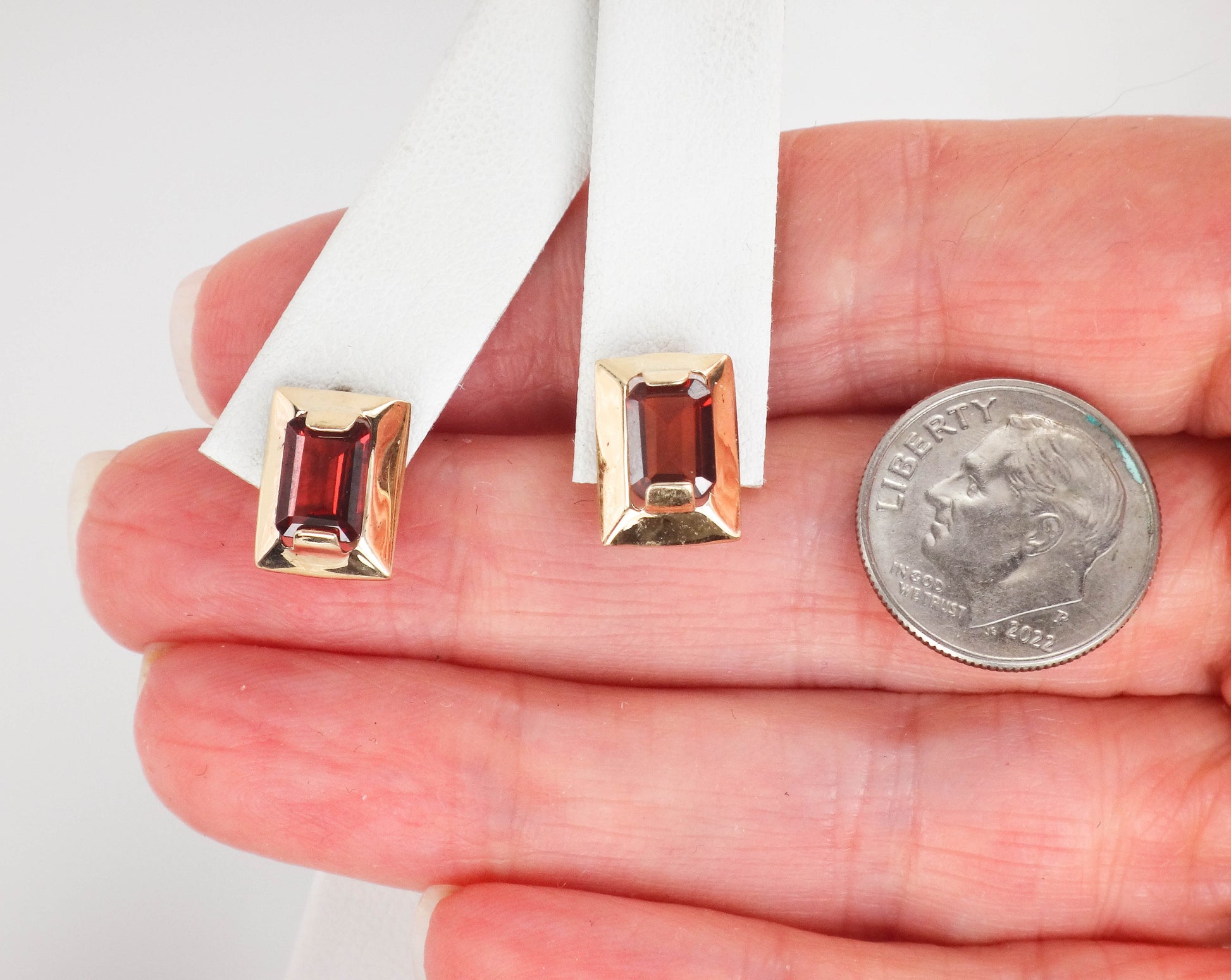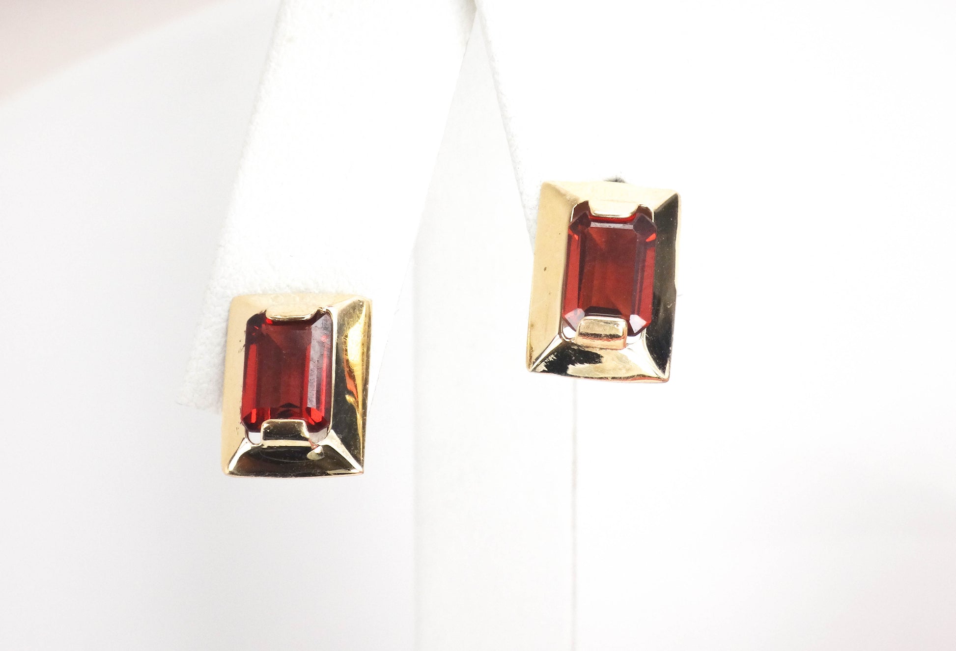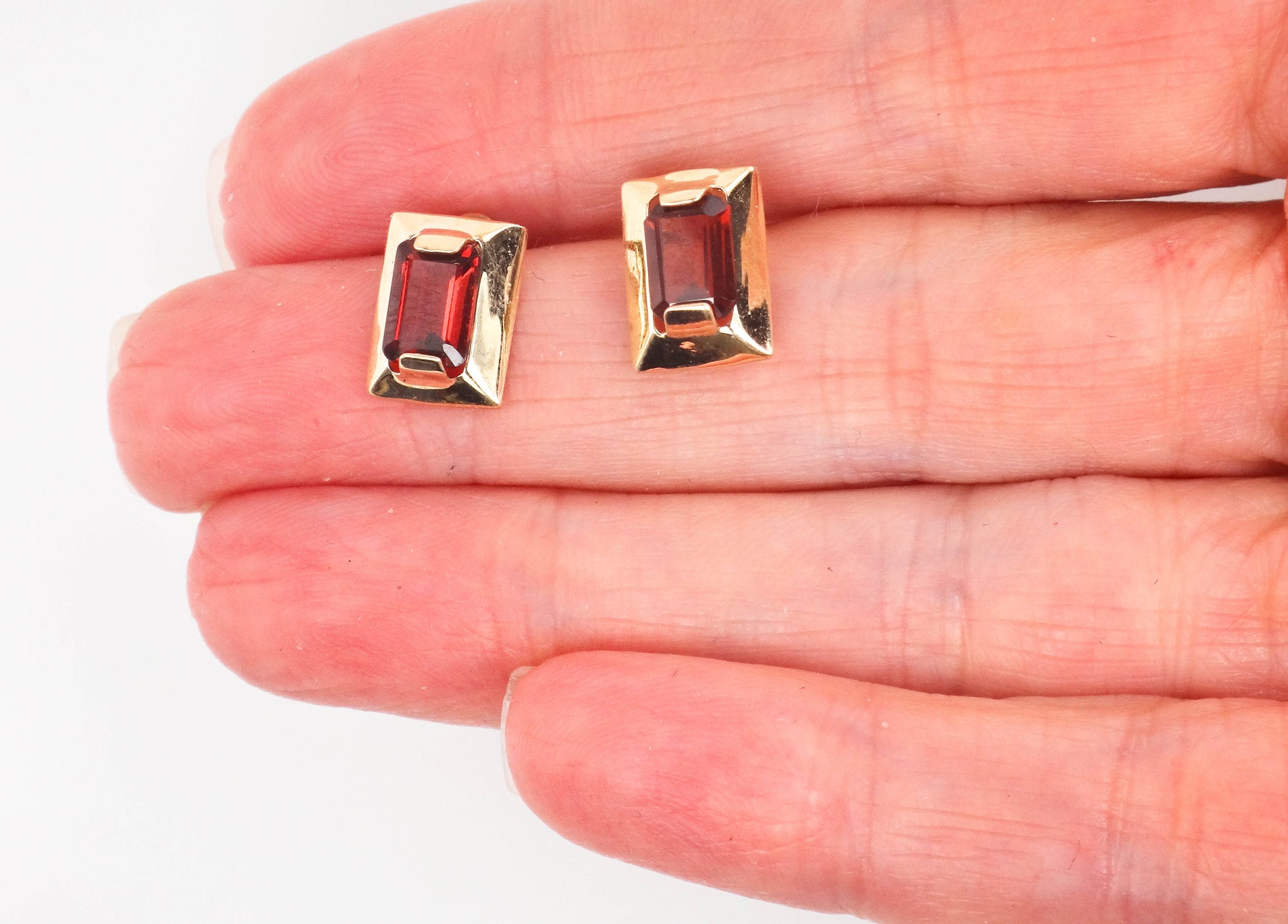 Vintage 10k Yellow Gold Rectangle Garnet Stud Earrings, January Birthstone Earrings