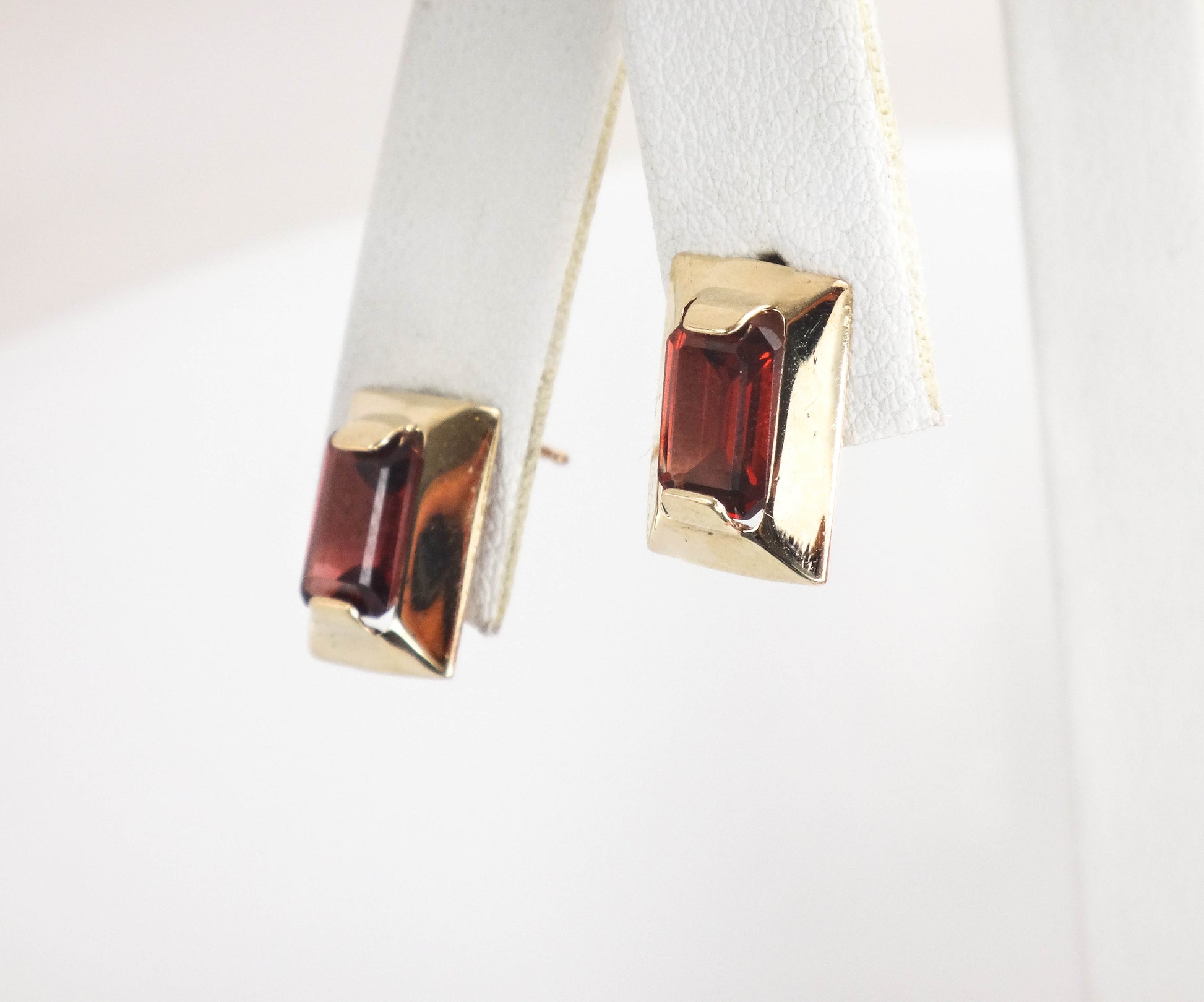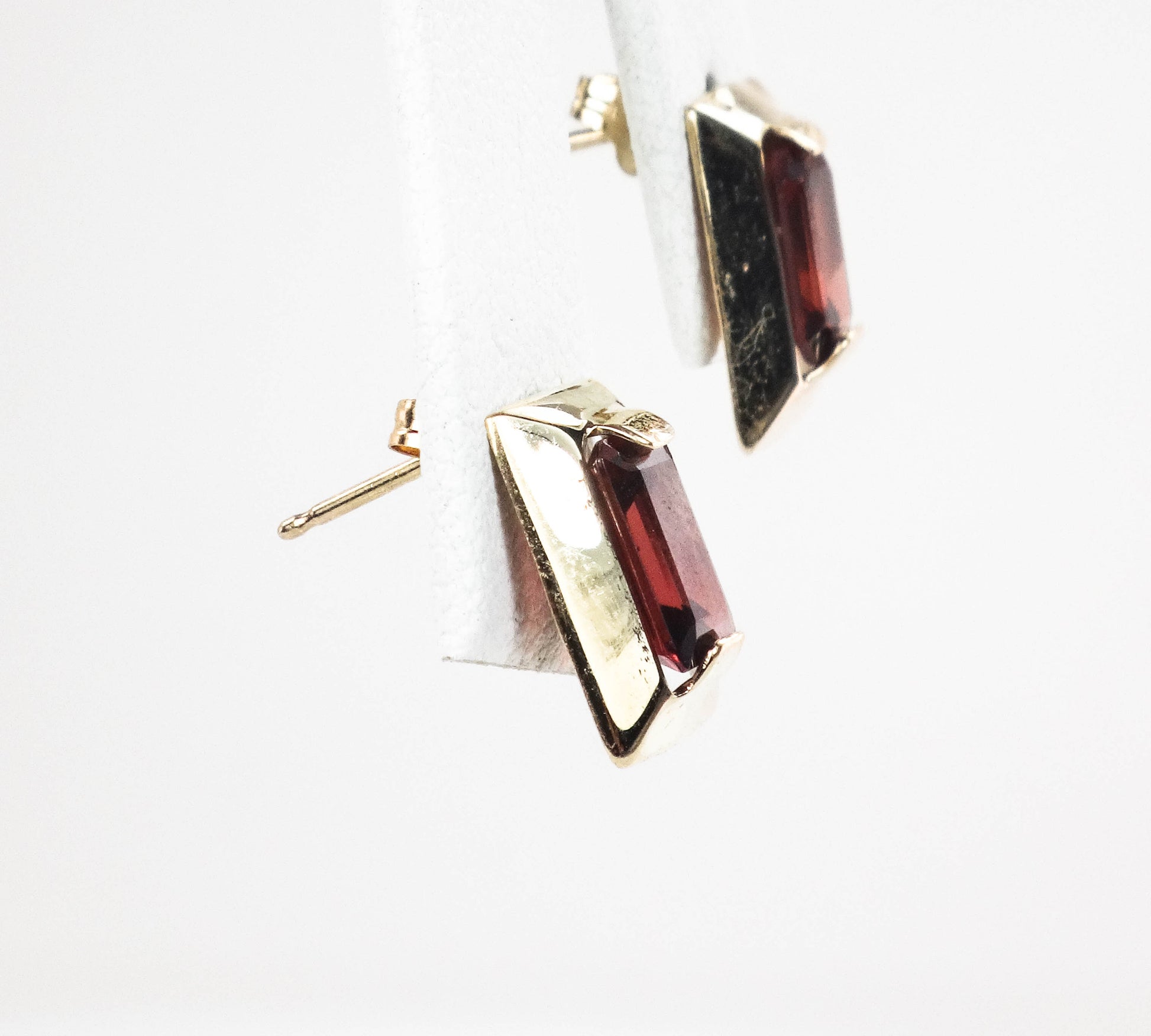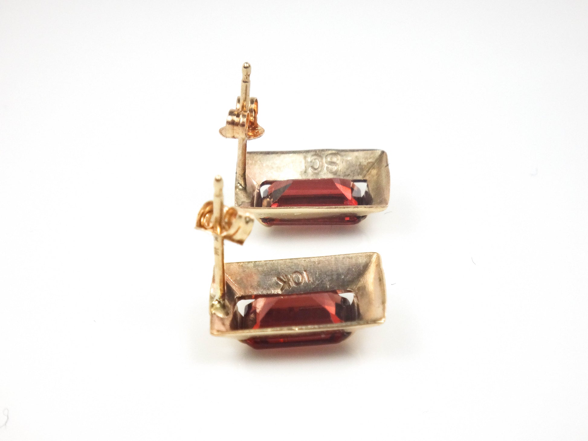 Vintage 10k Yellow Gold Rectangle Garnet Stud Earrings, January Birthstone Earrings
