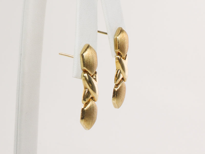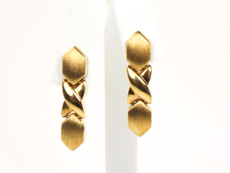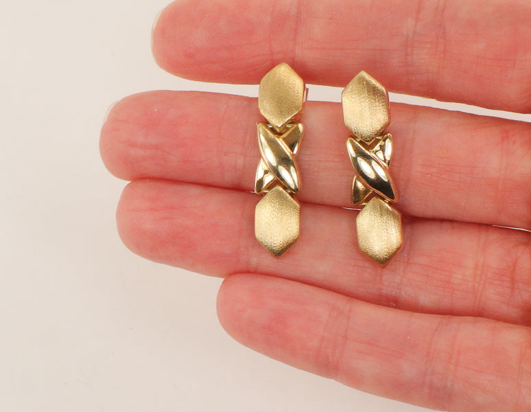 These Vintage 14k Gold Dangle Earrings are so lovely! They feature a hugs and kisses (X and O) design. They date approximately to the 1990's and are nicely made with a hinged design and the posts are .8 MM thick and longer than average. These earrings are unmarked and test for 14k gold (not gold filled or plated) while the ear nuts are marked 14k. These earrings are in good vintage condition and are ready to be worn and enjoyed. They will go nicely with dressy or casual outfits and will quickly become a favorite pair!