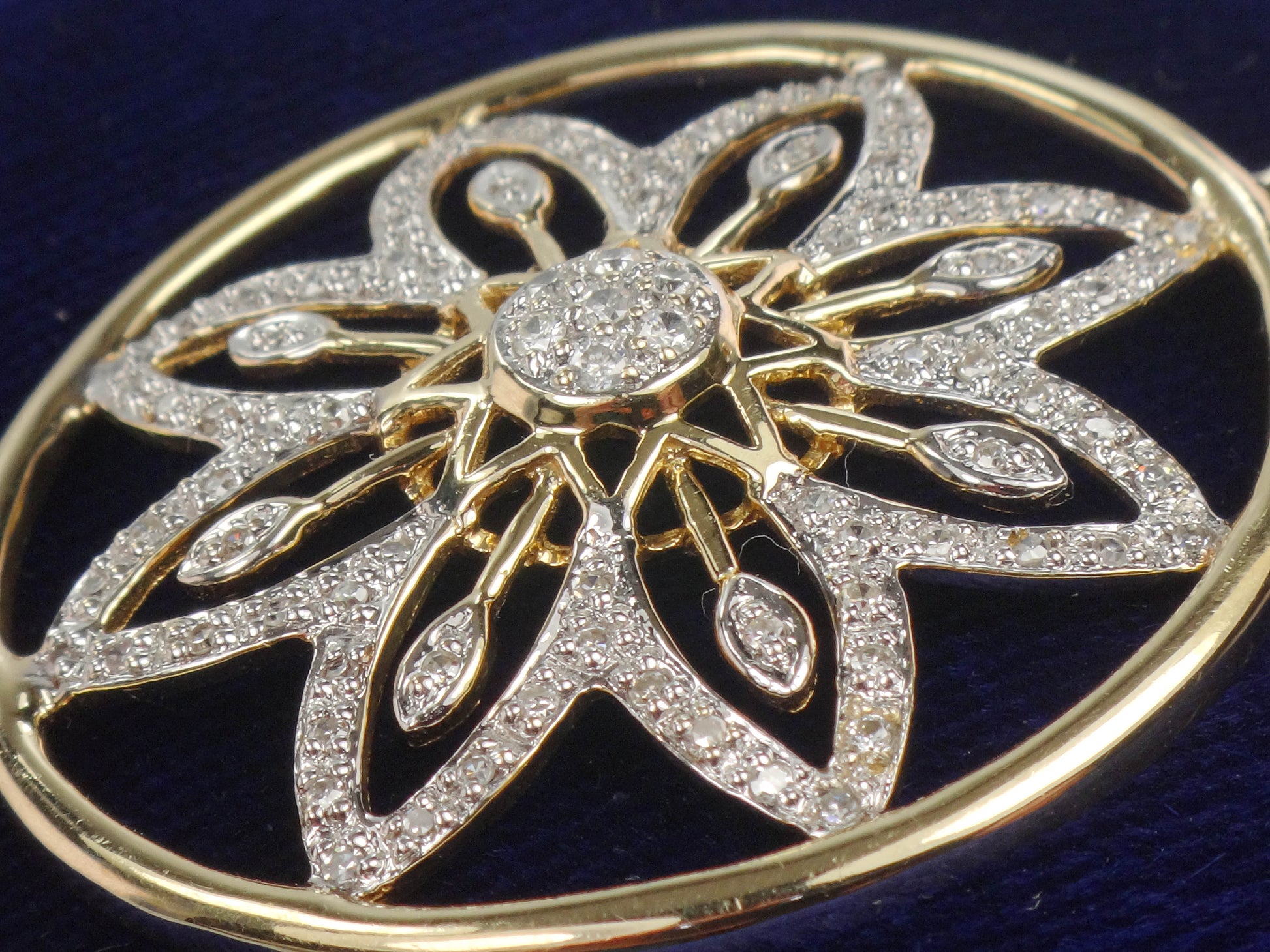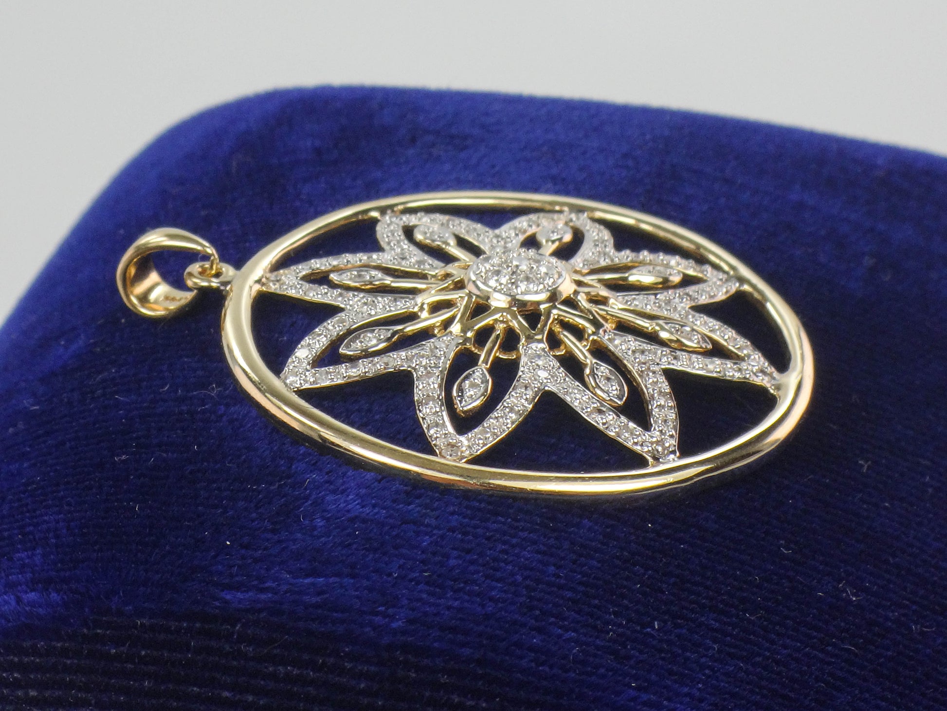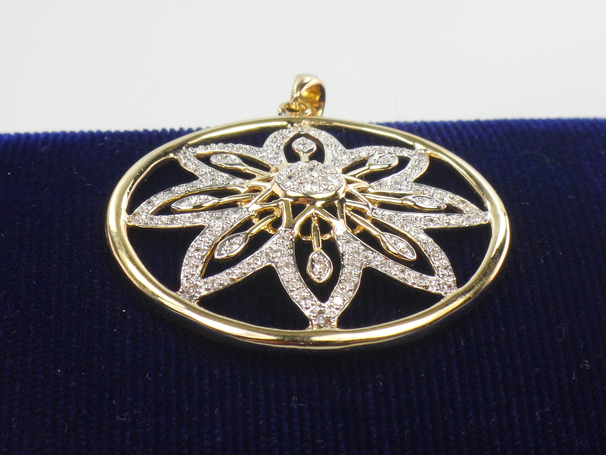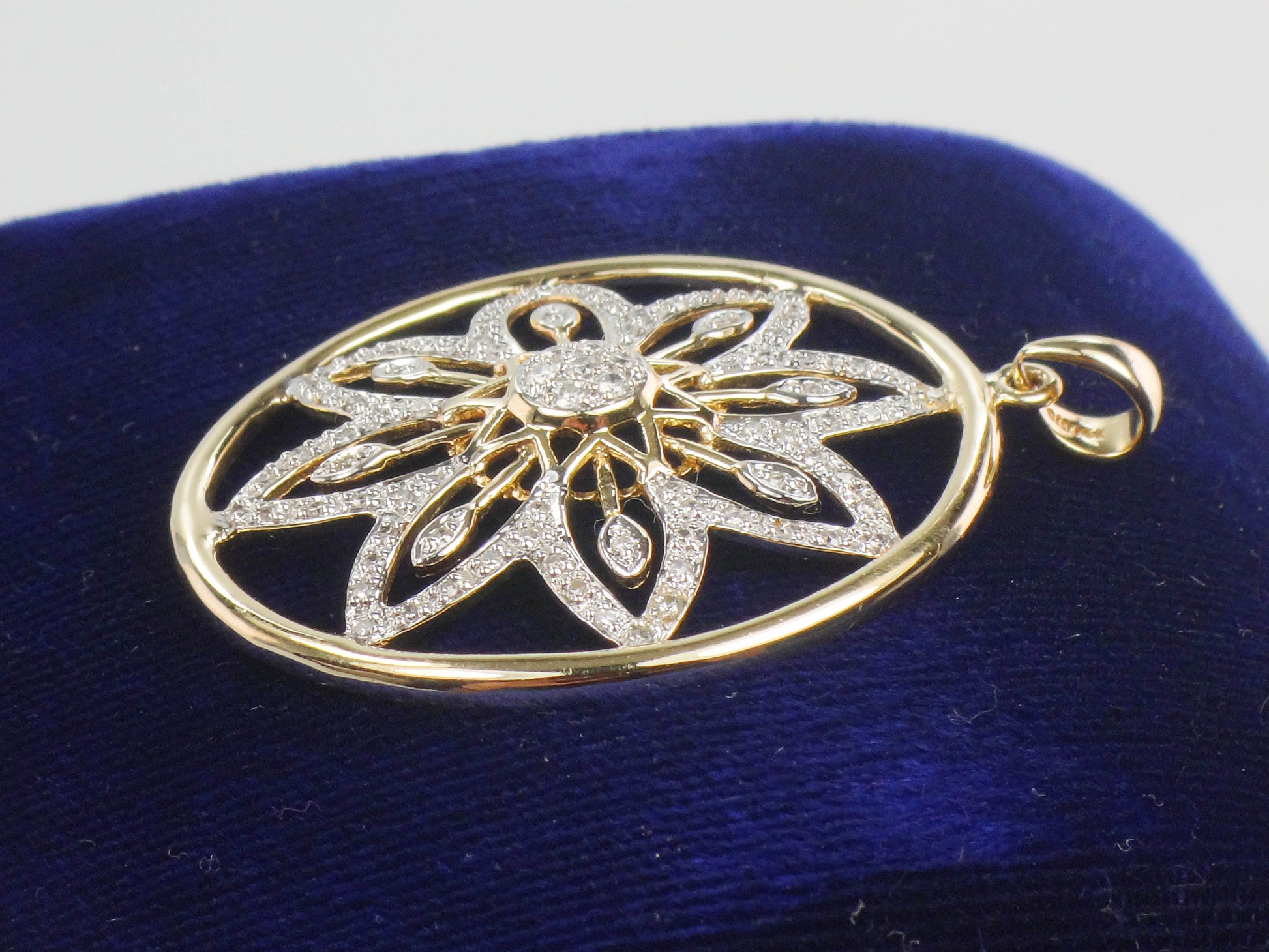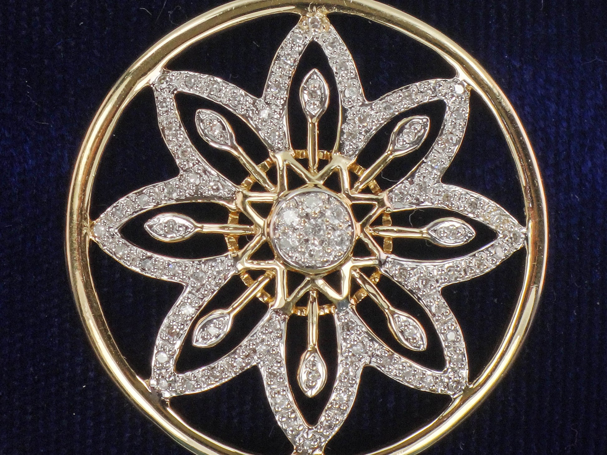 Vintage 14k Solid Gold Diamond Flower Pendant, Clyde Duneier Large Round Gold Pendant