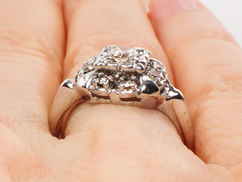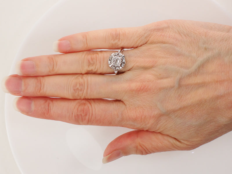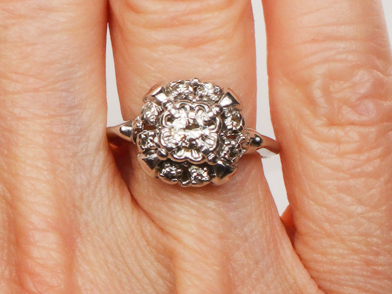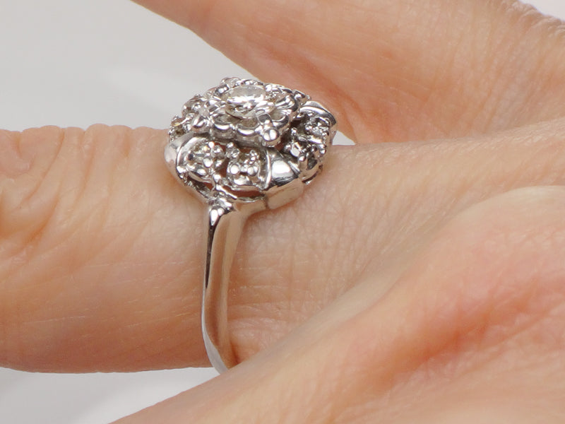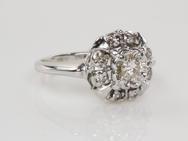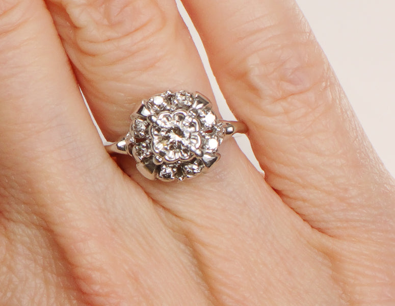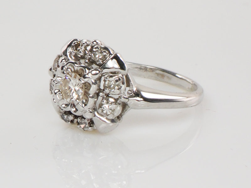Vintage 14k White Gold Diamond Halo Engagement Ring, 1/3 Carat TDW Cluster Style, Size 5.75