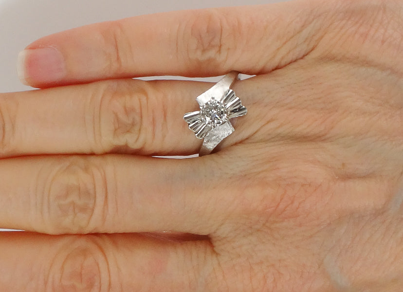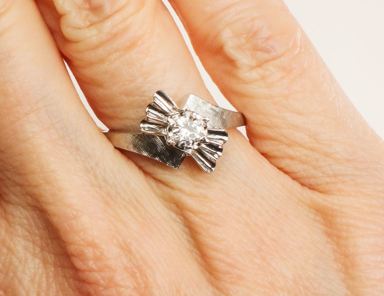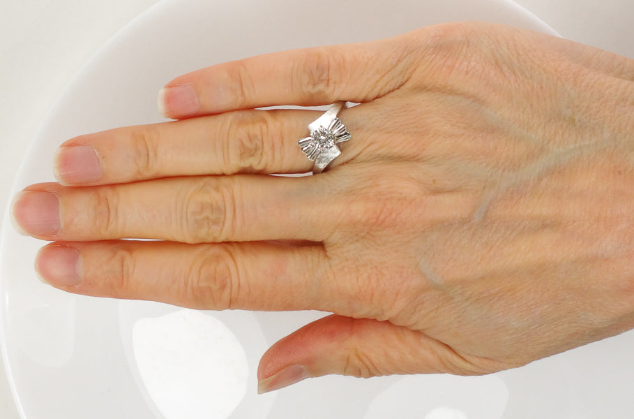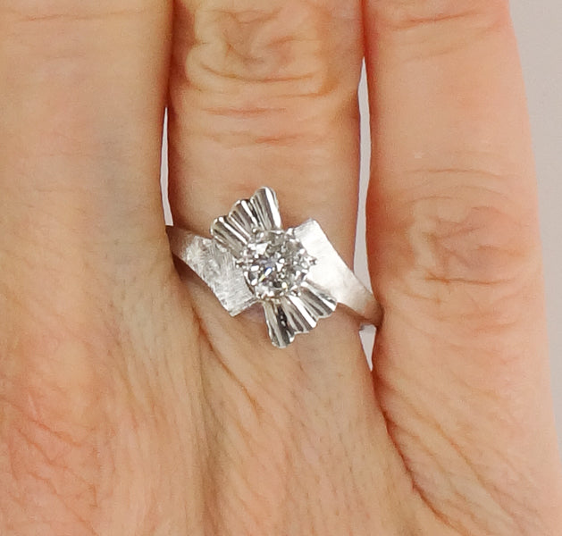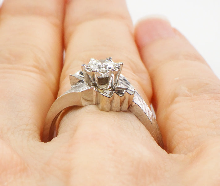 Vintage 14k White Gold Round Natural Diamond Solitaire Engagement Ring Approx .25 Carats Circa 1960's