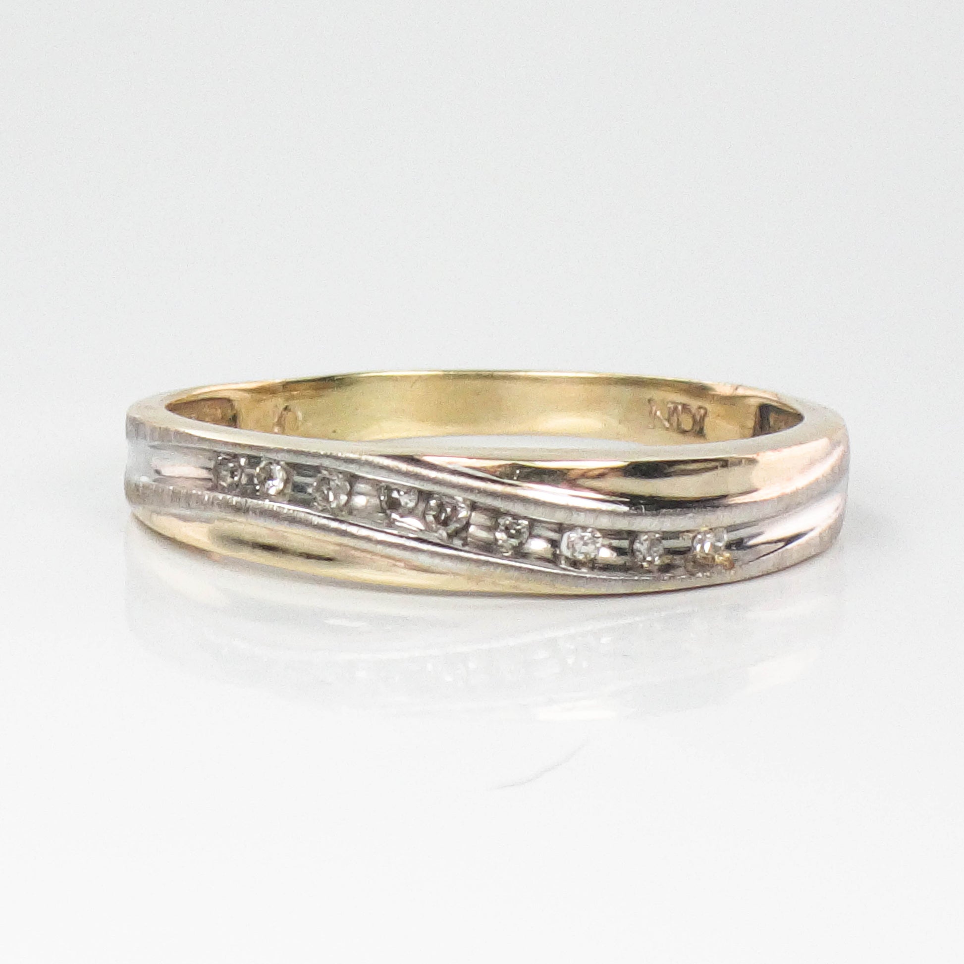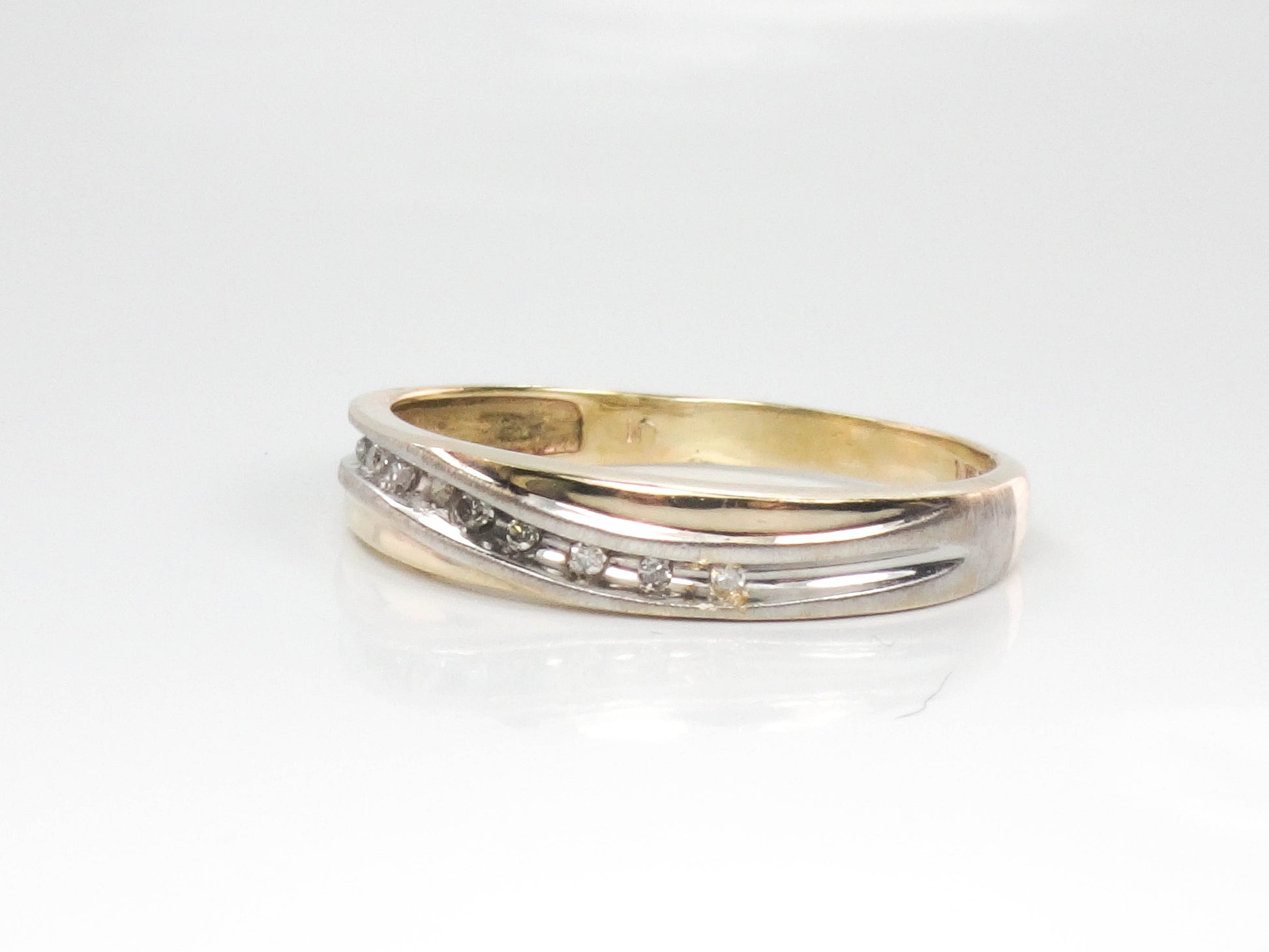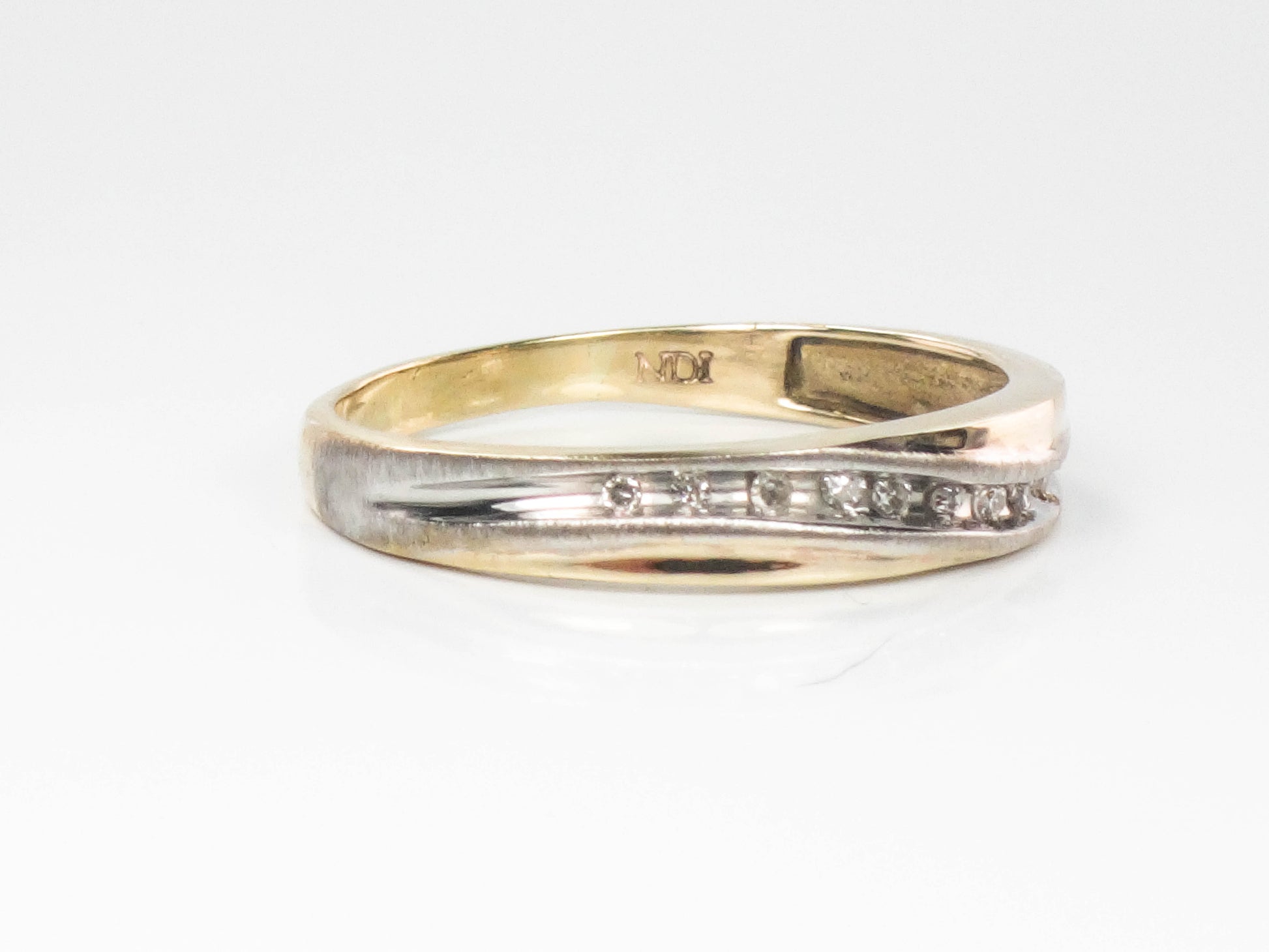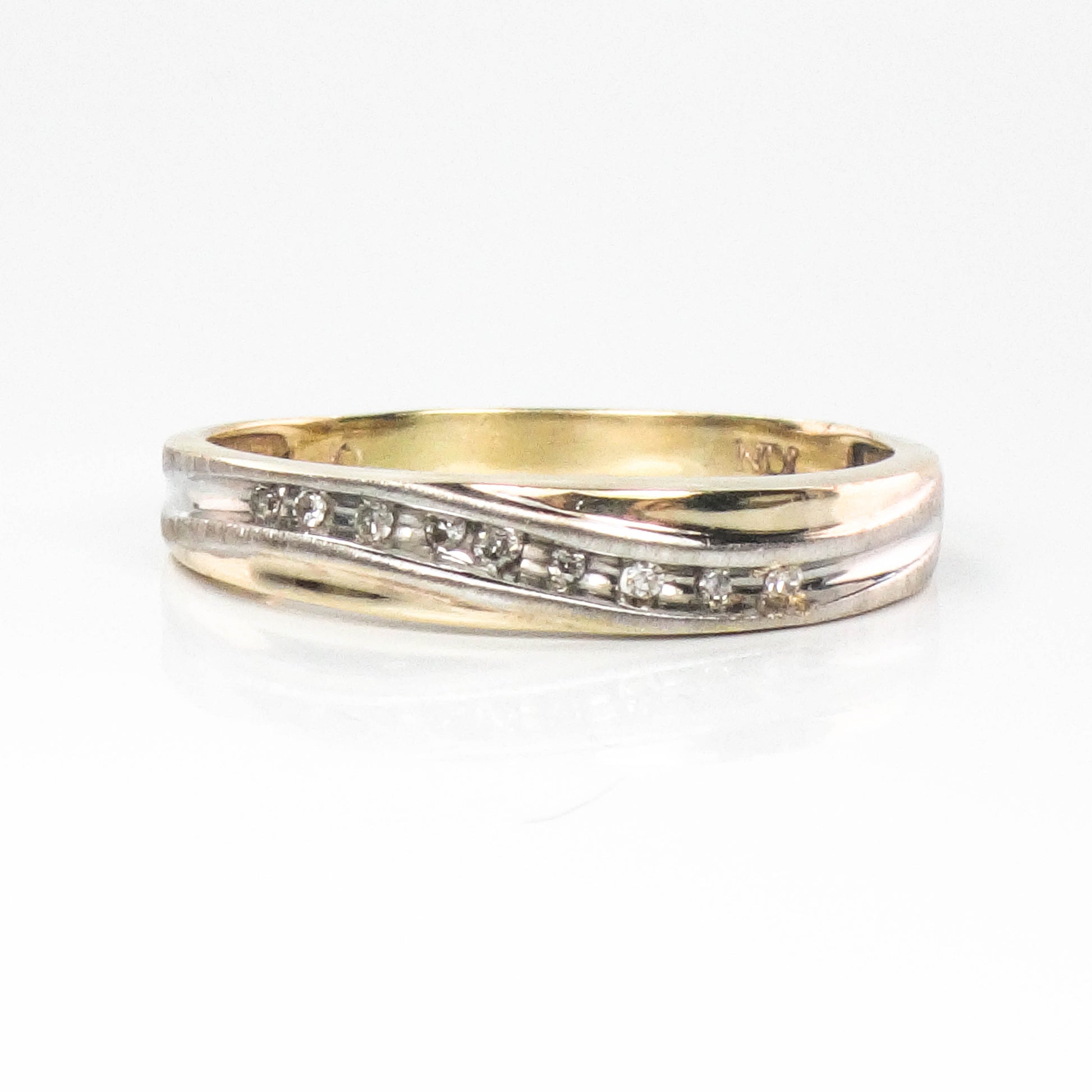 Vintage 10k Two Tone Gold Thin Diamond Wave Wedding Band, Stacking Ring, Size 6.75