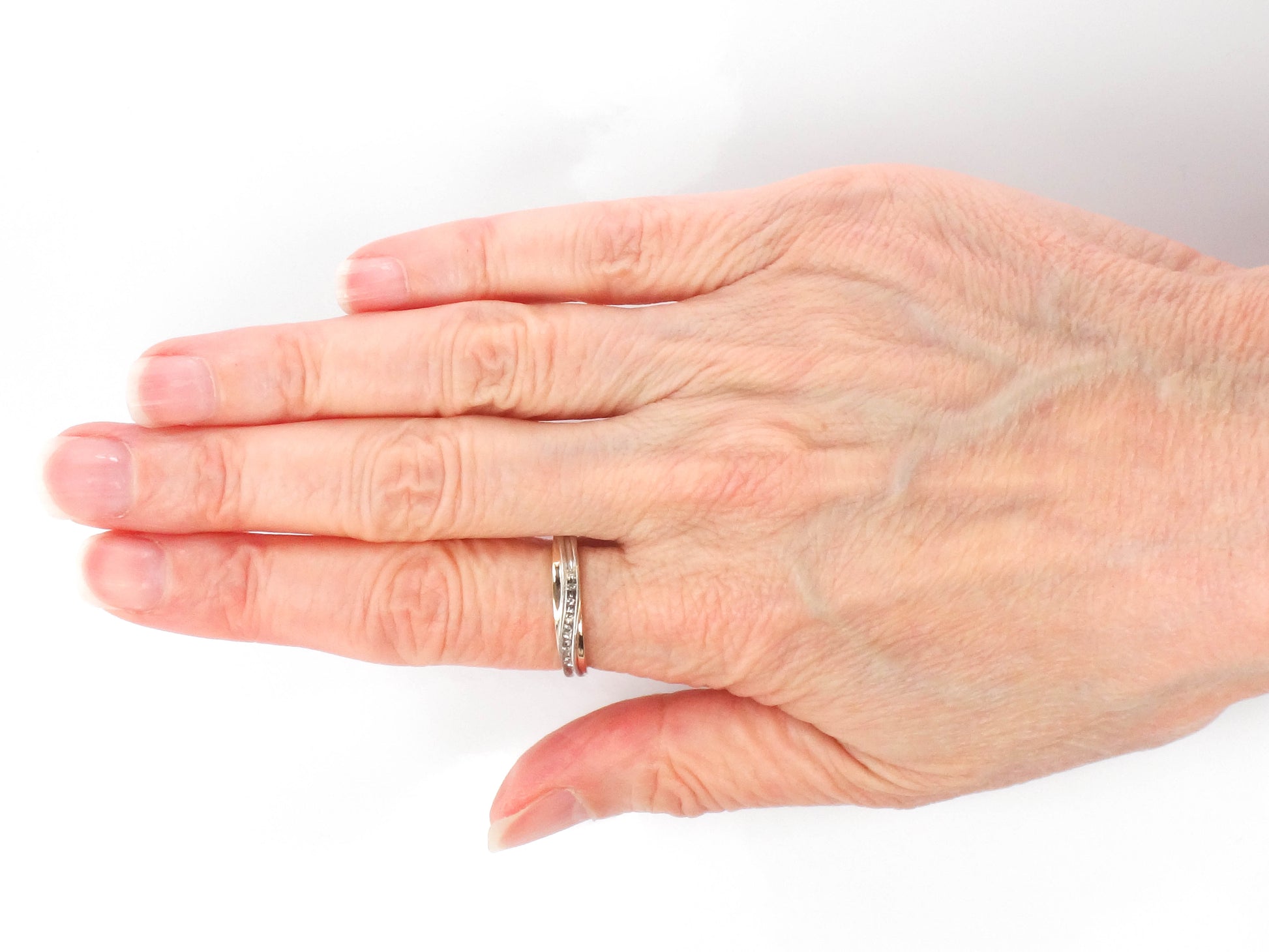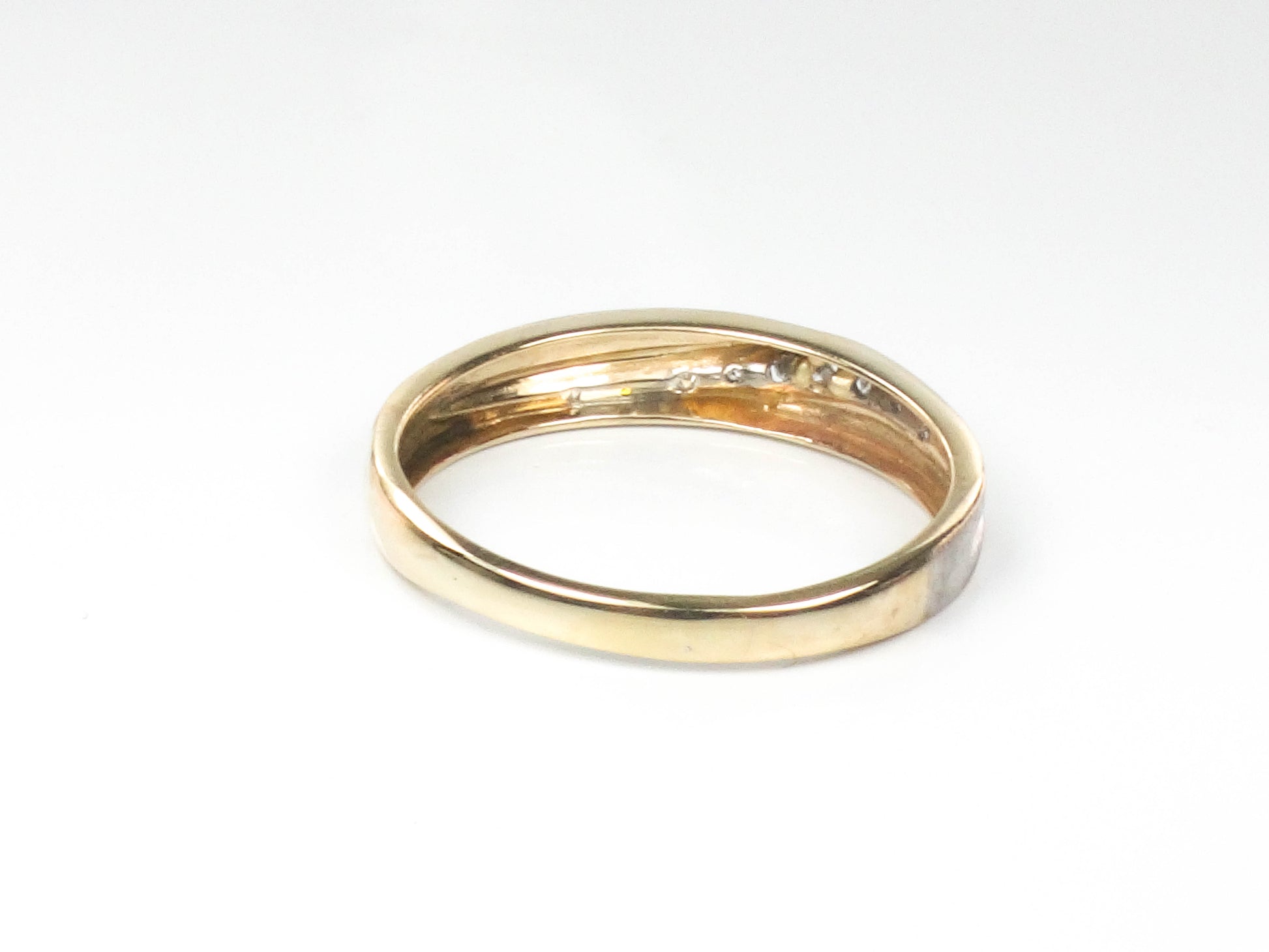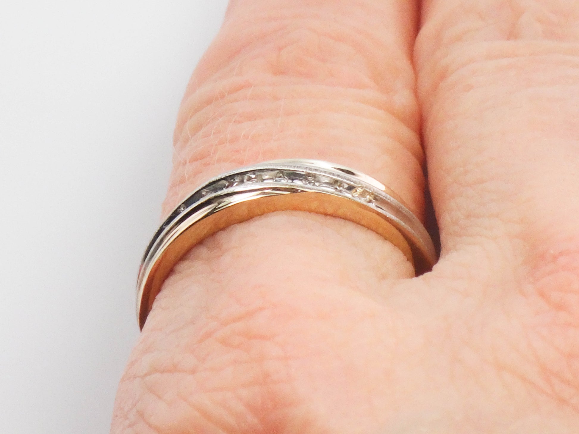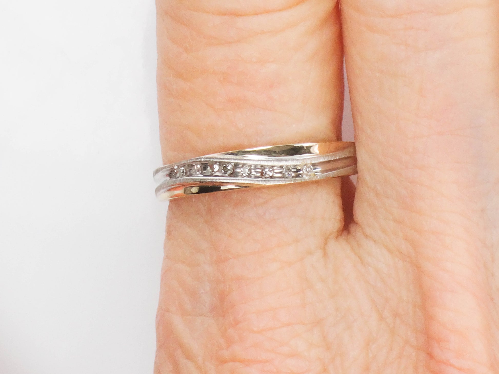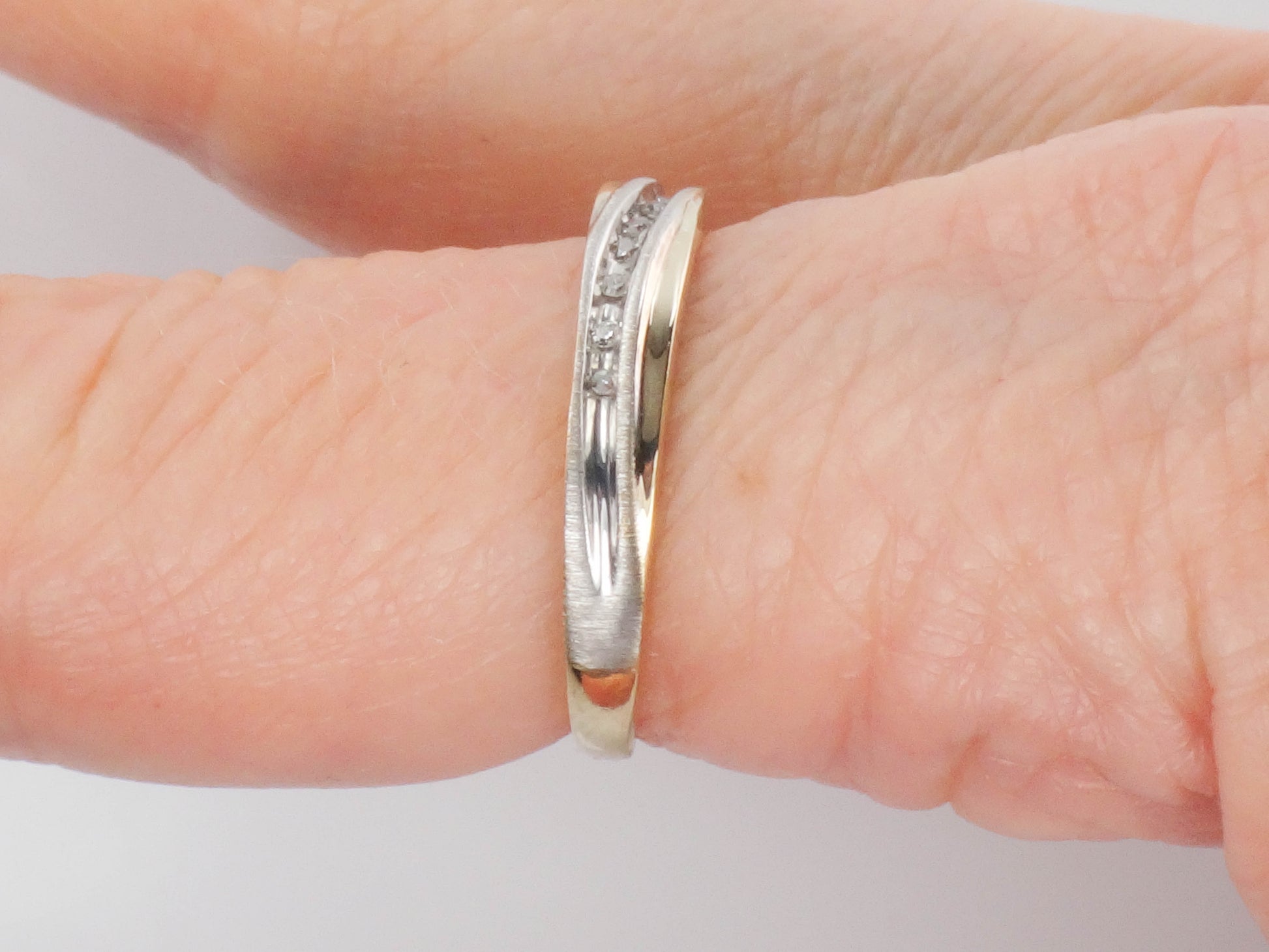 Vintage 10k Two Tone Gold Thin Diamond Wave Wedding Band, Stacking Ring, Size 6.75