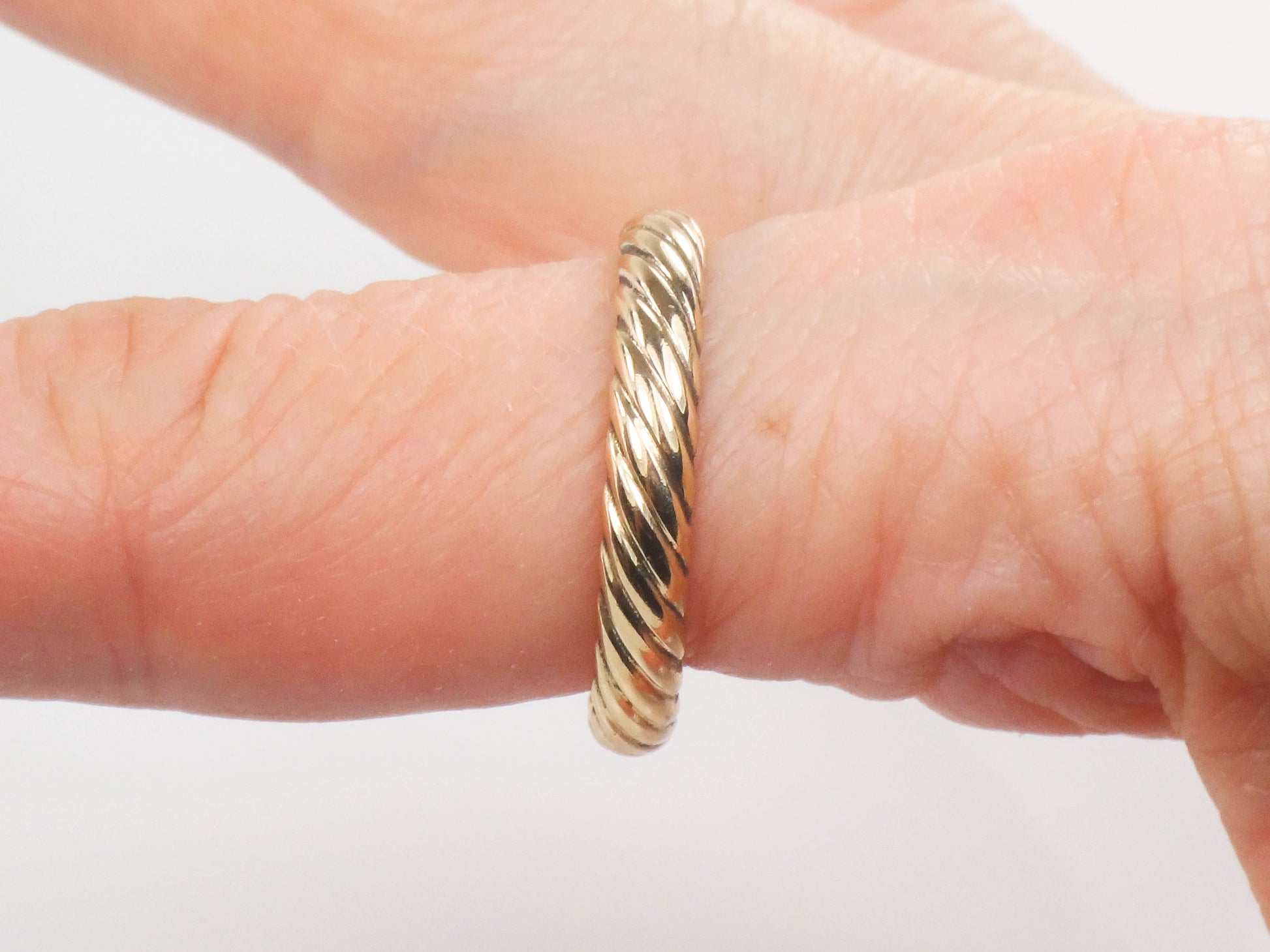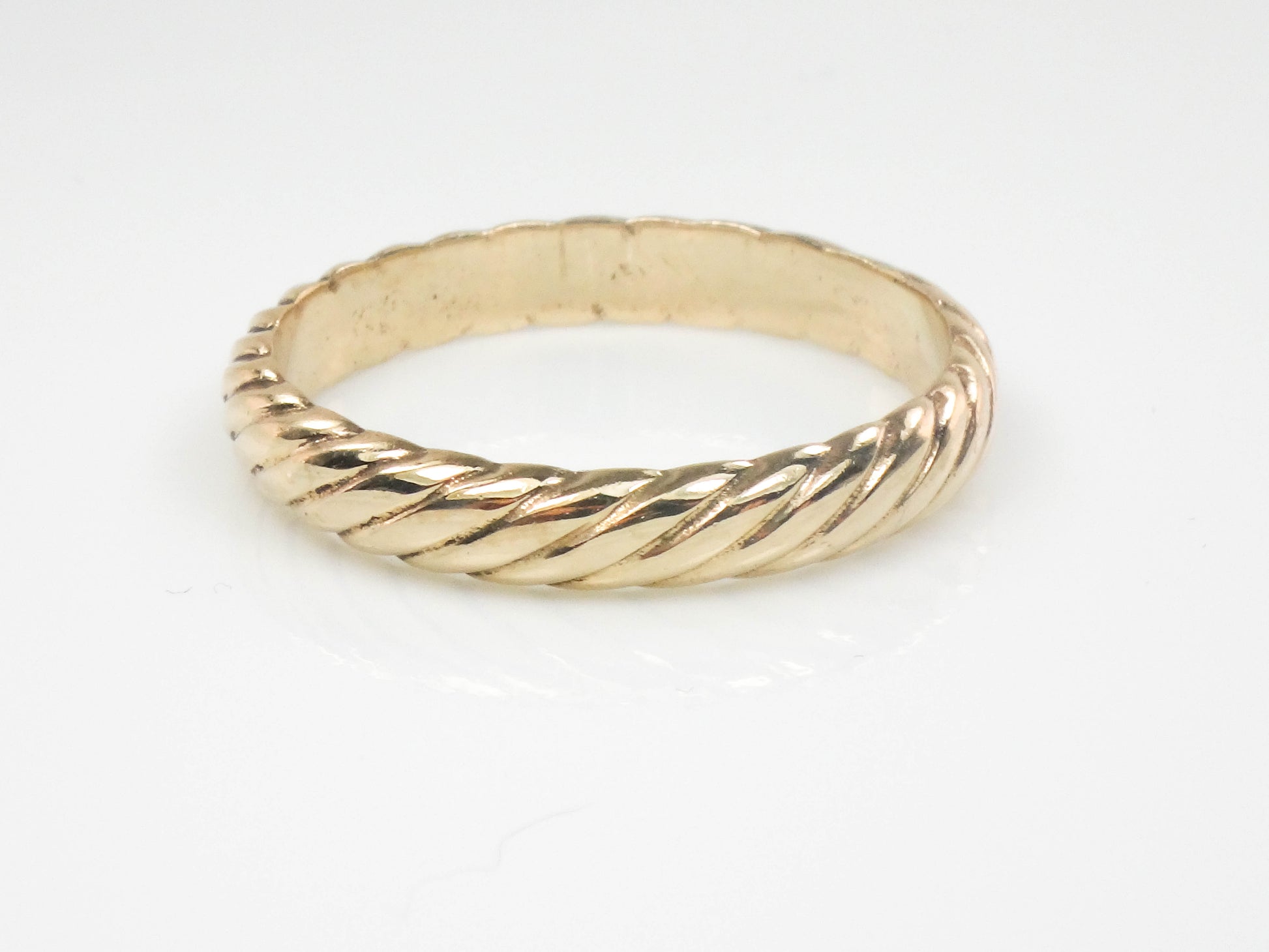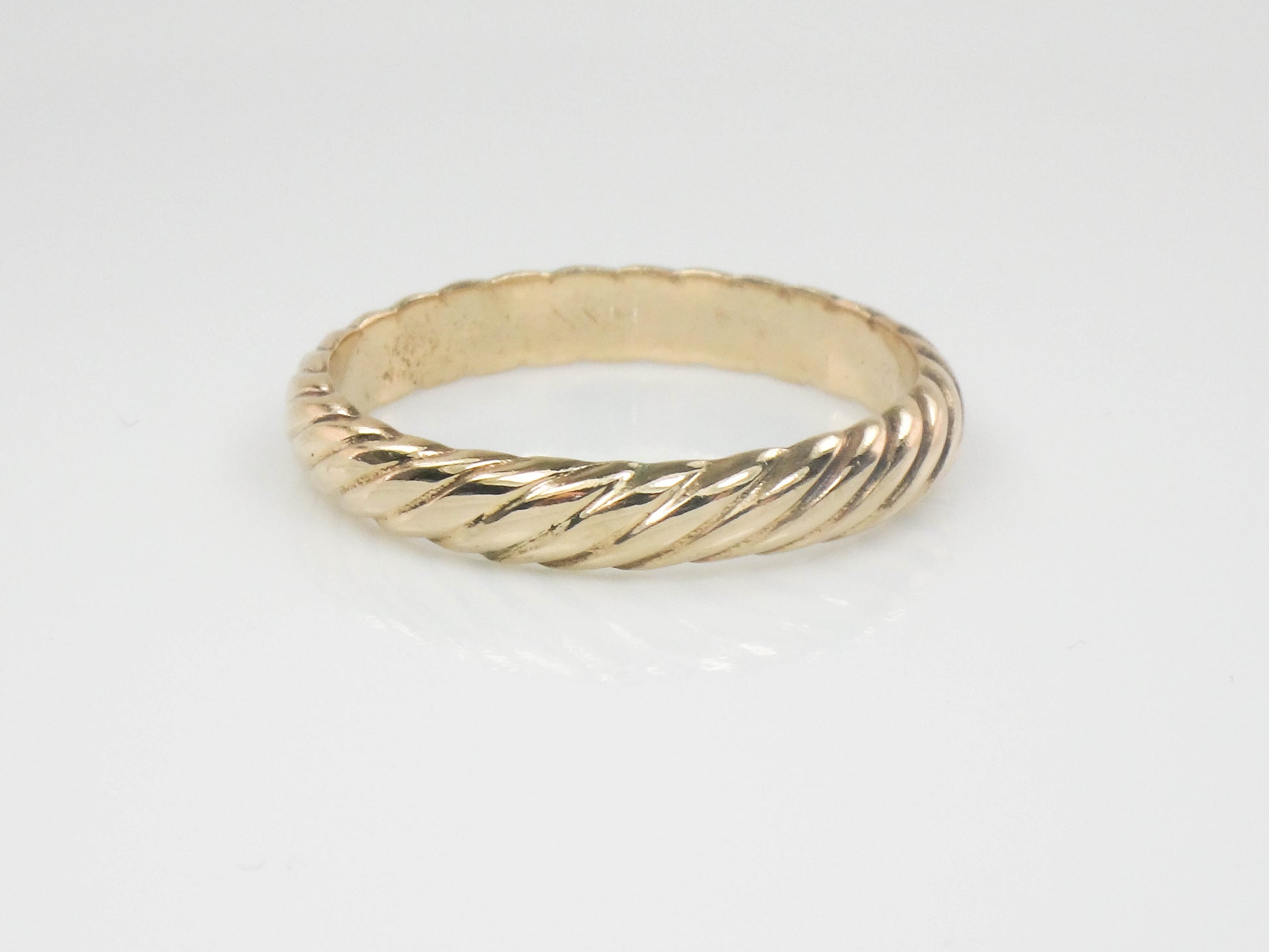 Vintage 14k Yellow Gold ArtCarved Wood Ribbed Twist Wedding Band, Solid Gold 3.7 MM Stacking Ring, Size 10