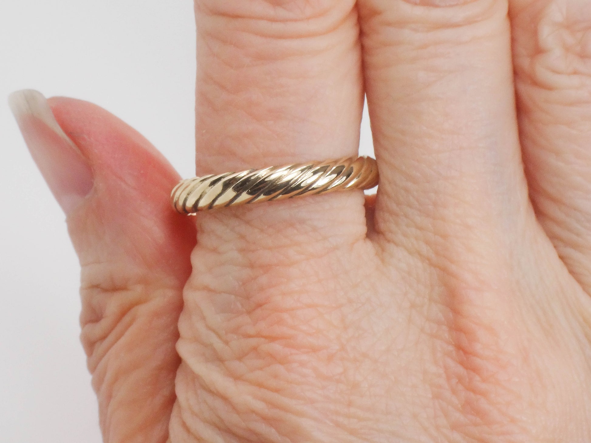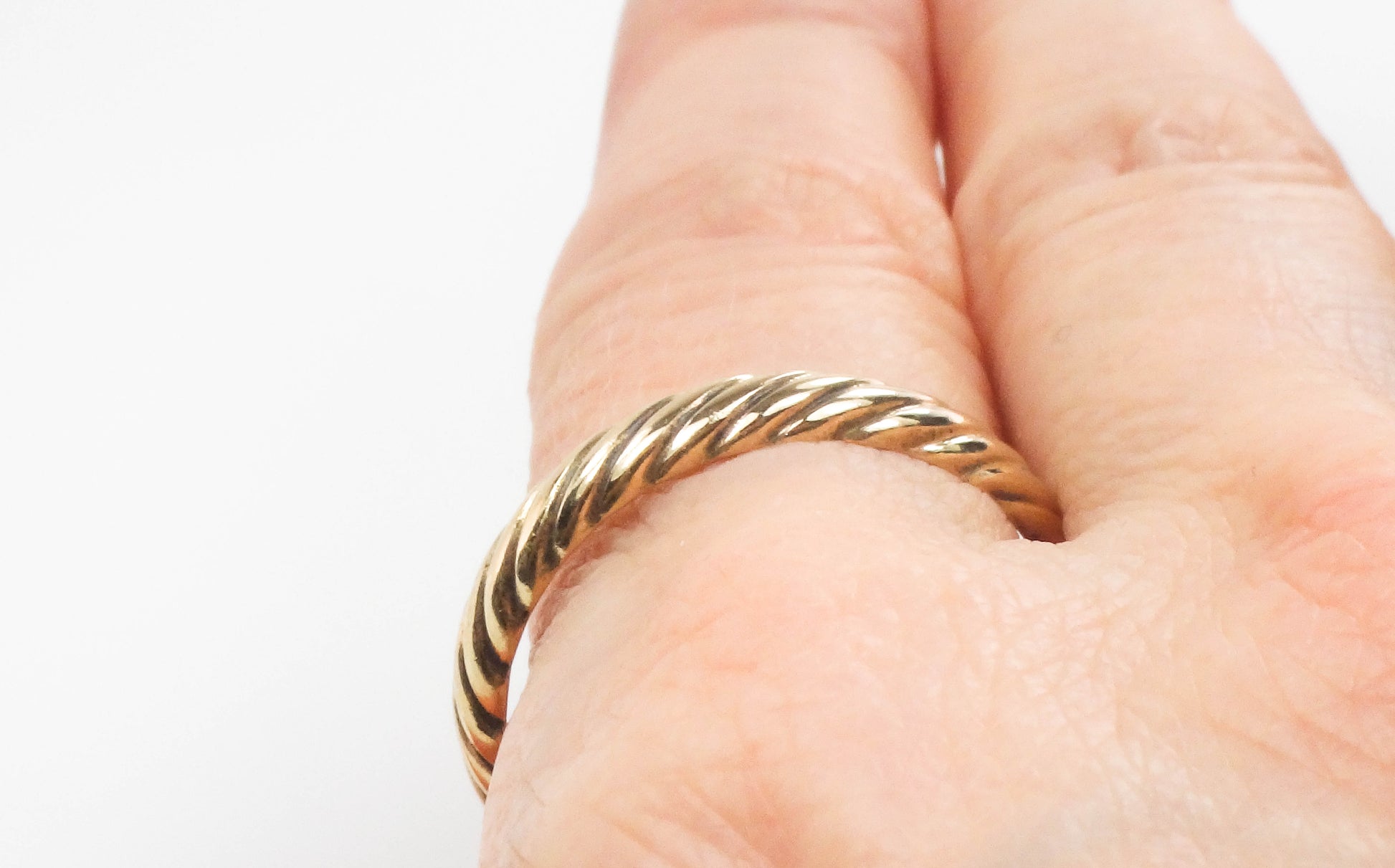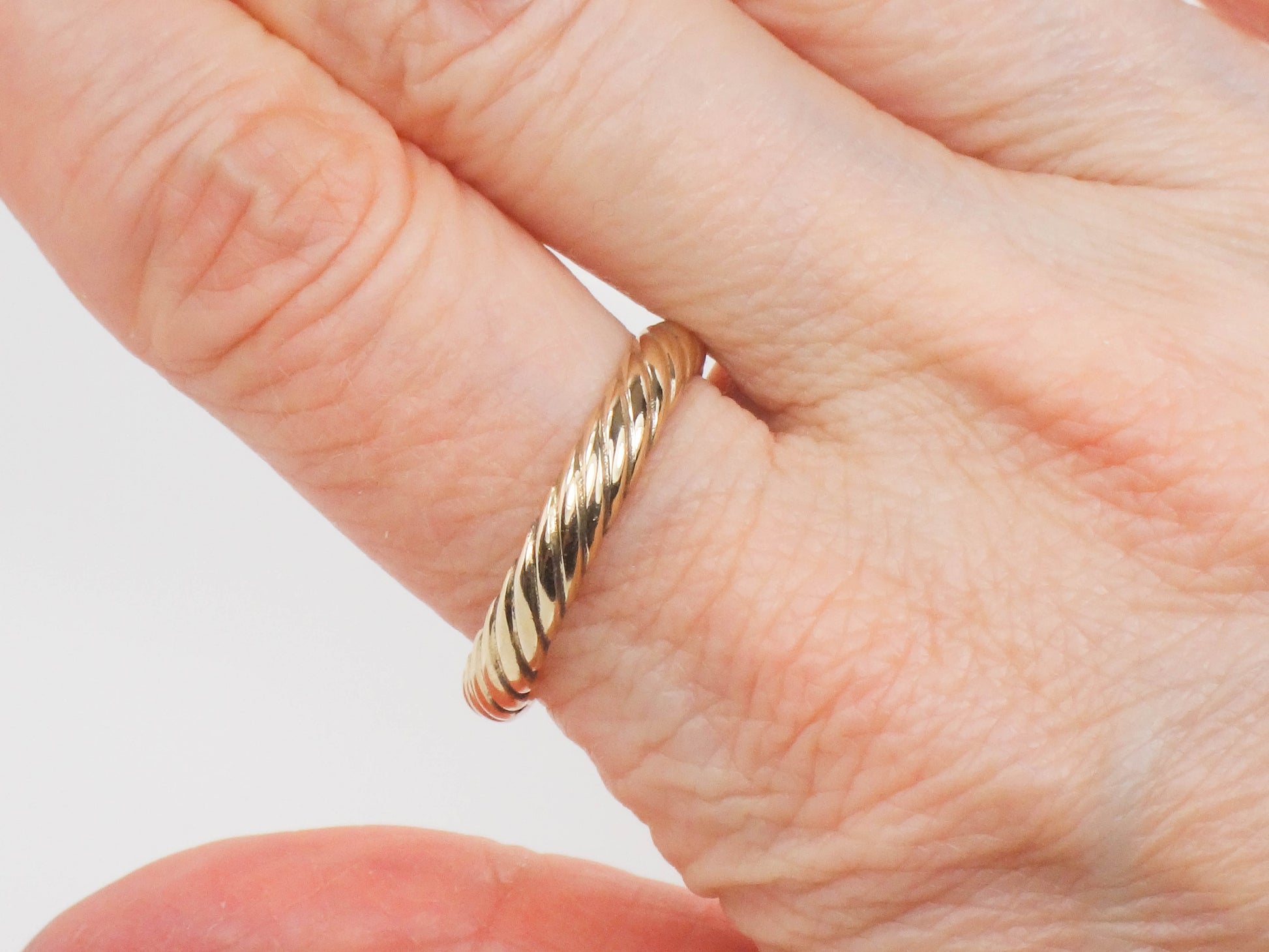 Vintage 14k Yellow Gold ArtCarved Wood Ribbed Twist Wedding Band, Solid Gold 3.7 MM Stacking Ring, Size 10