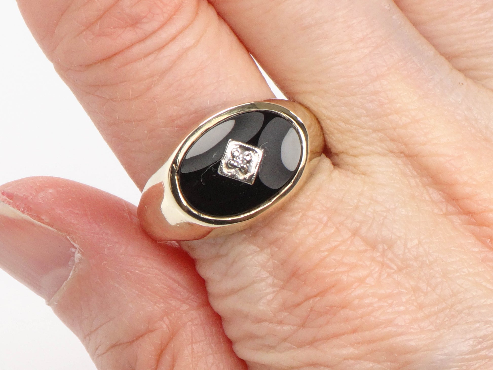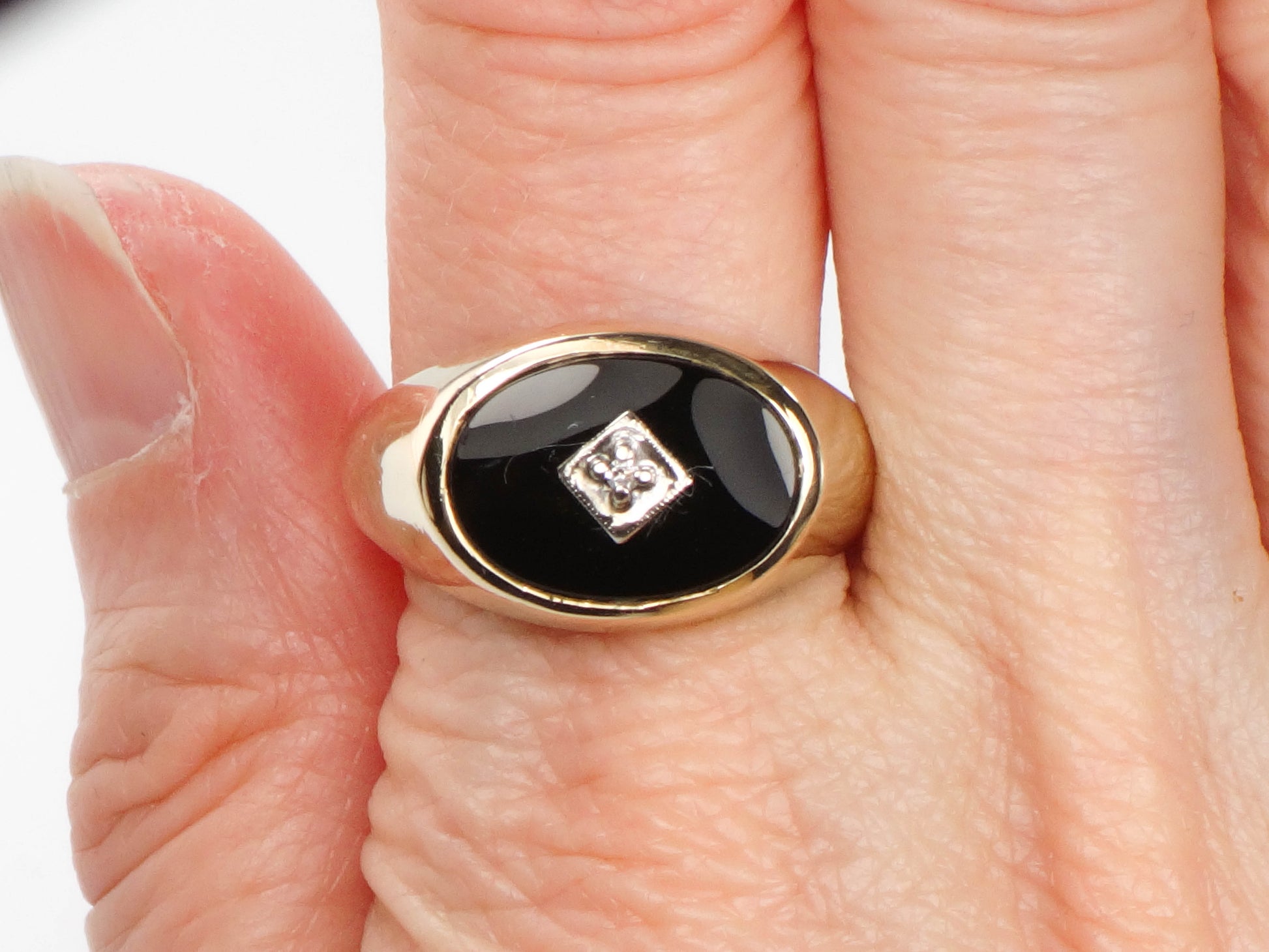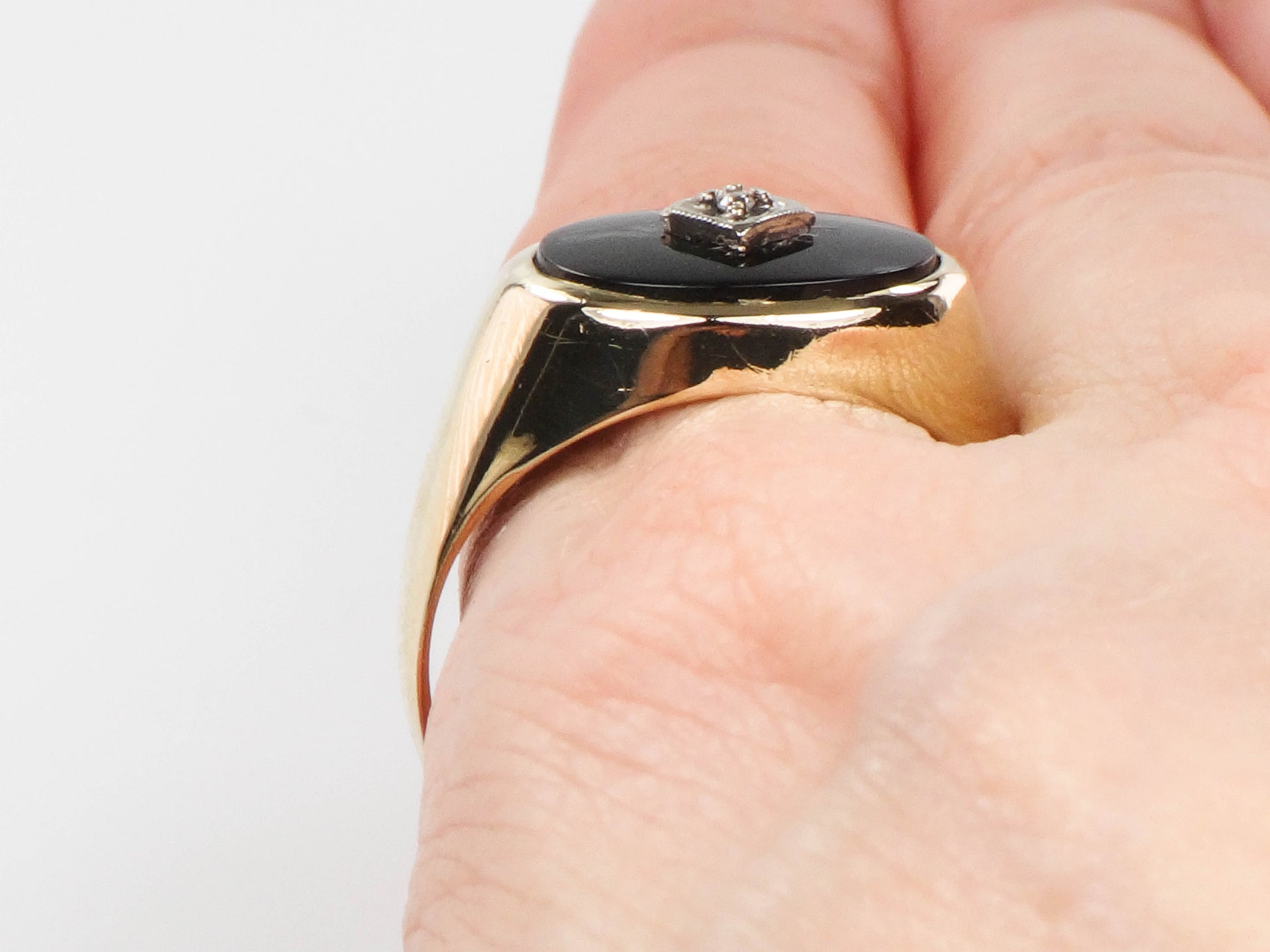 Vintage 14k Yellow Gold Black Onyx and Diamond Ring, Gold Men's Ring Size 11