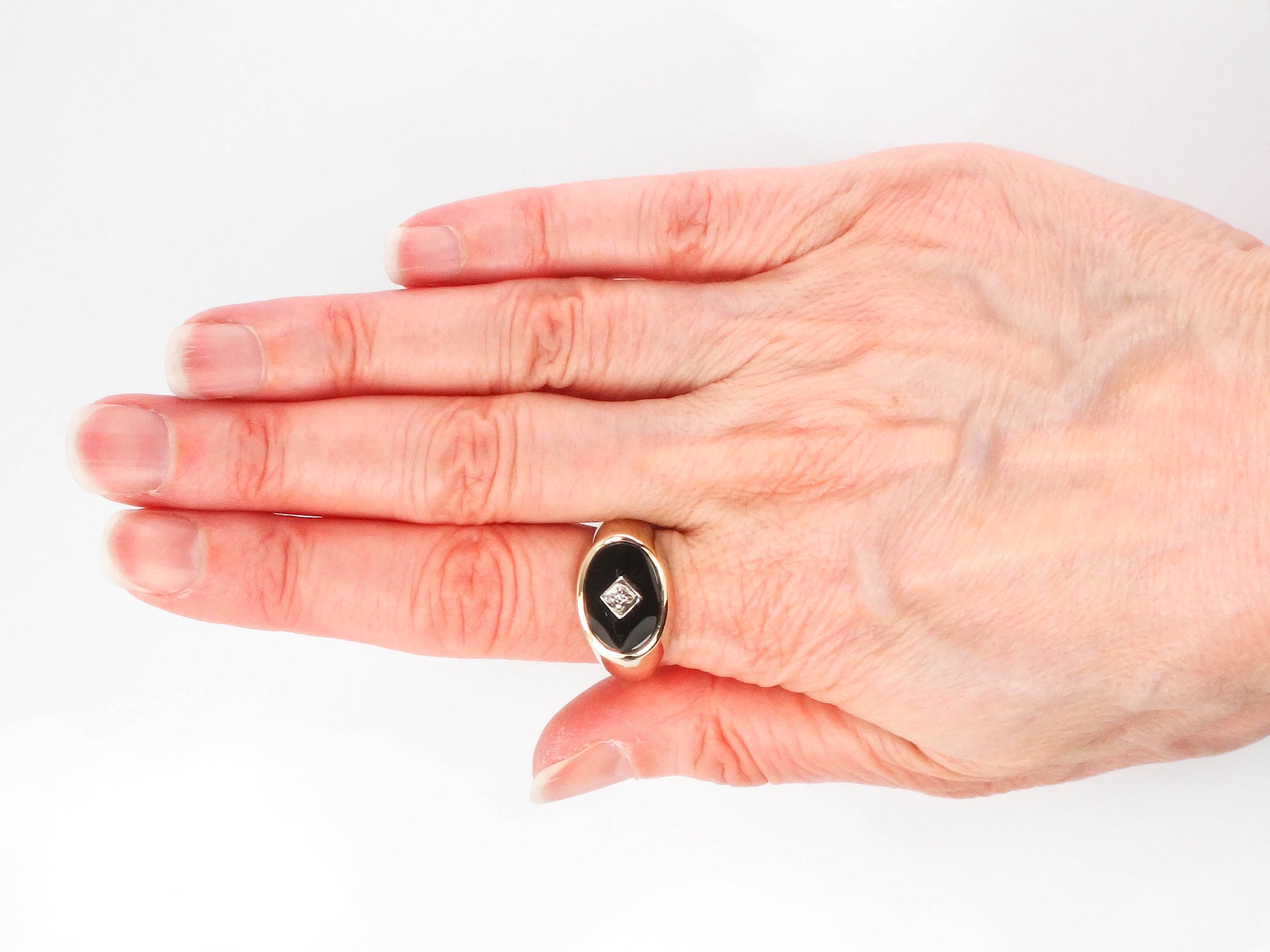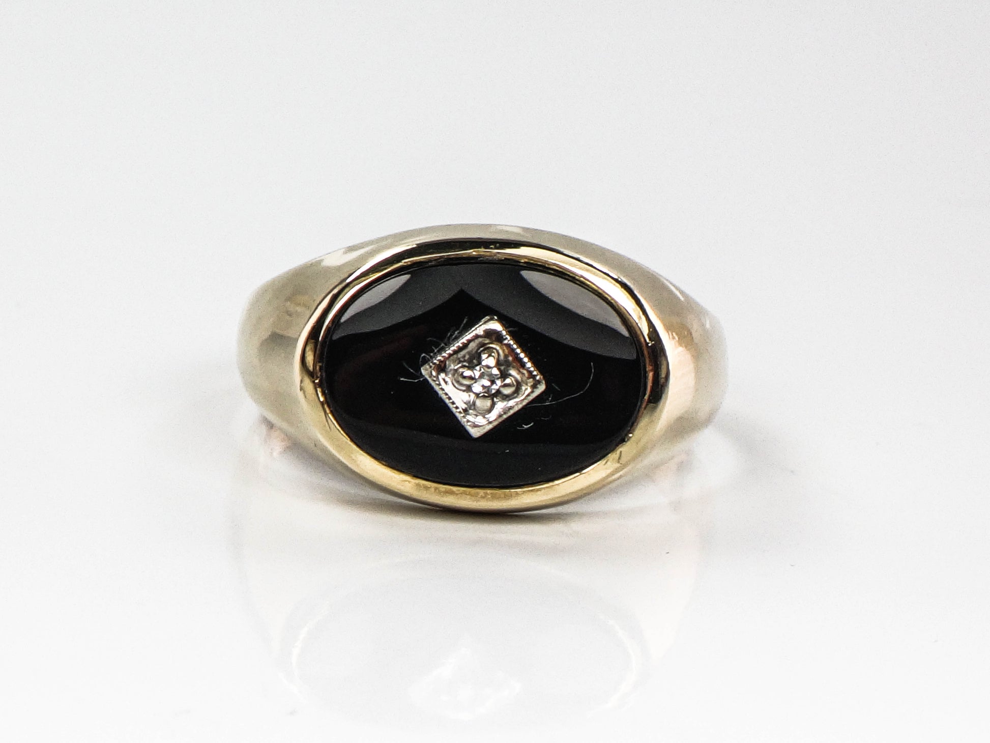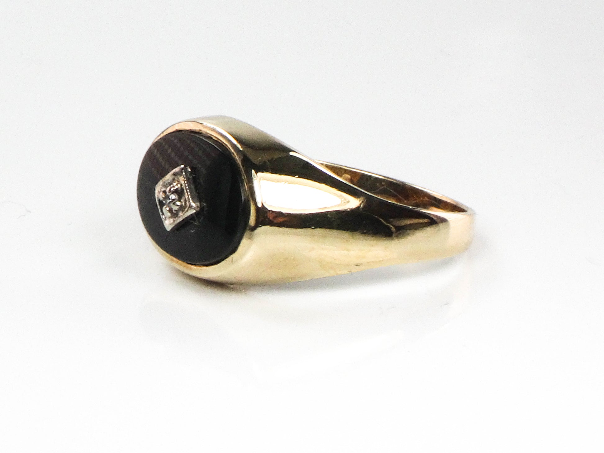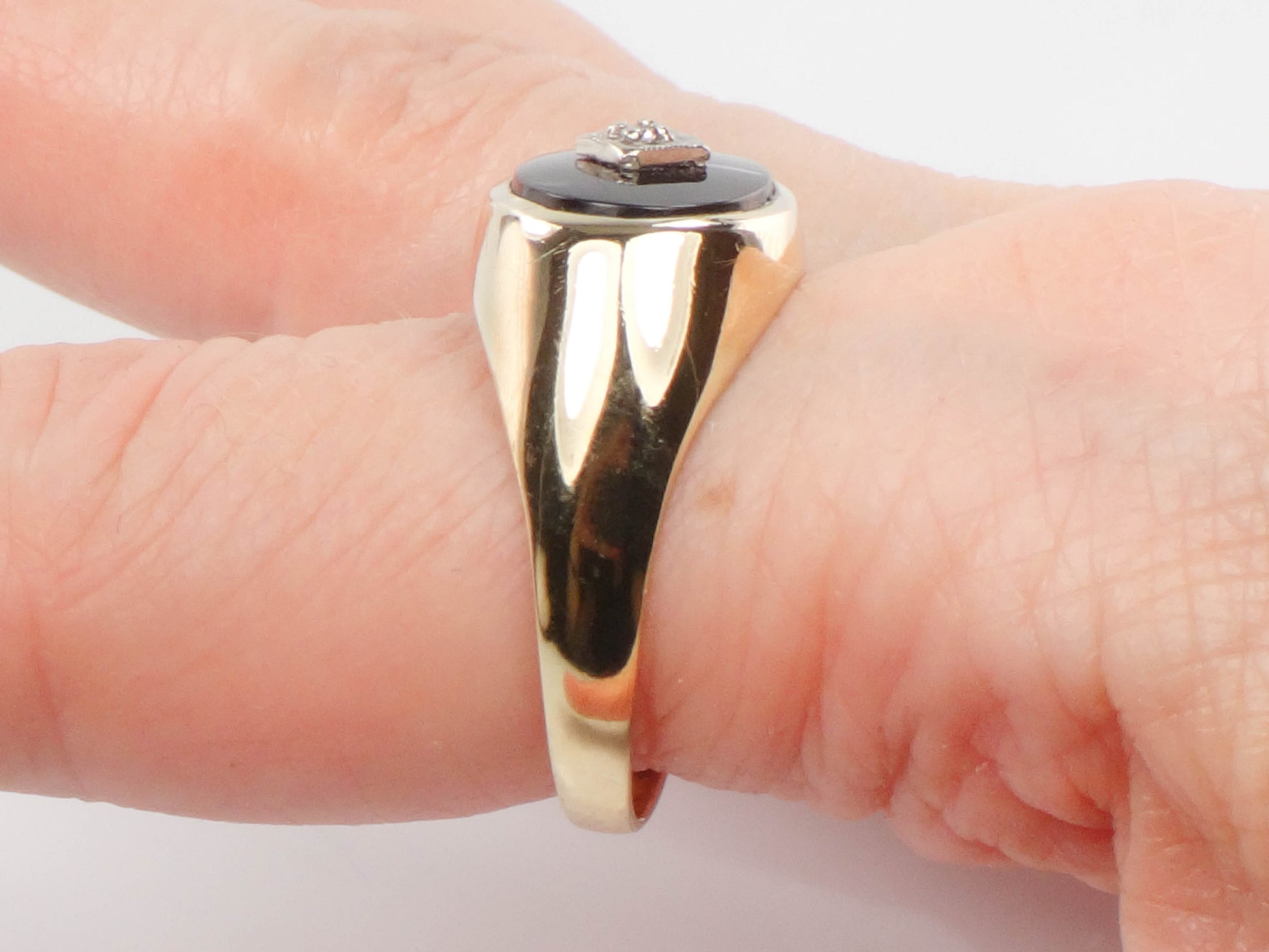 Vintage 14k Yellow Gold Black Onyx and Diamond Ring, Gold Men's Ring Size 11