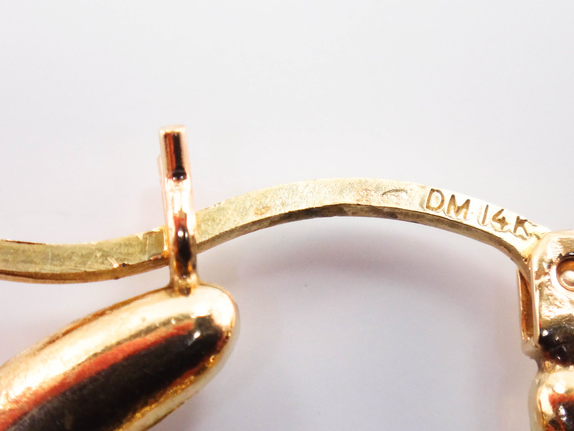 MARKED: 14k and tested for solid 14k gold hollow construction (not plated or filled), DM (a makers mark)