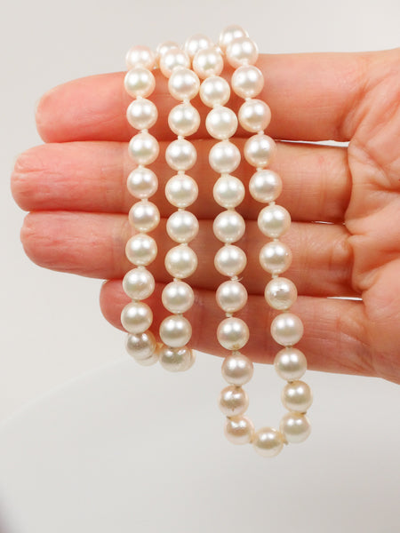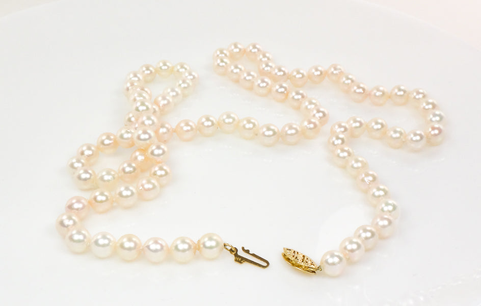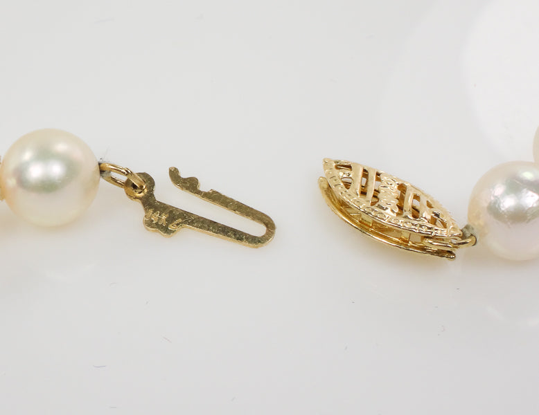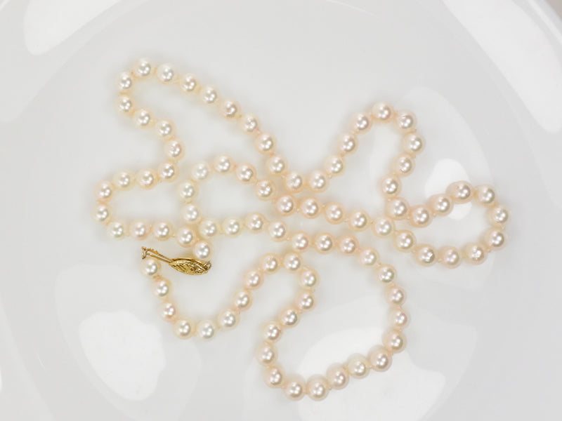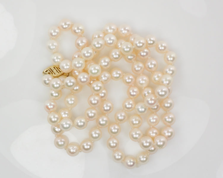 Vintage 14k Yellow Gold Cultured Pearl Necklace, 6.0 - 6.4 mm Strand of Pearls, Bridal Necklace 24"