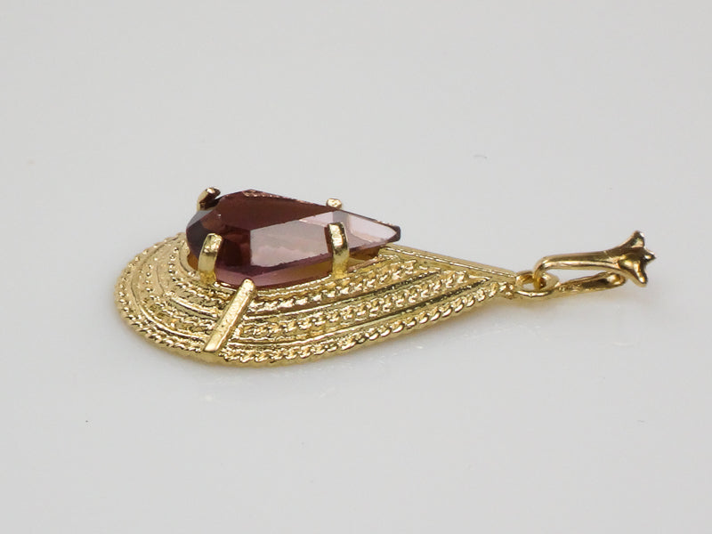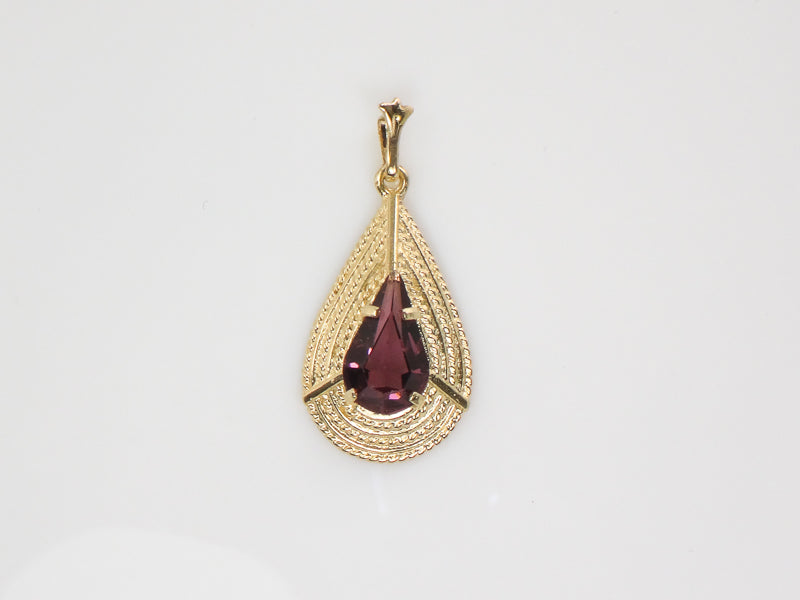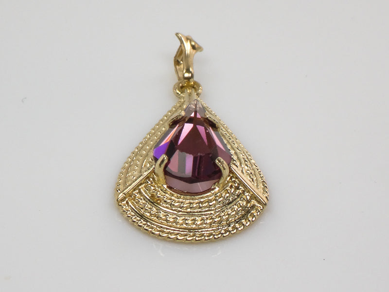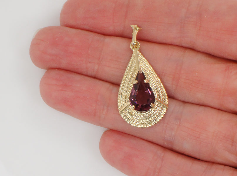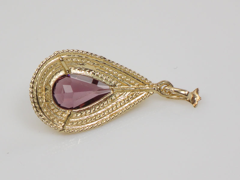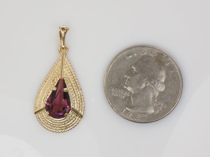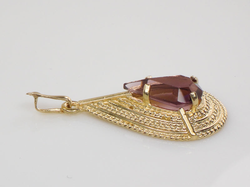 Vintage 14k Yellow Gold Purple Glass Teardrop Shaped Pendant Circa 1970's