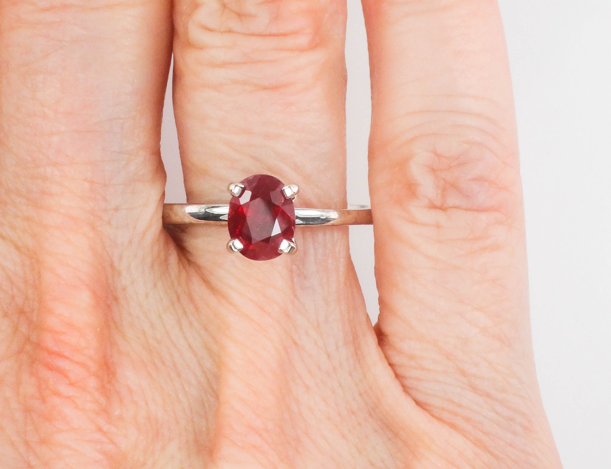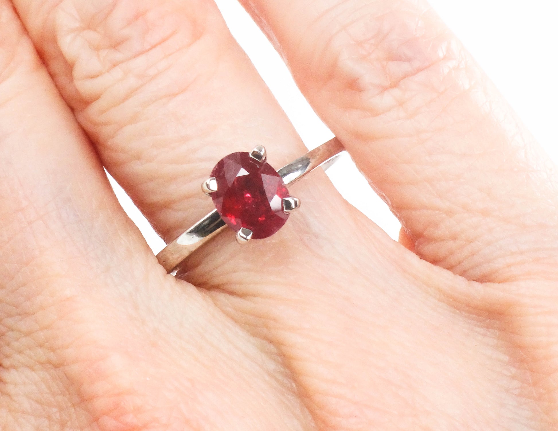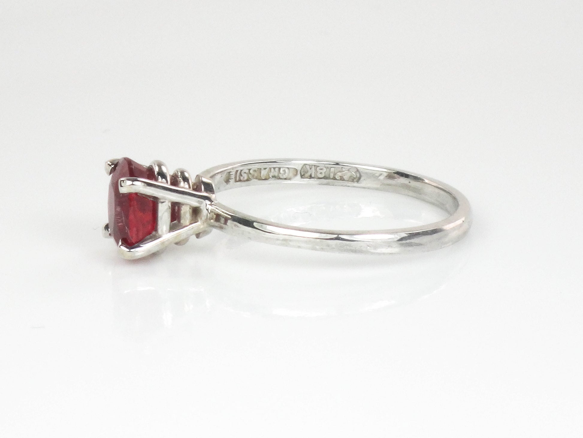 Estate 18k White Gold Oval Cut Ruby Solitaire Ring, Approx. 1.5 Carat Ruby Engagement Ring Size 9