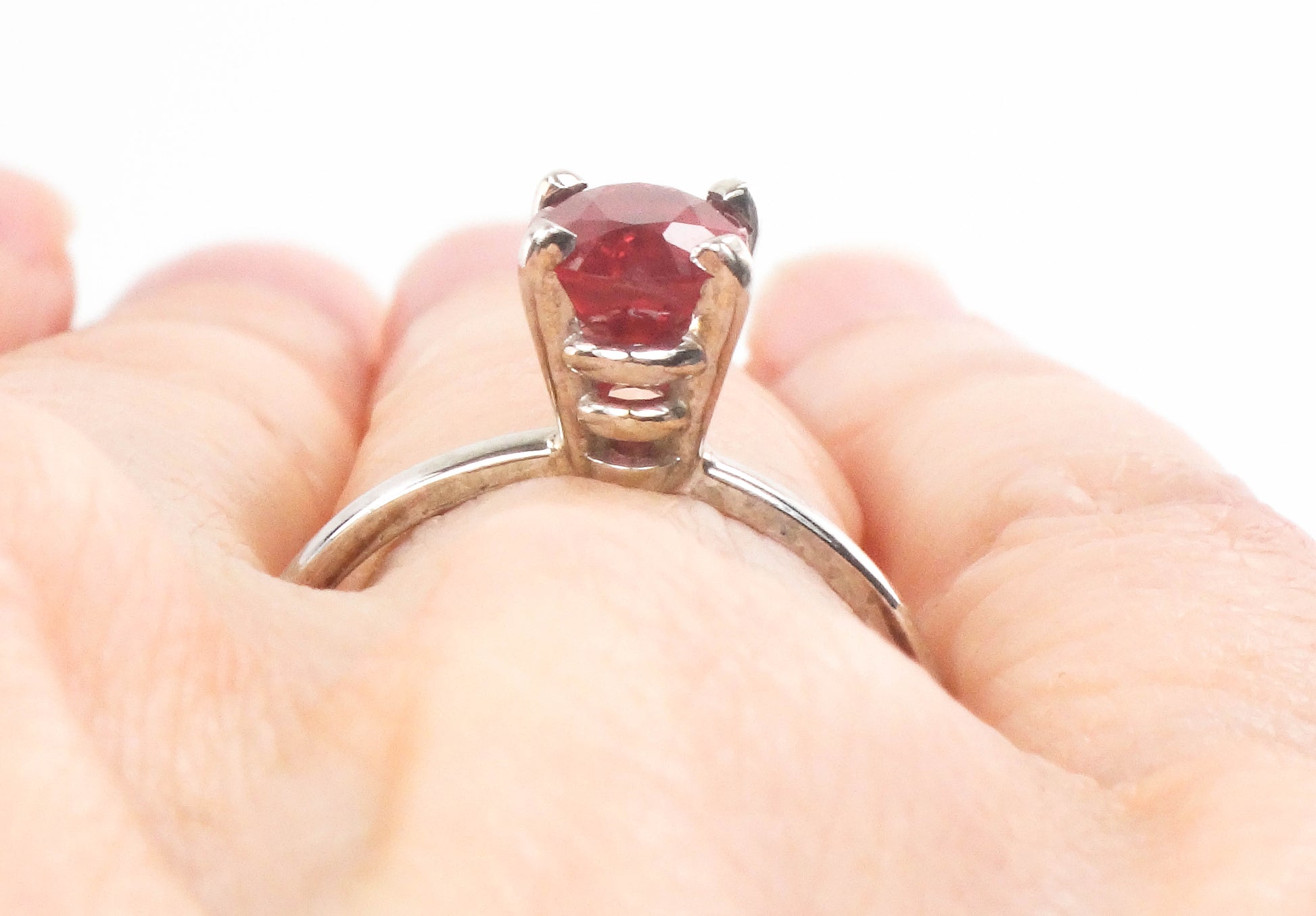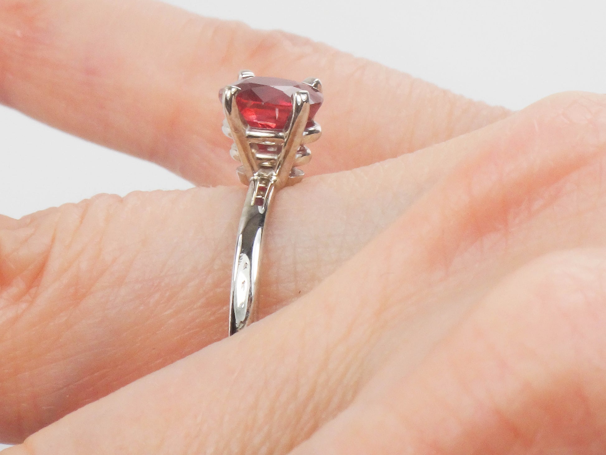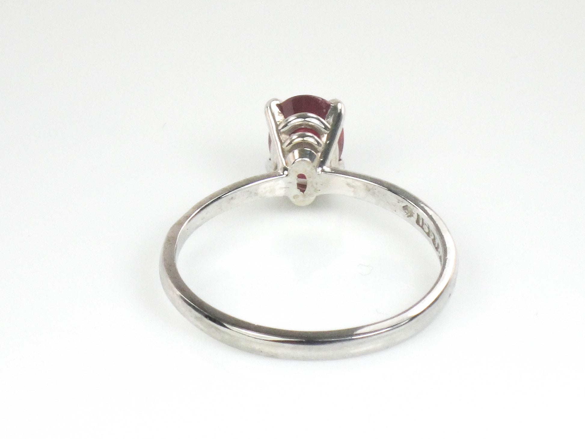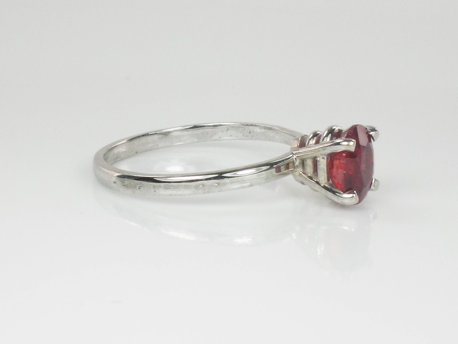 Estate 18k White Gold Oval Cut Ruby Solitaire Ring, Approx. 1.5 Carat Ruby Engagement Ring Size 9