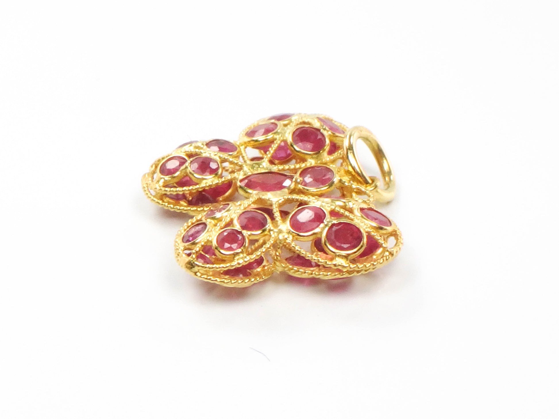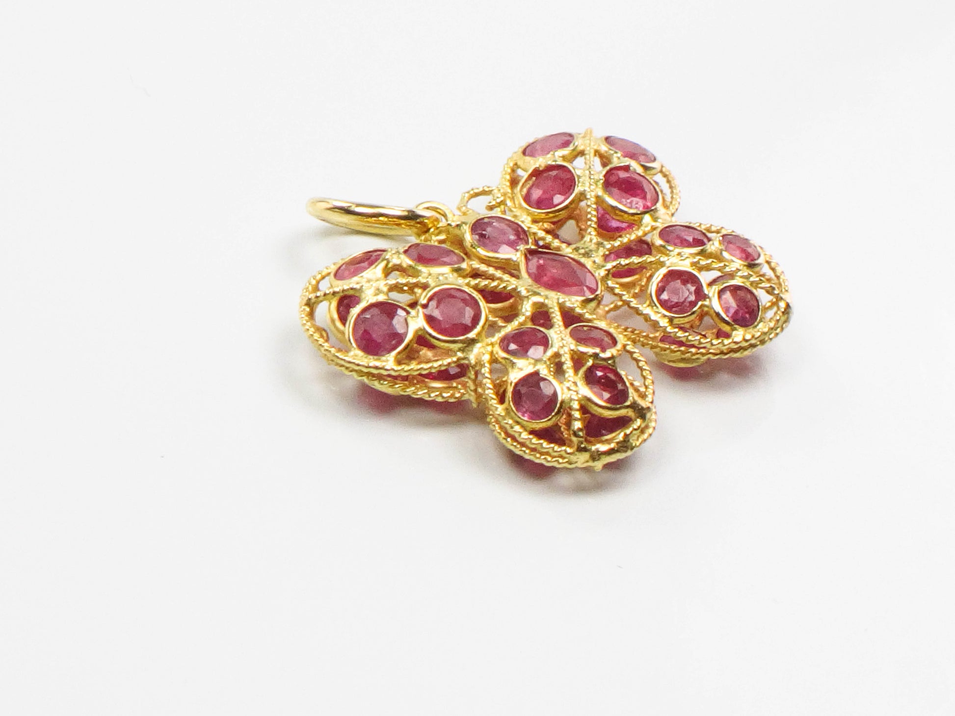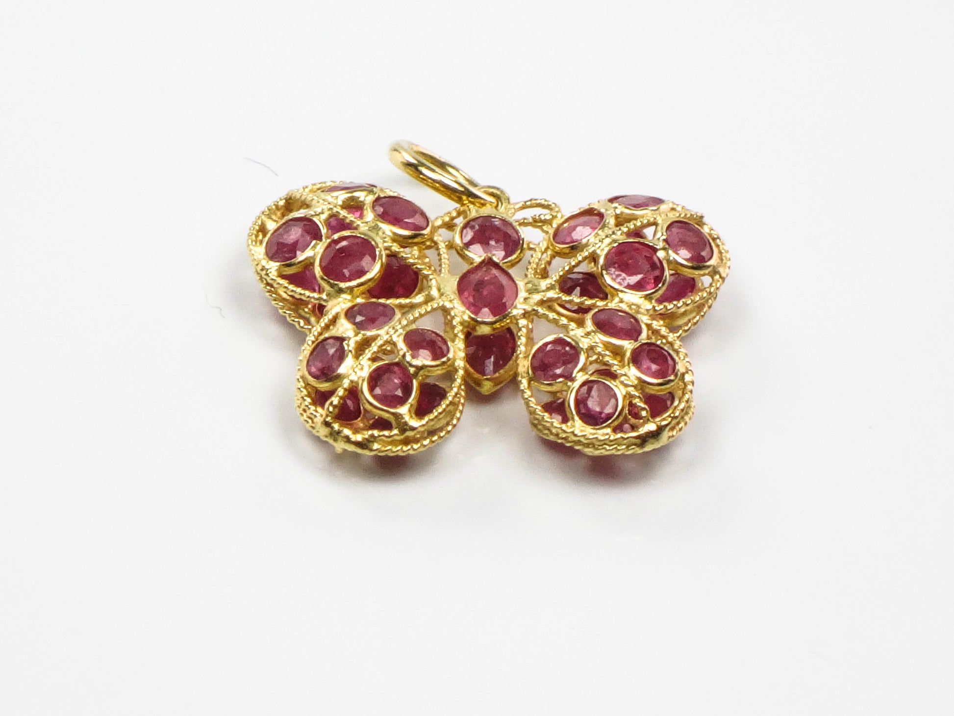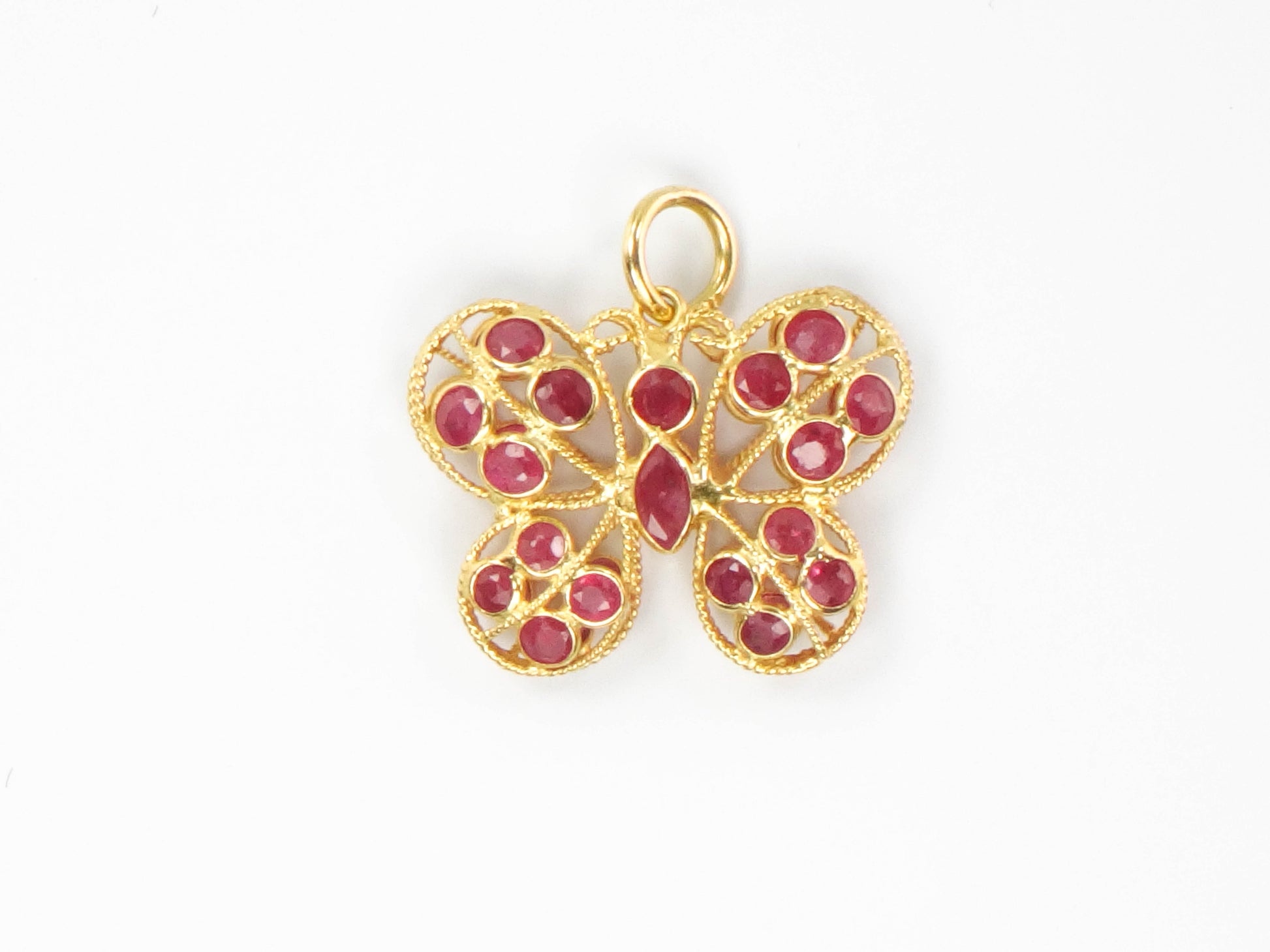 Vintage 18k Yellow Gold Natural Ruby Butterfly Pendant Charm, July Birthstone Gift