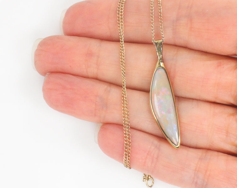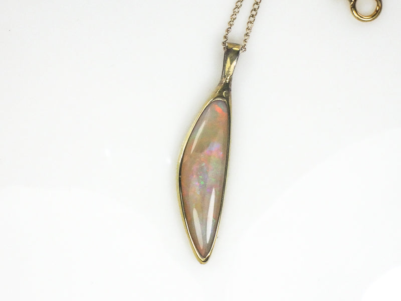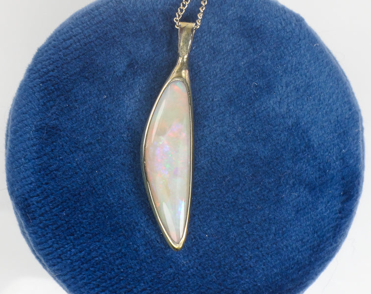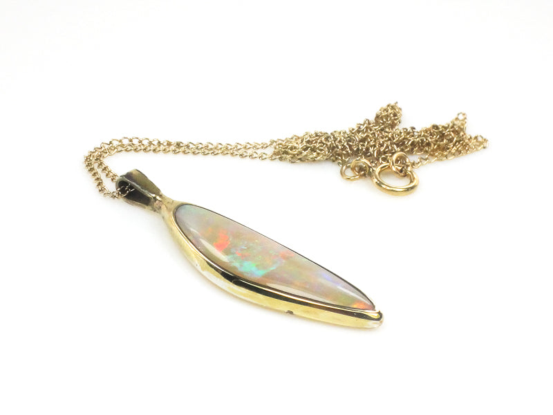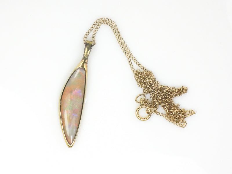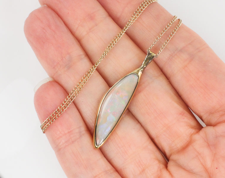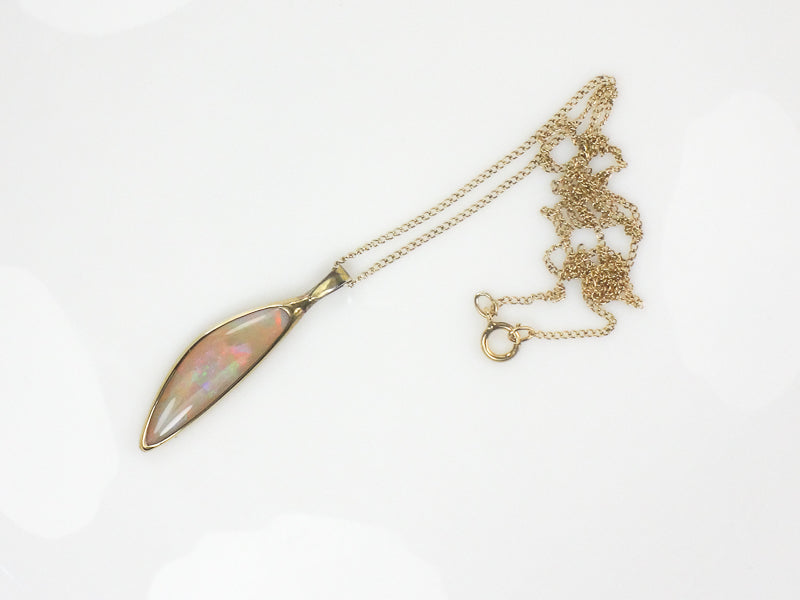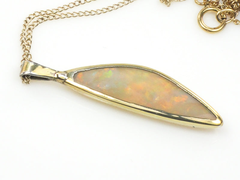 Vintage Gold Filled Large Natural Opal Pendant Necklace 18"