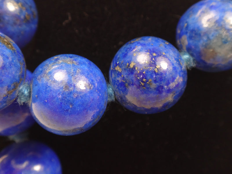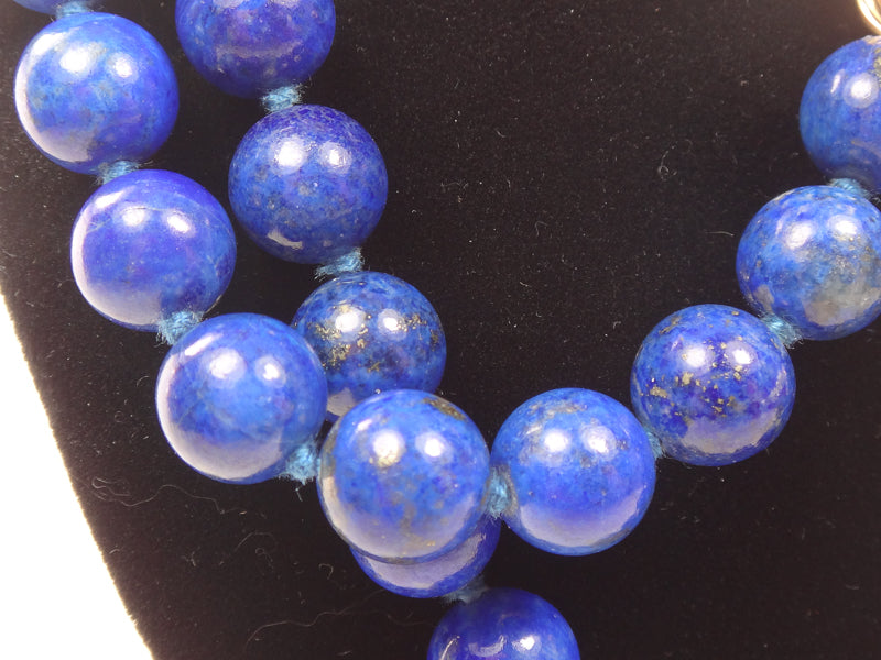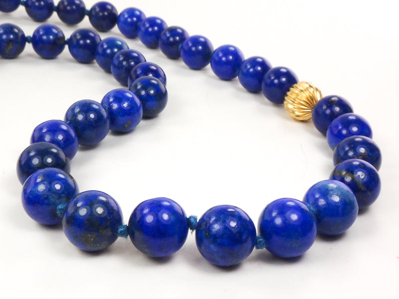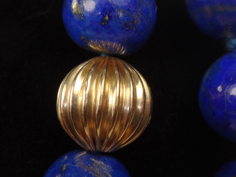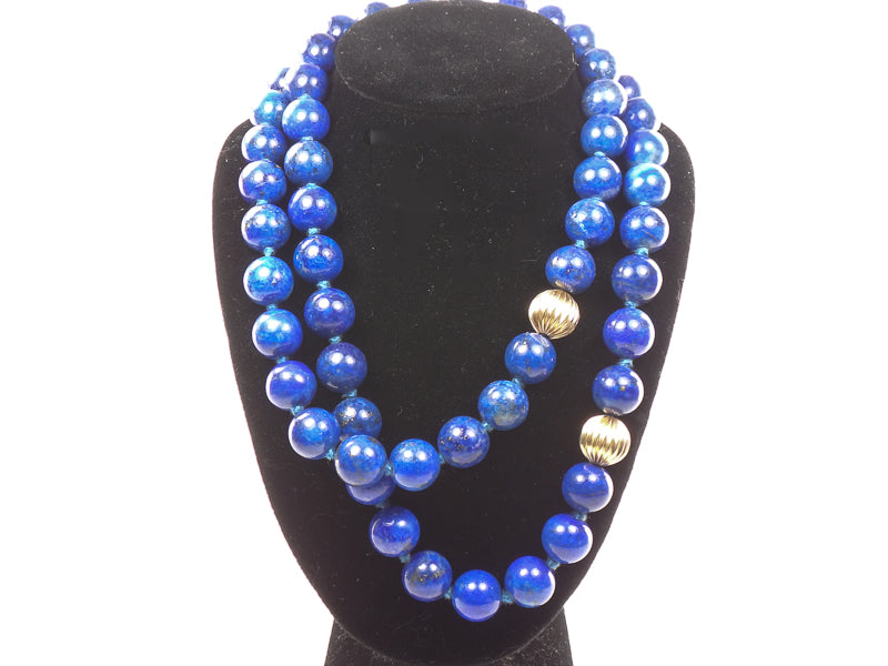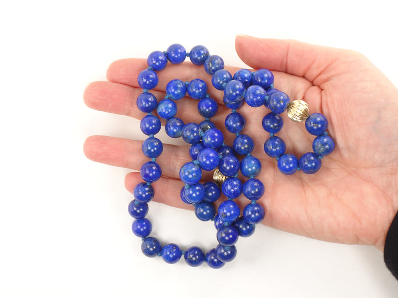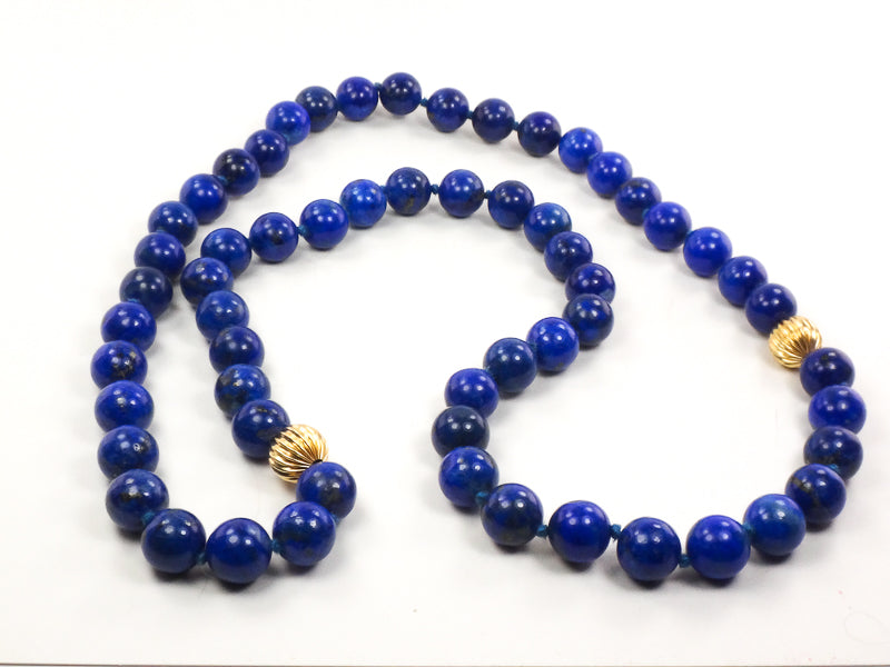 Vintage Long 10k Yellow Gold and Lapis Lazuli Bead Necklace 10 MM 27"