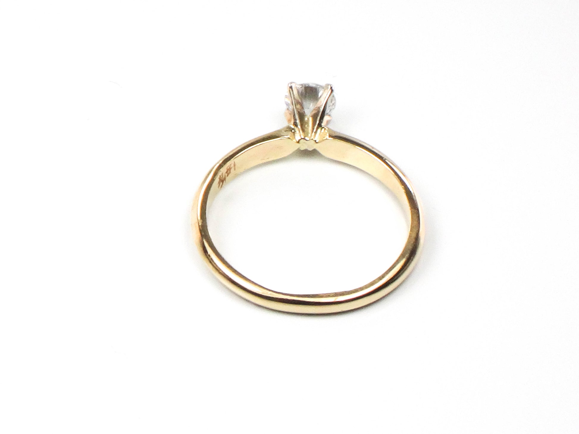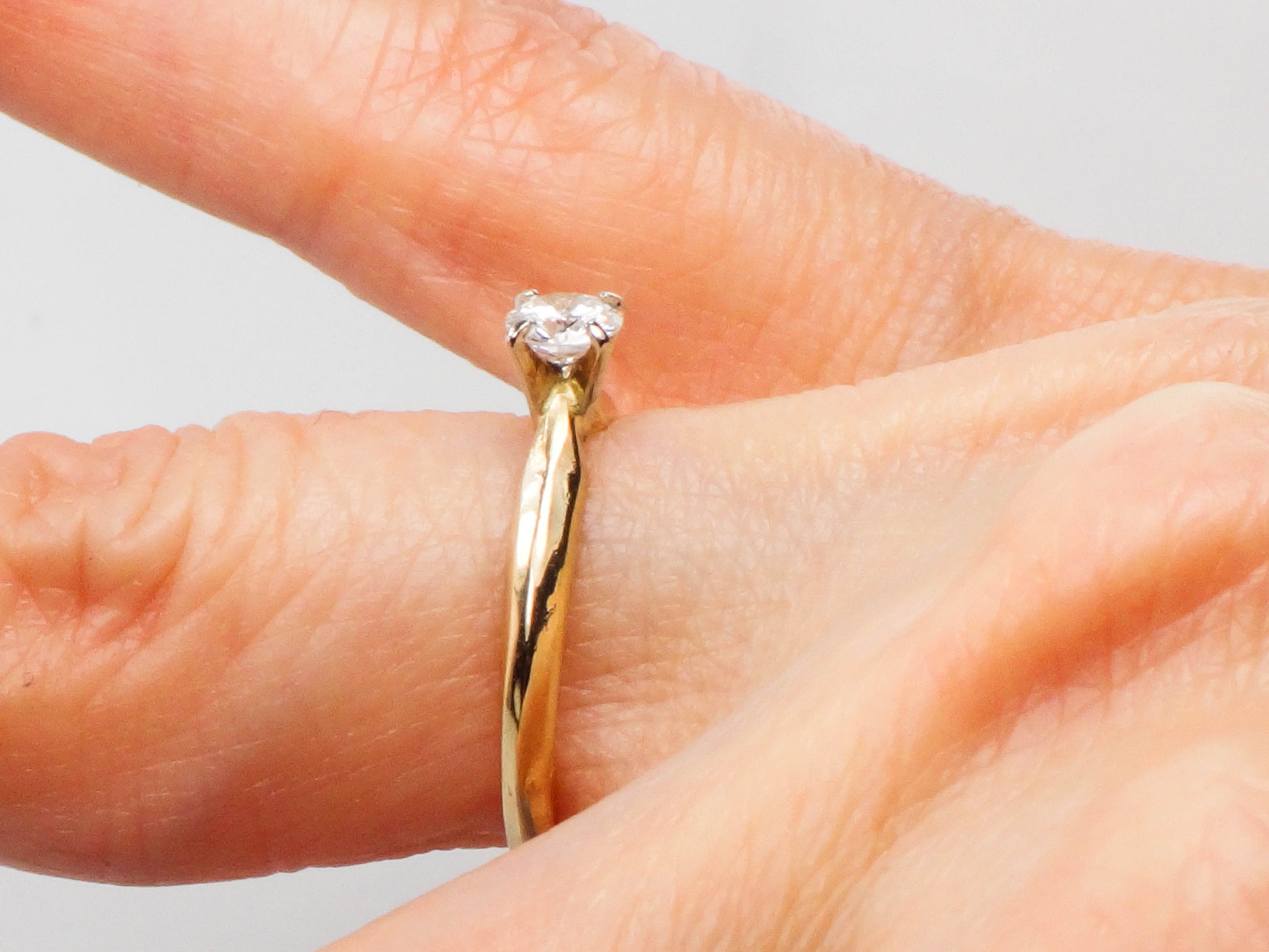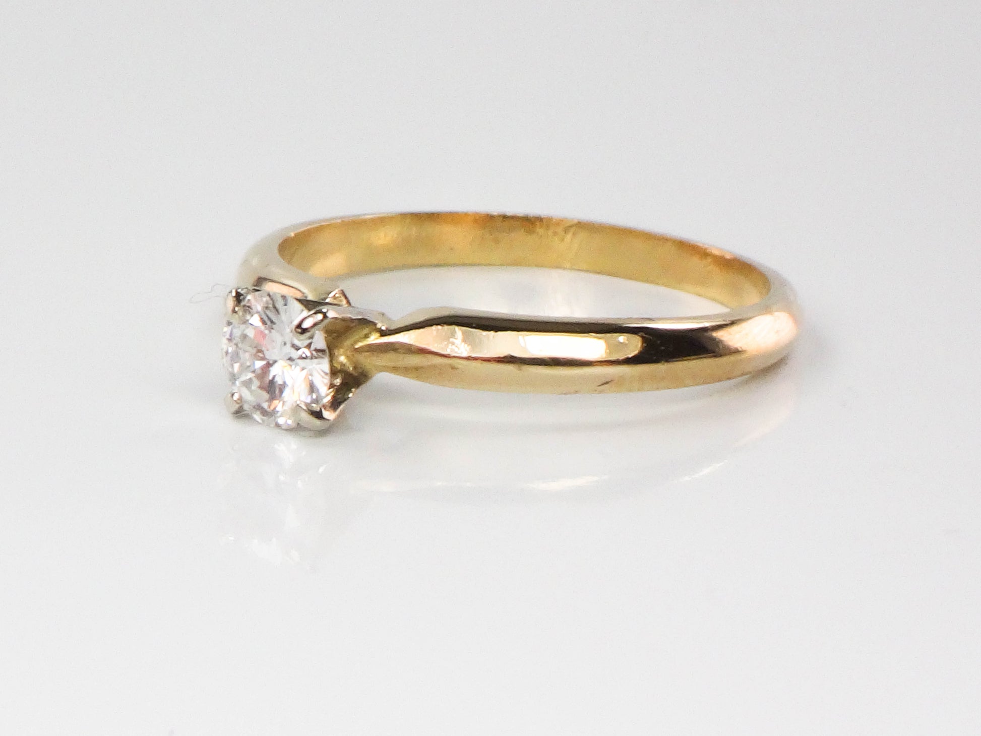 Vintage Round Natural Diamond Engagement Ring, 14k Yellow Gold Solitaire Diamond Ring, Approximately .30 CTS, Size 6
