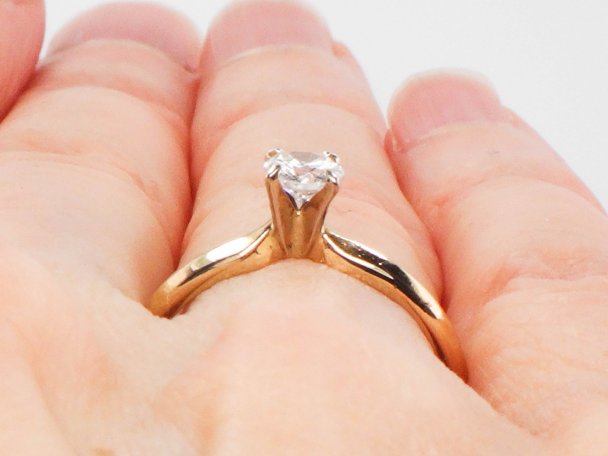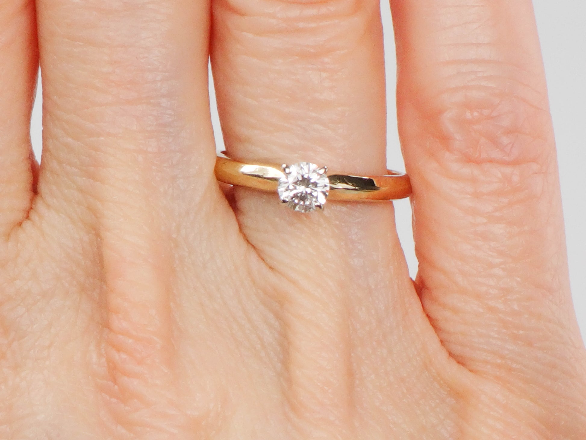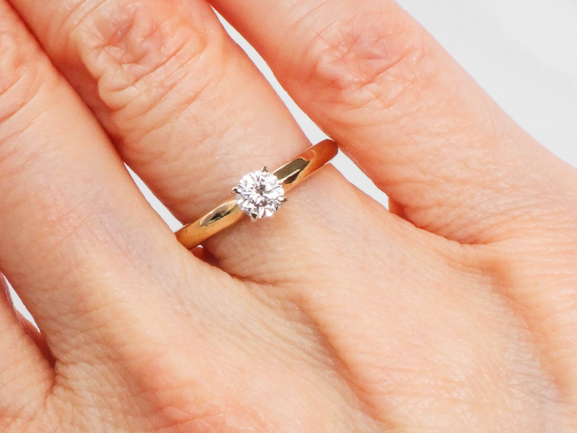 Vintage Round Natural Diamond Engagement Ring, 14k Yellow Gold Solitaire Diamond Ring, Approximately .30 CTS, Size 6
