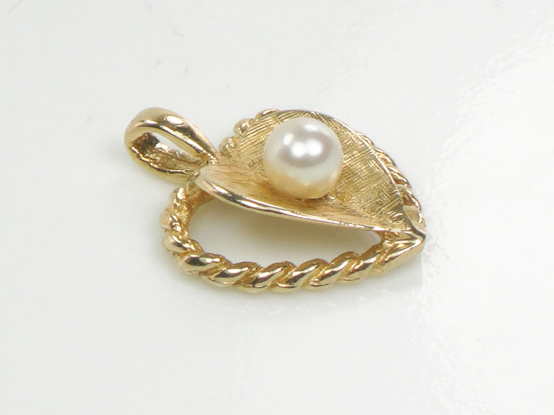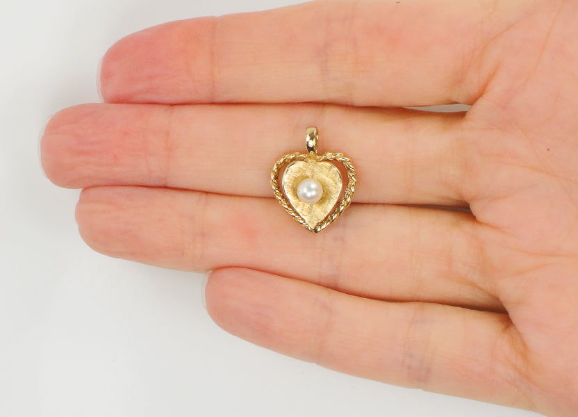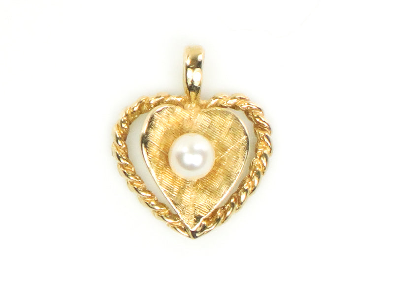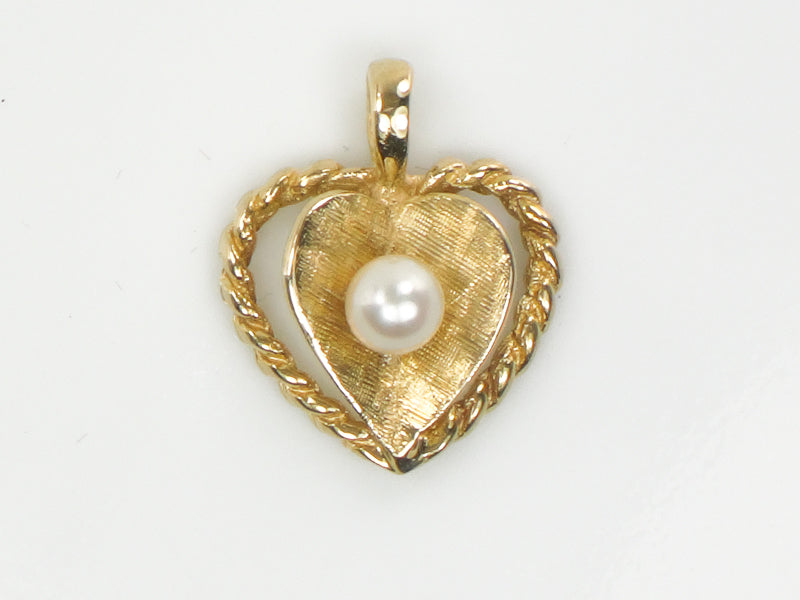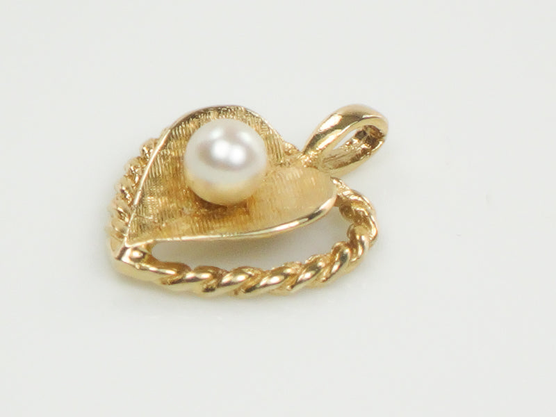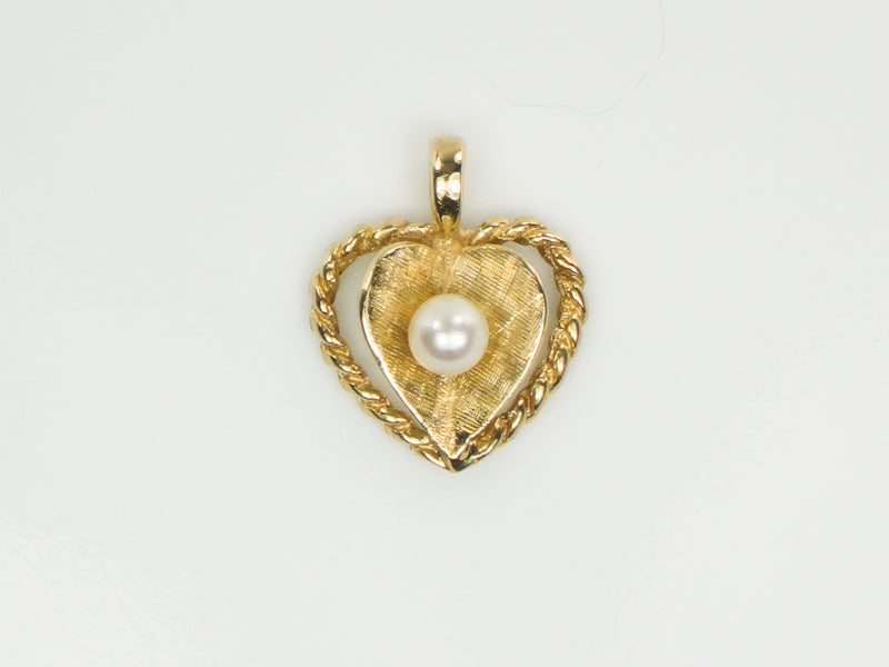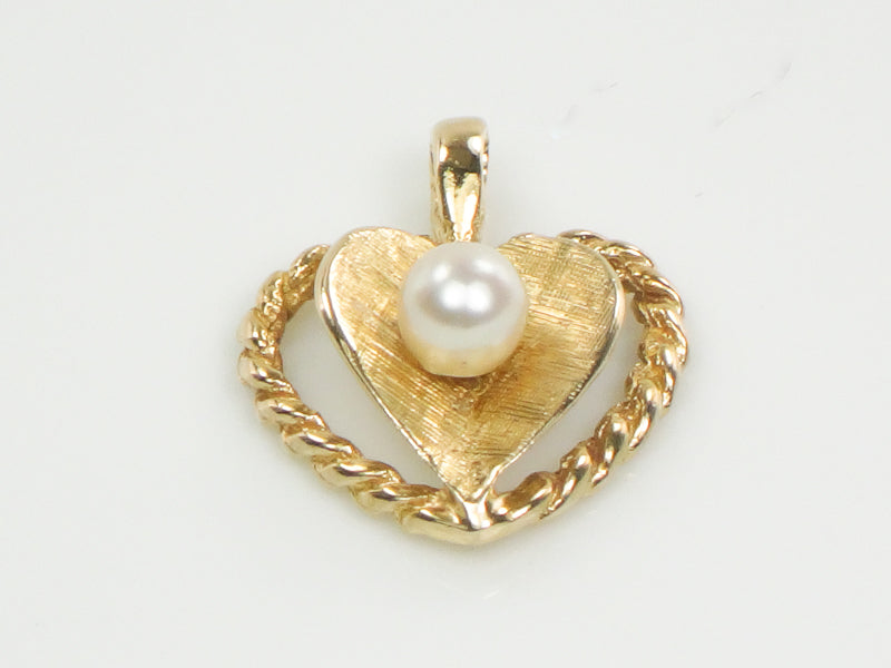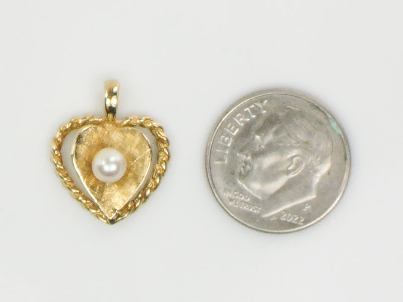 Vintage Small 14k Yellow Gold Cultured Pearl Heart Pendant