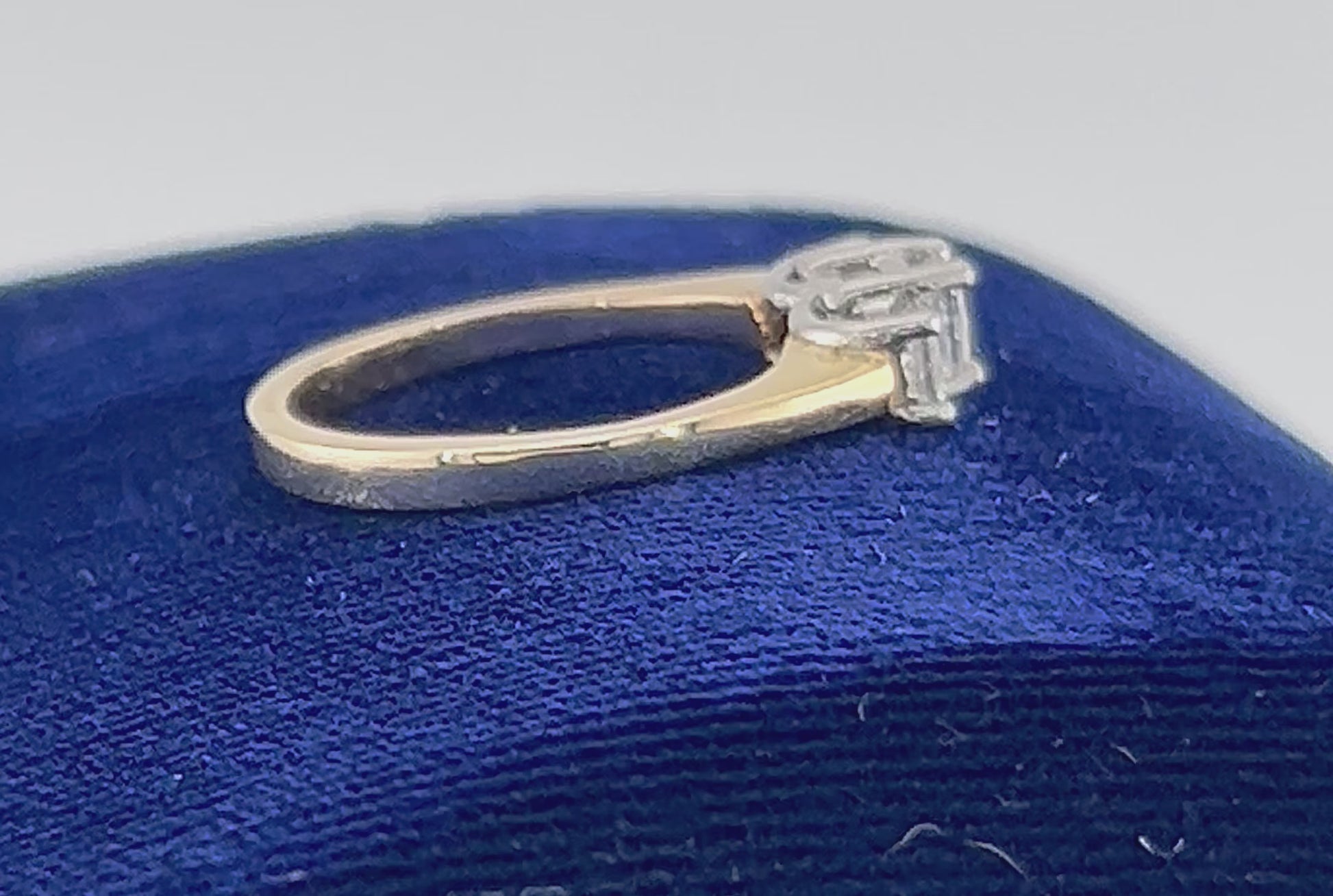 Vintage 14k Gold Three Stone Diamond Engagement Ring, Princess Cut Diamond Ring, Size 7