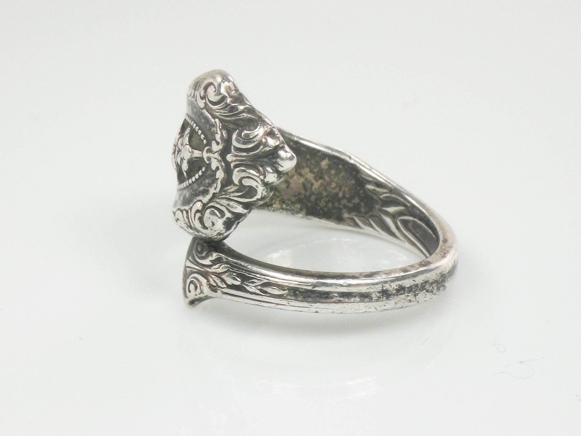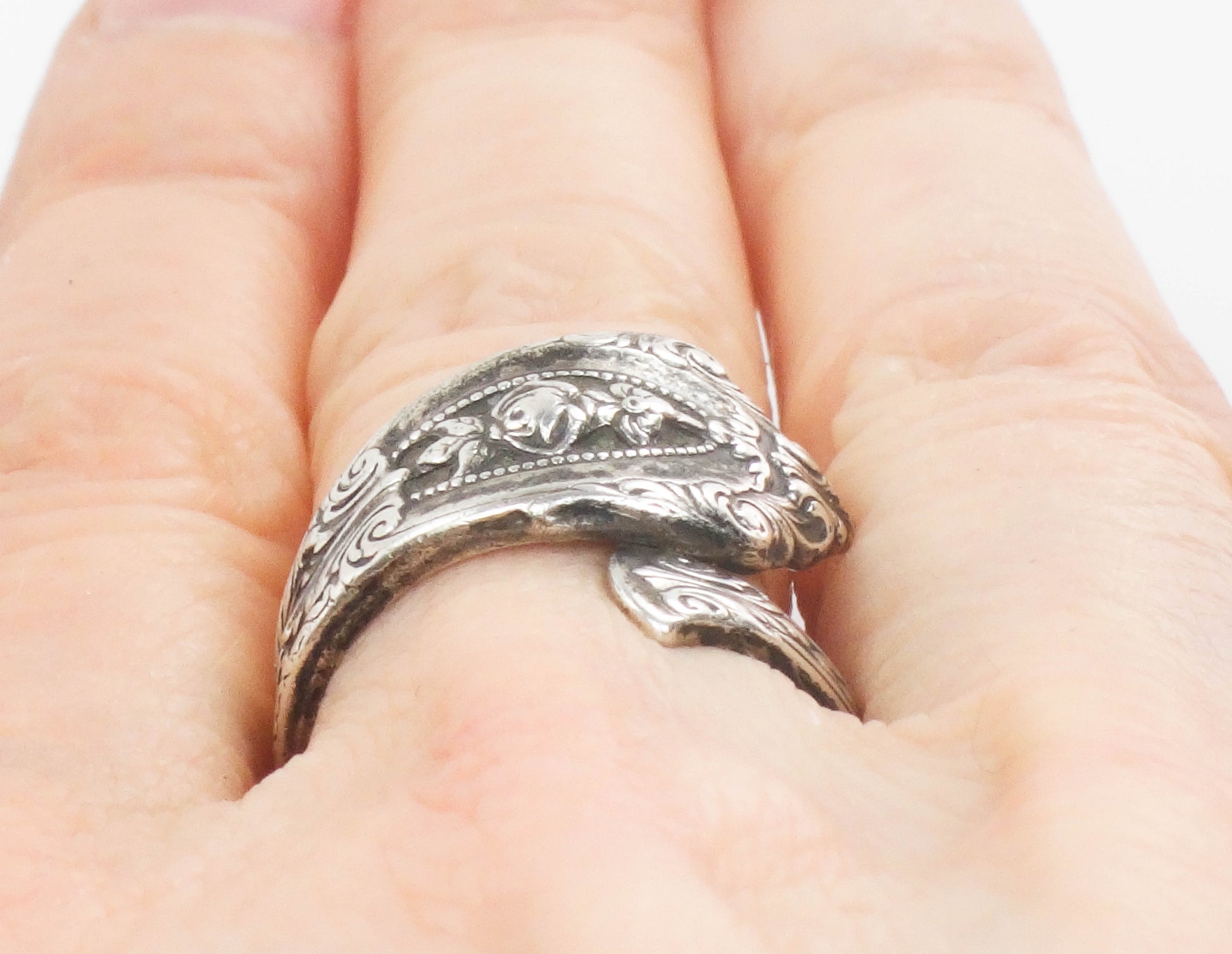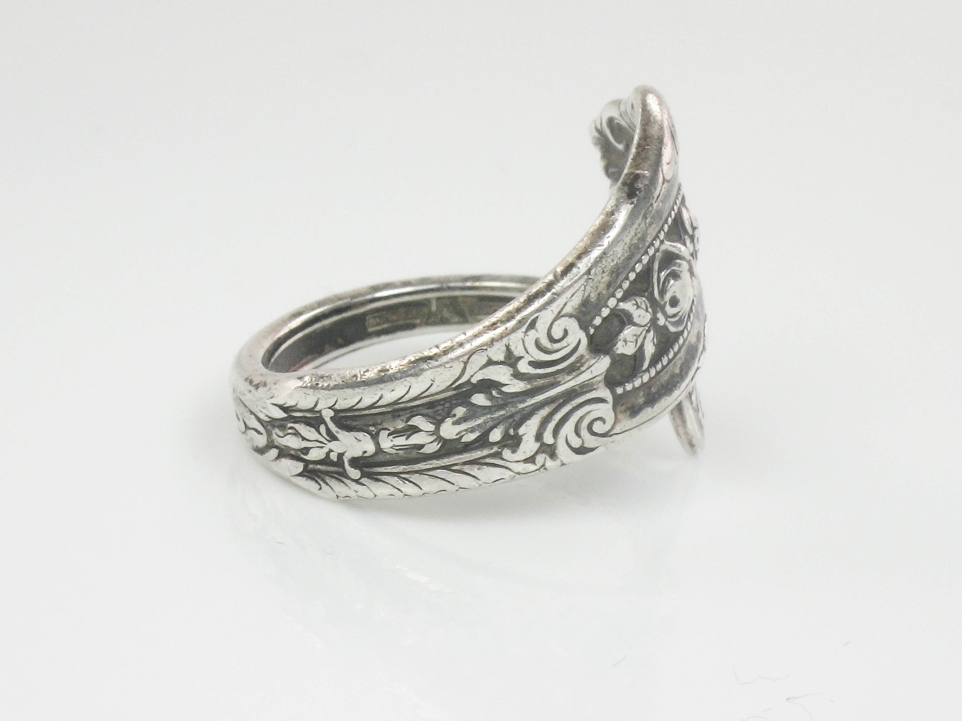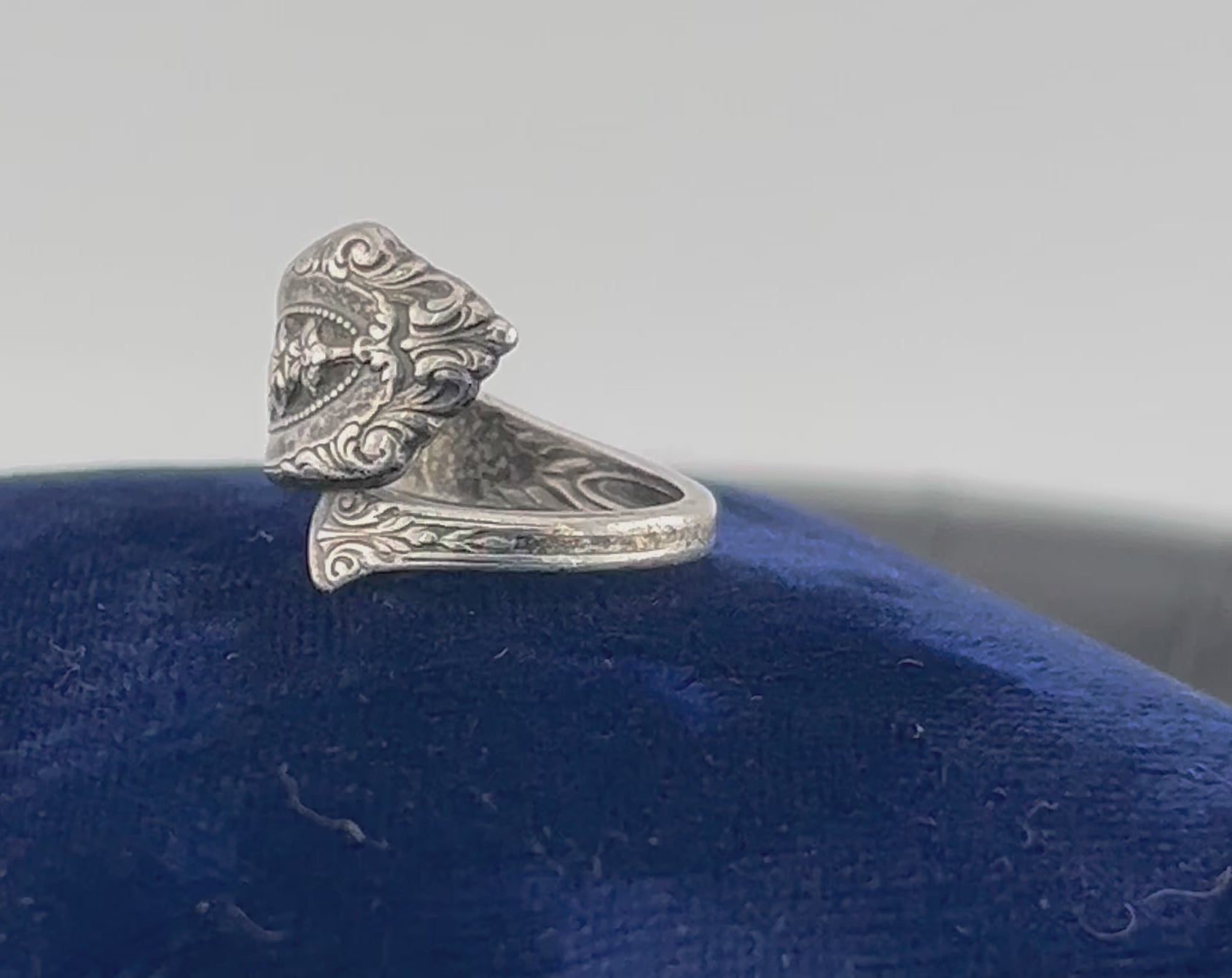 Vintage Wallace Rose Point Sterling Silver Spoon Ring with Floral Design