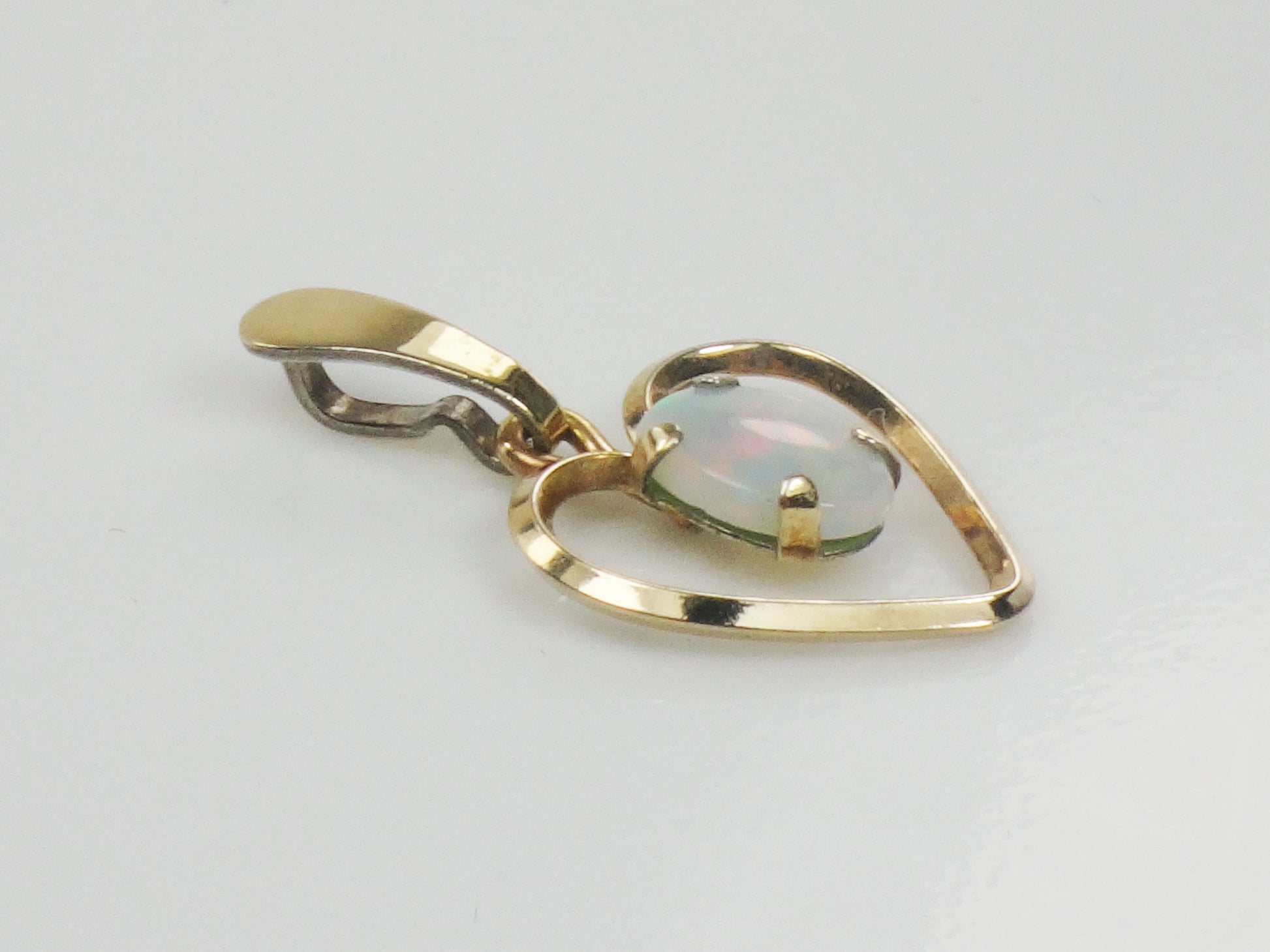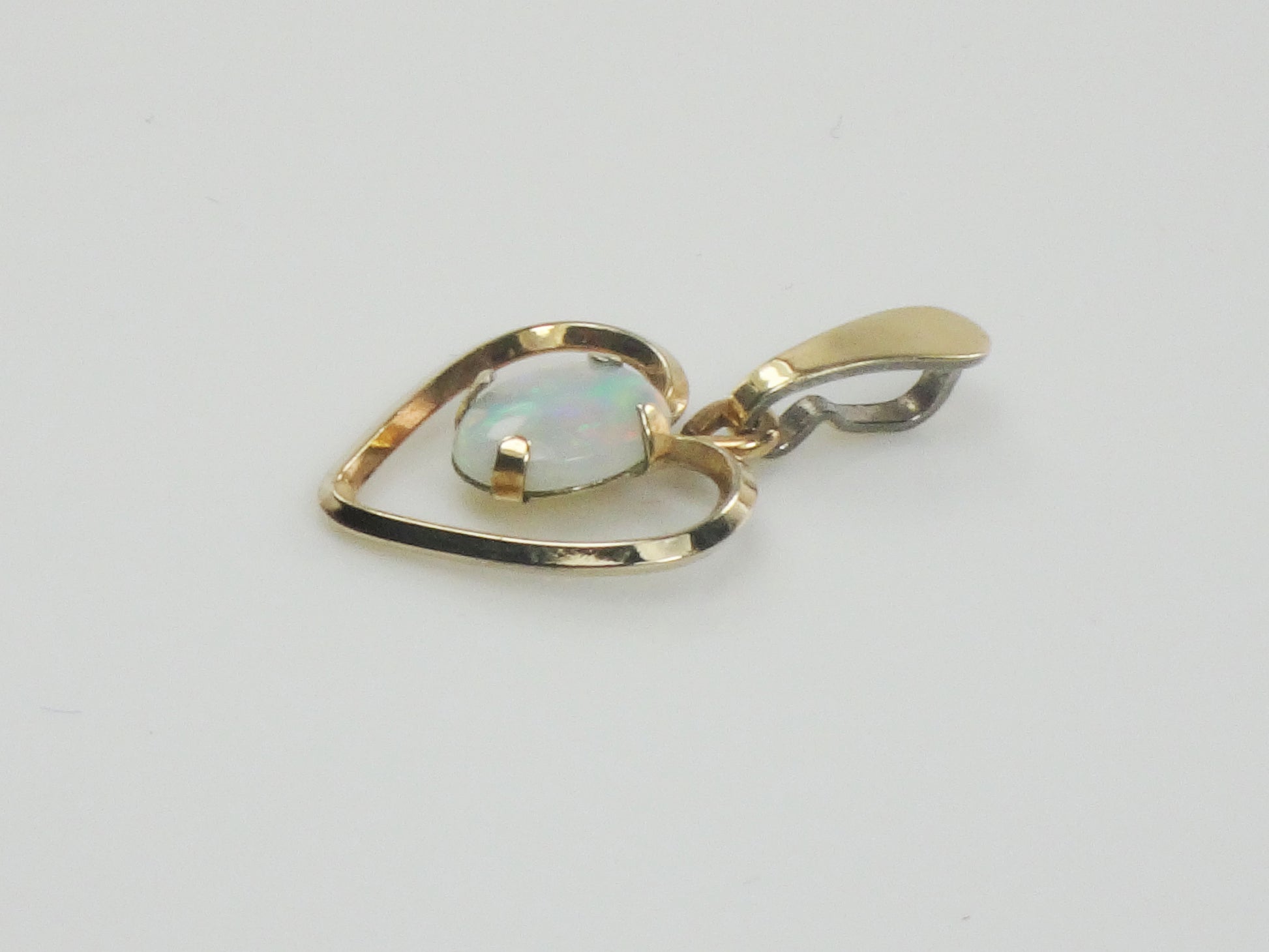Vintage Gold Tone Natural Opal Heart Pendant - October Birthstone