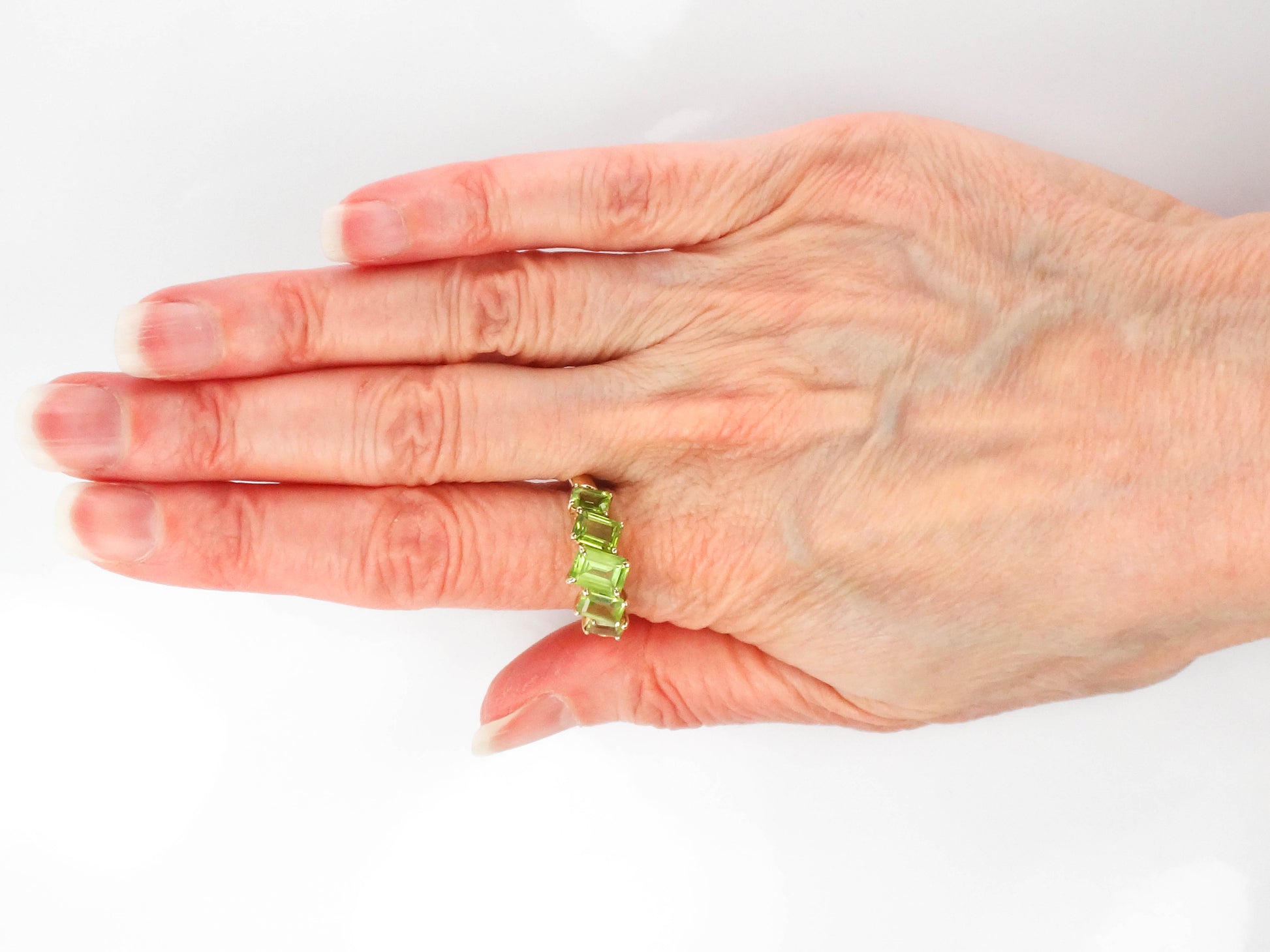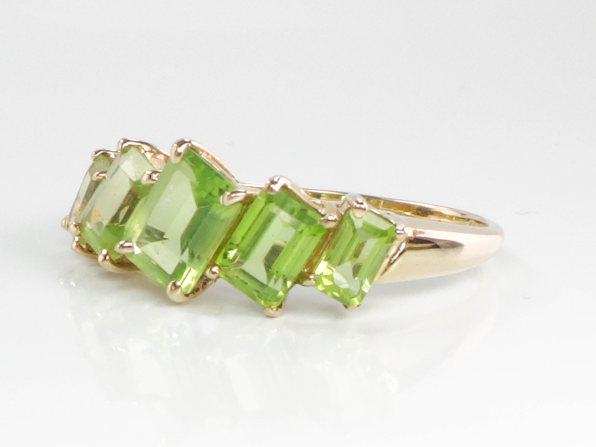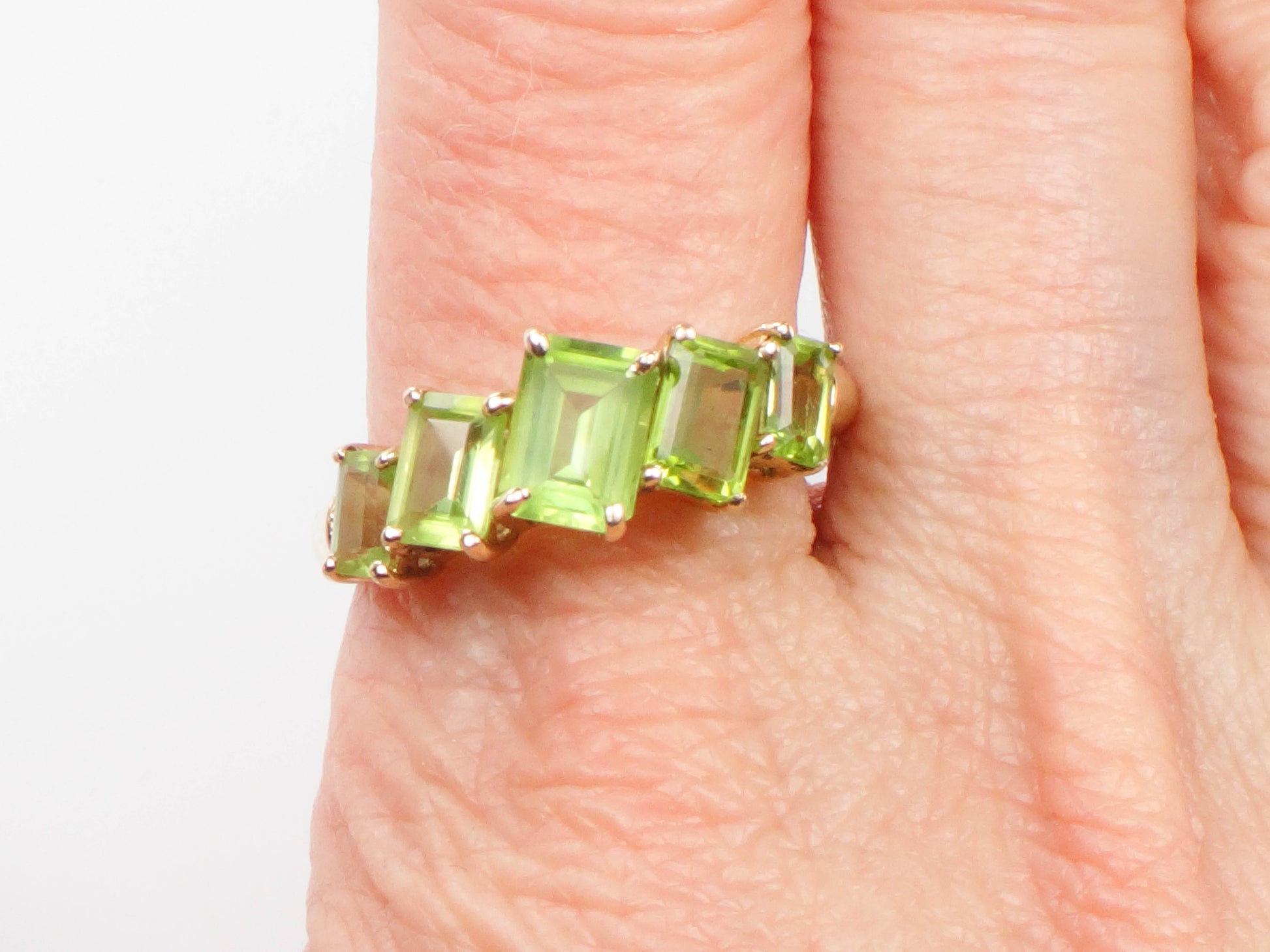 Vintage 10k Yellow Gold Rectangle Cut Peridot Ring, August Birthstone Band, Size 9.5