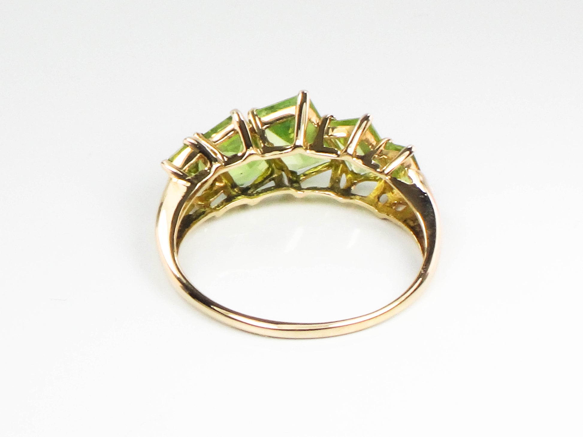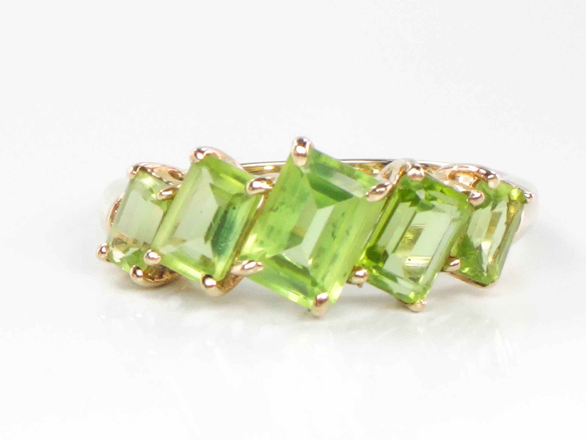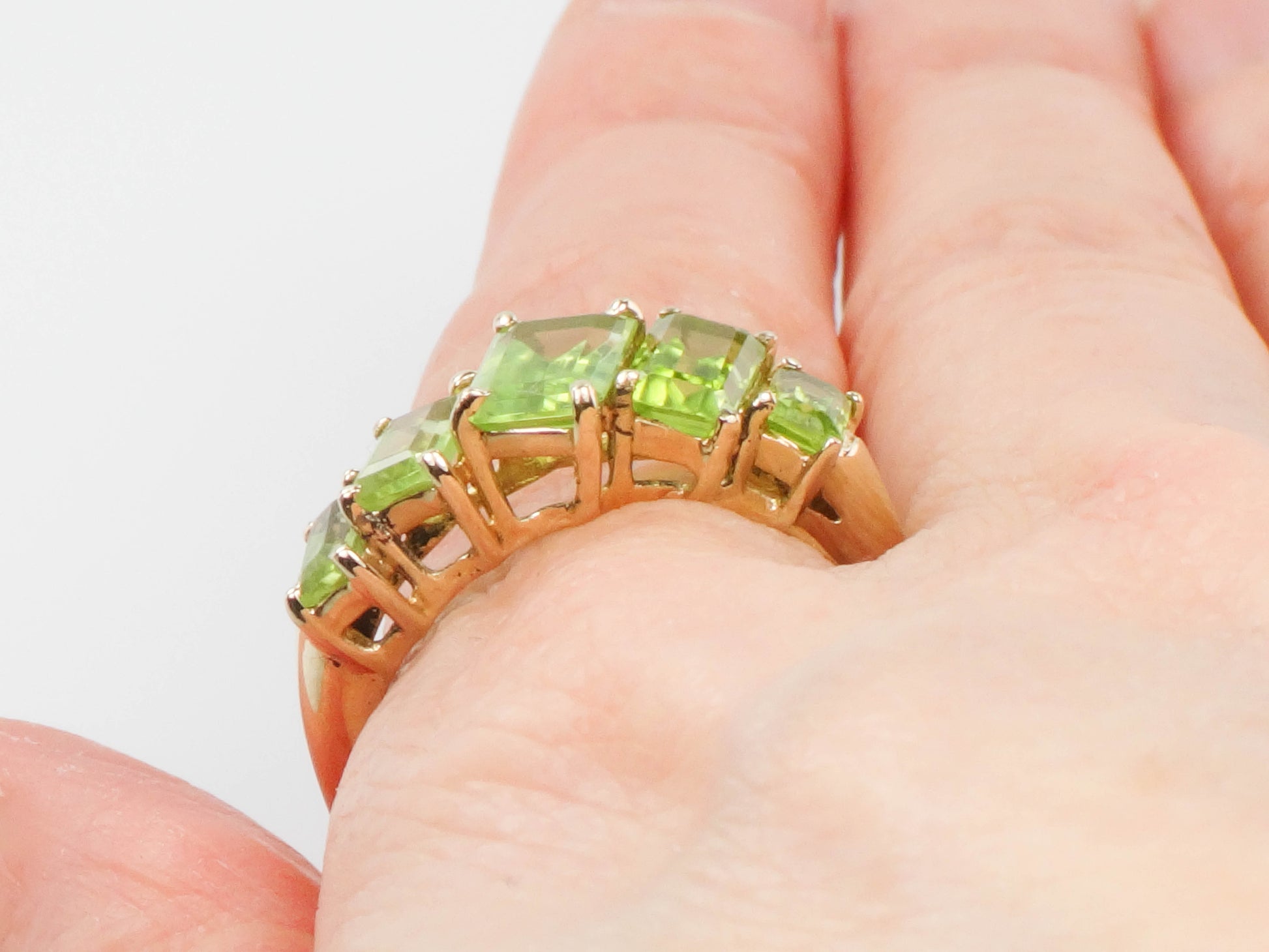 Vintage 10k Yellow Gold Rectangle Cut Peridot Ring, August Birthstone Band, Size 9.5